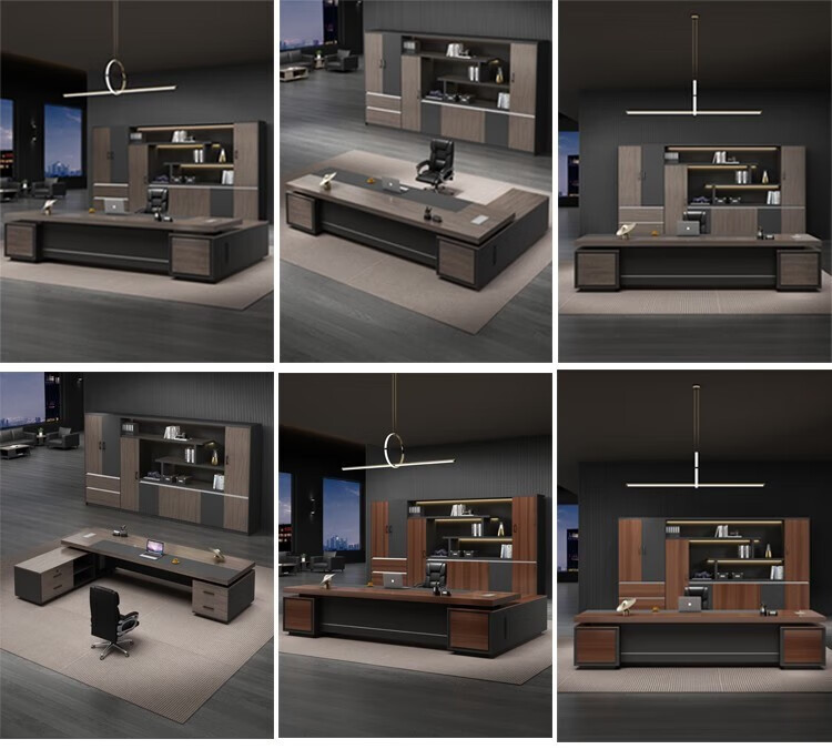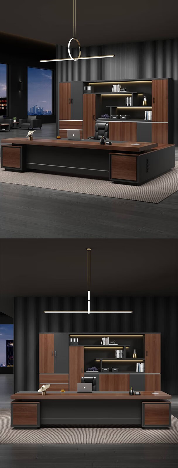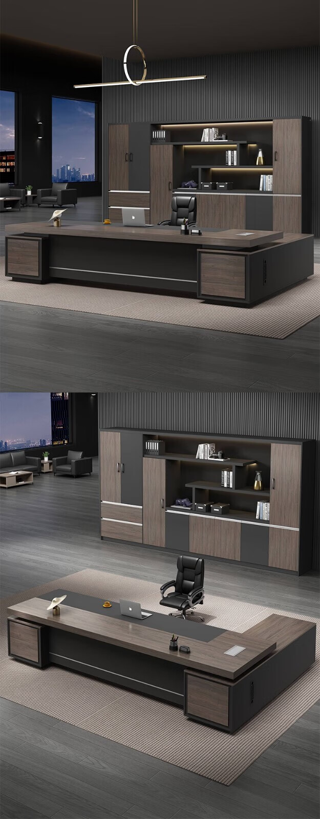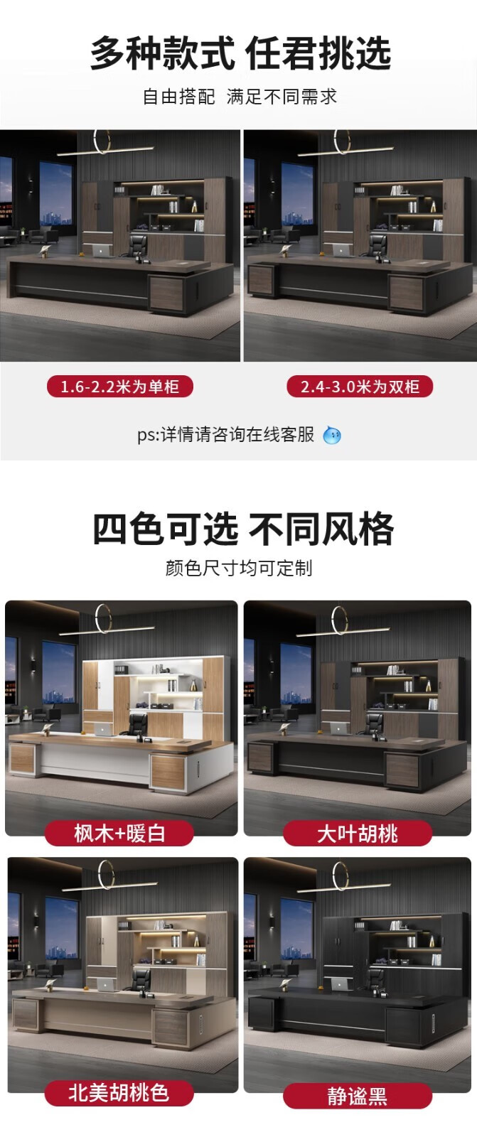 Boss desk work single desk and chair office combination executive desk simple modern president executive manager desk 2.0 meters with single side cabinet + boss chair + 5 doors