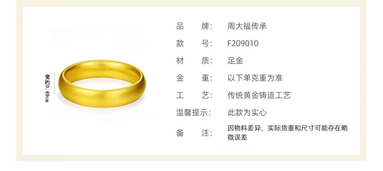 Chow Tai Fook inheritance gift aperture ring inheritance pure gold ring F209010 (labor cost 920) single ancient method No. 15 pure gold about 10.36g