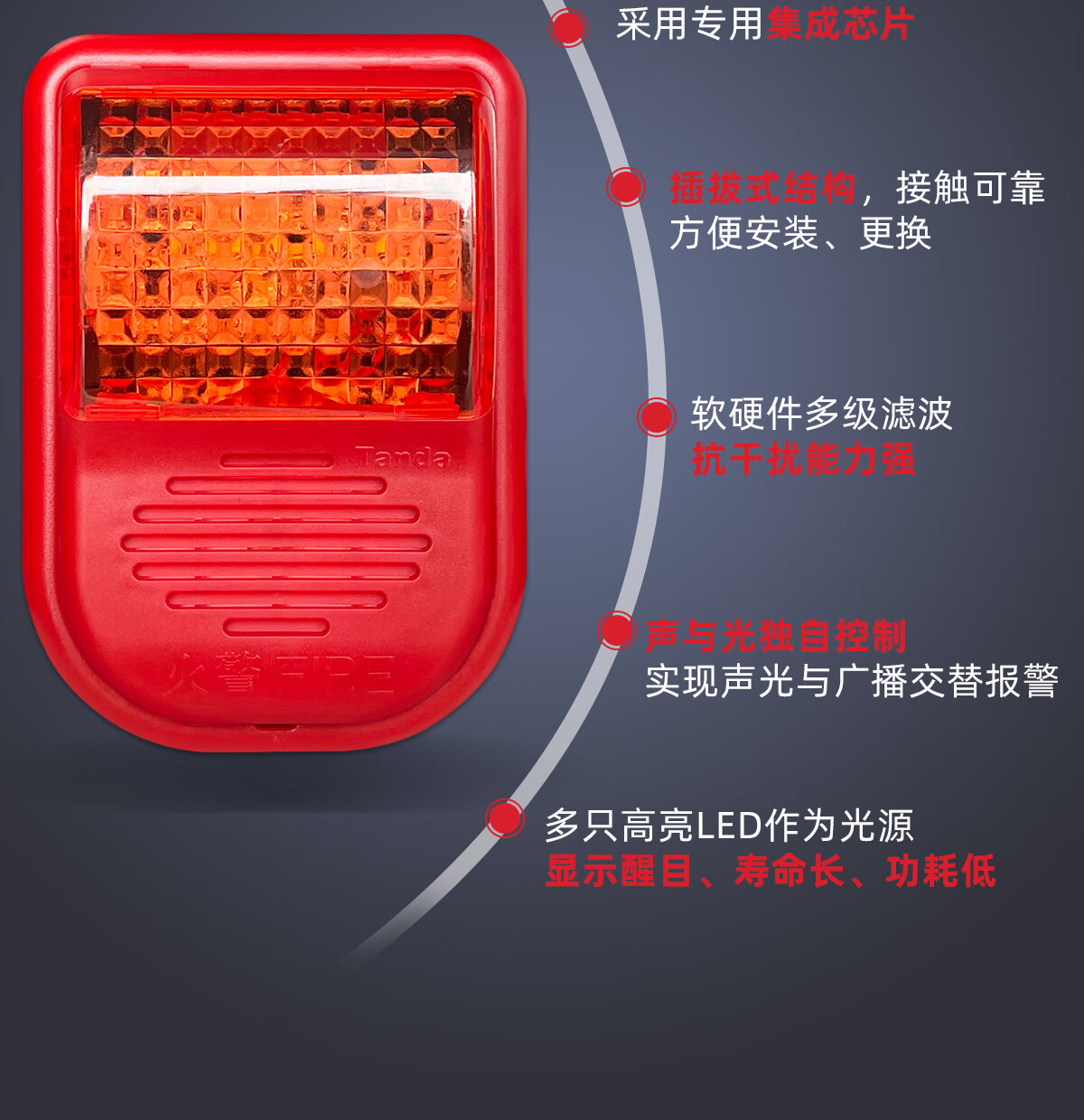 Taihean Tanda fire sound and light alarm four-wire sound and light alarm electronic code TX3308 can replace TX3301/TX3301A TX3308+ base (four-wire system)