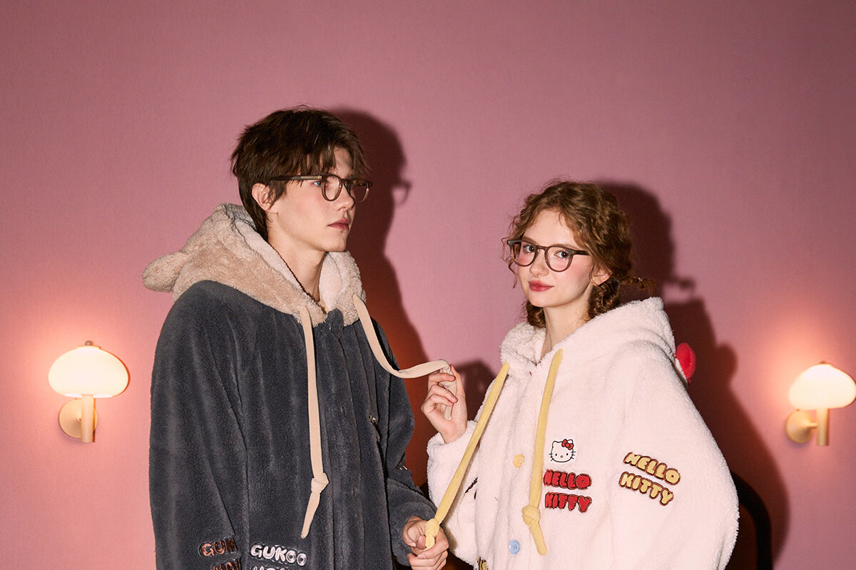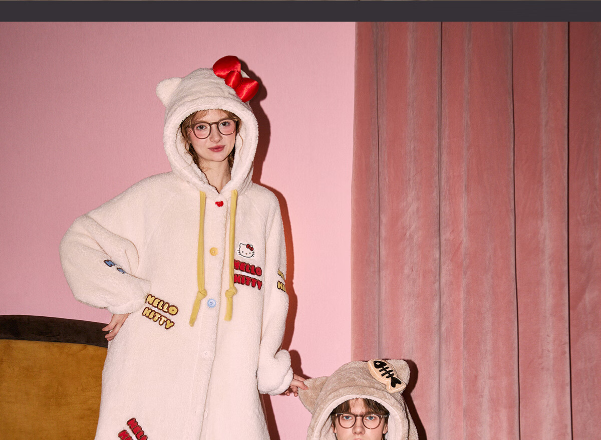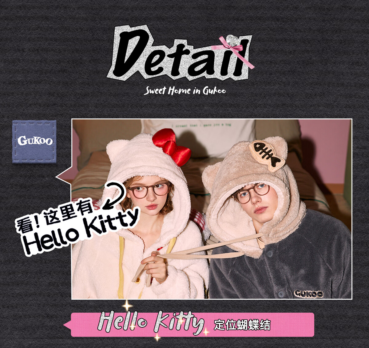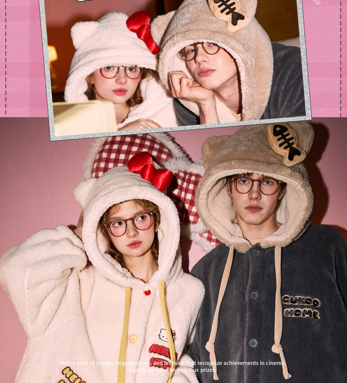Gukoo Couple Pajamas Hellokitty Co-branded New Comfortable, Cute and Warm Ladies Home Clothes Pajamas Men D Hellokitty Couple Pajamas M Women