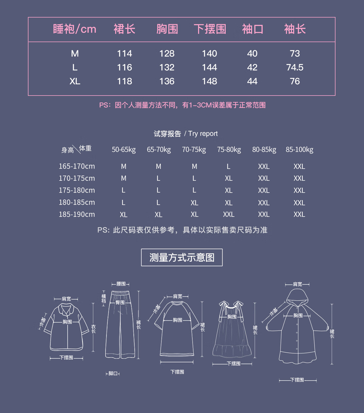 China (cm) 160-165/84-86 165-170 / 88-90 167-172 / 92-96 168-173 / 98-102 170-176 / 106-110