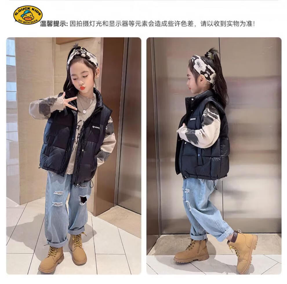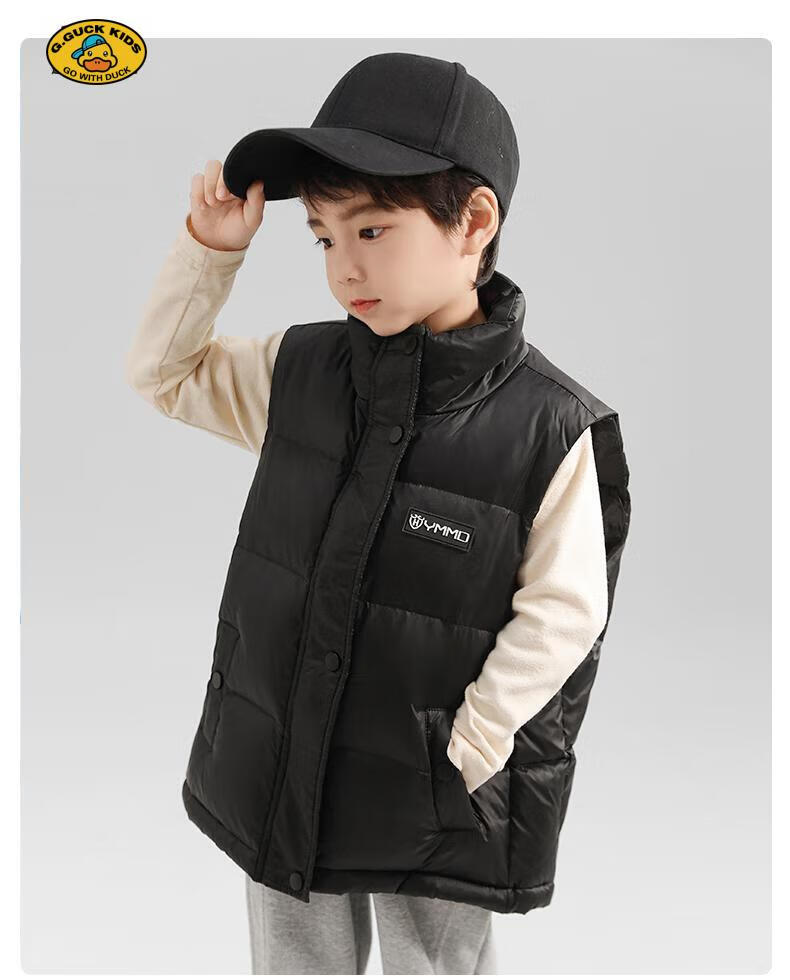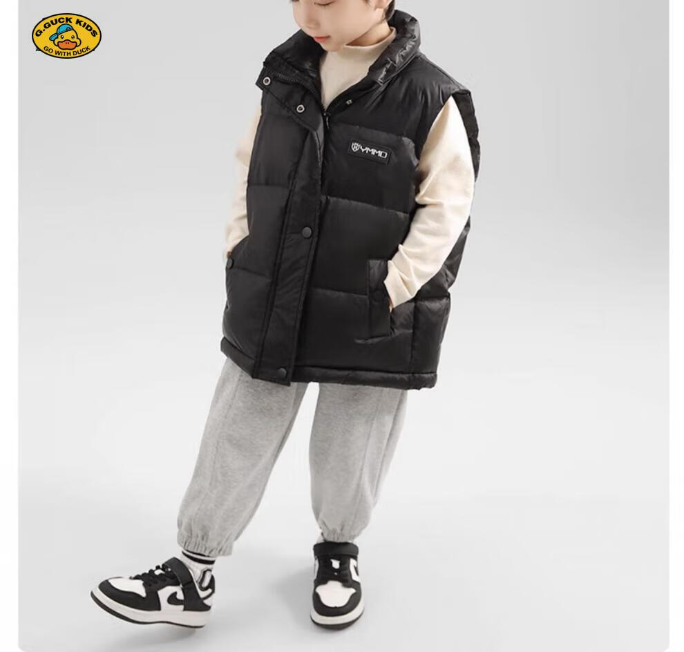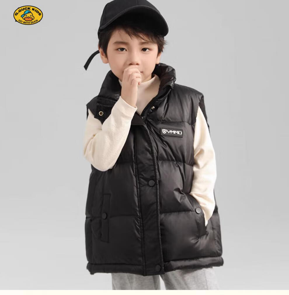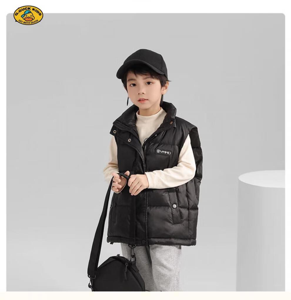 G.DUCKKIDS parent-child Korean style down vest for boys and girls in autumn and winter outer wear waistcoat white duck down jacket children's vest black upgraded thickened 400 three-proof fabric 170cm