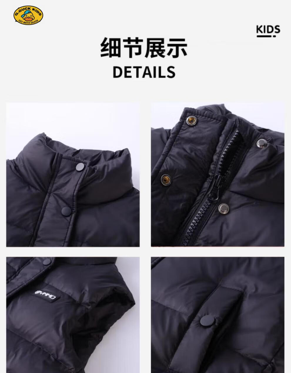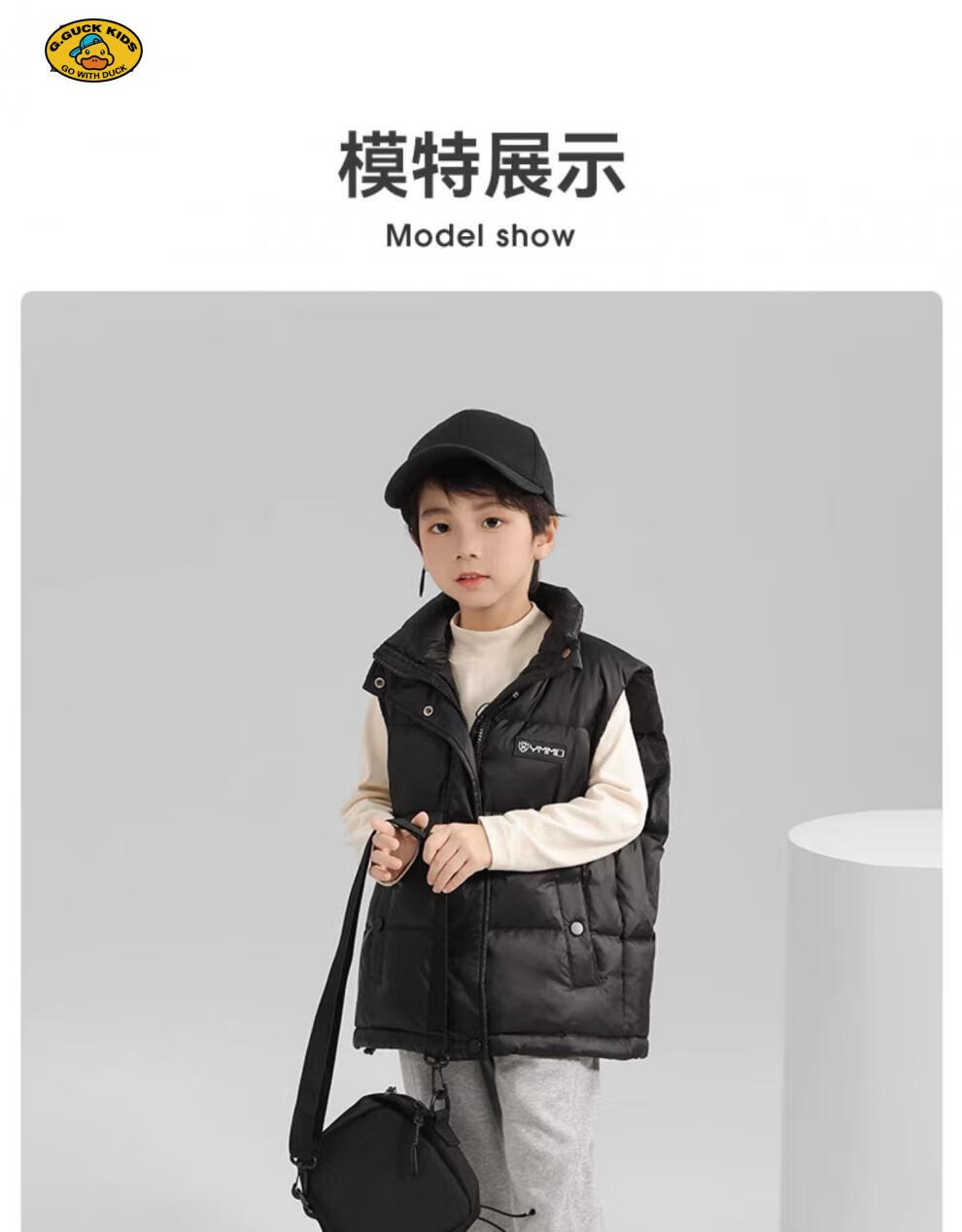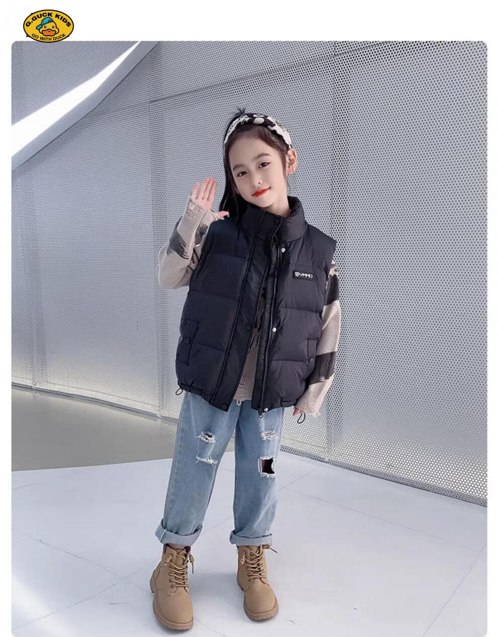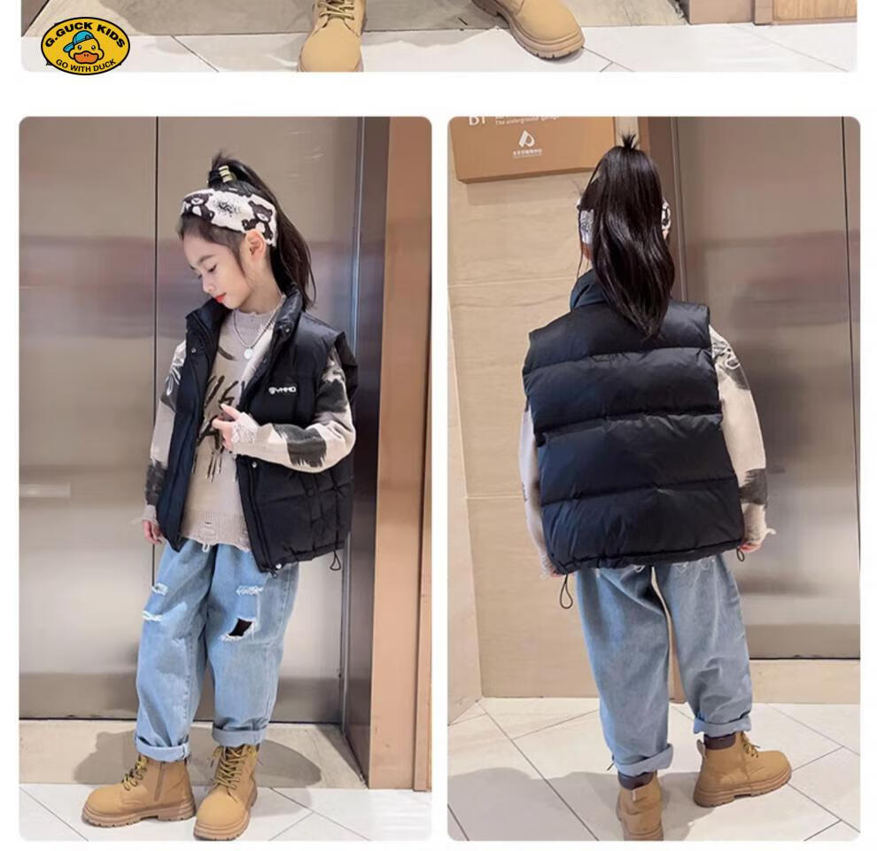 G.DUCKKIDS parent-child Korean style down vest for boys and girls in autumn and winter outer wear waistcoat white duck down jacket children's vest black upgraded thickened 400 three-proof fabric 170cm