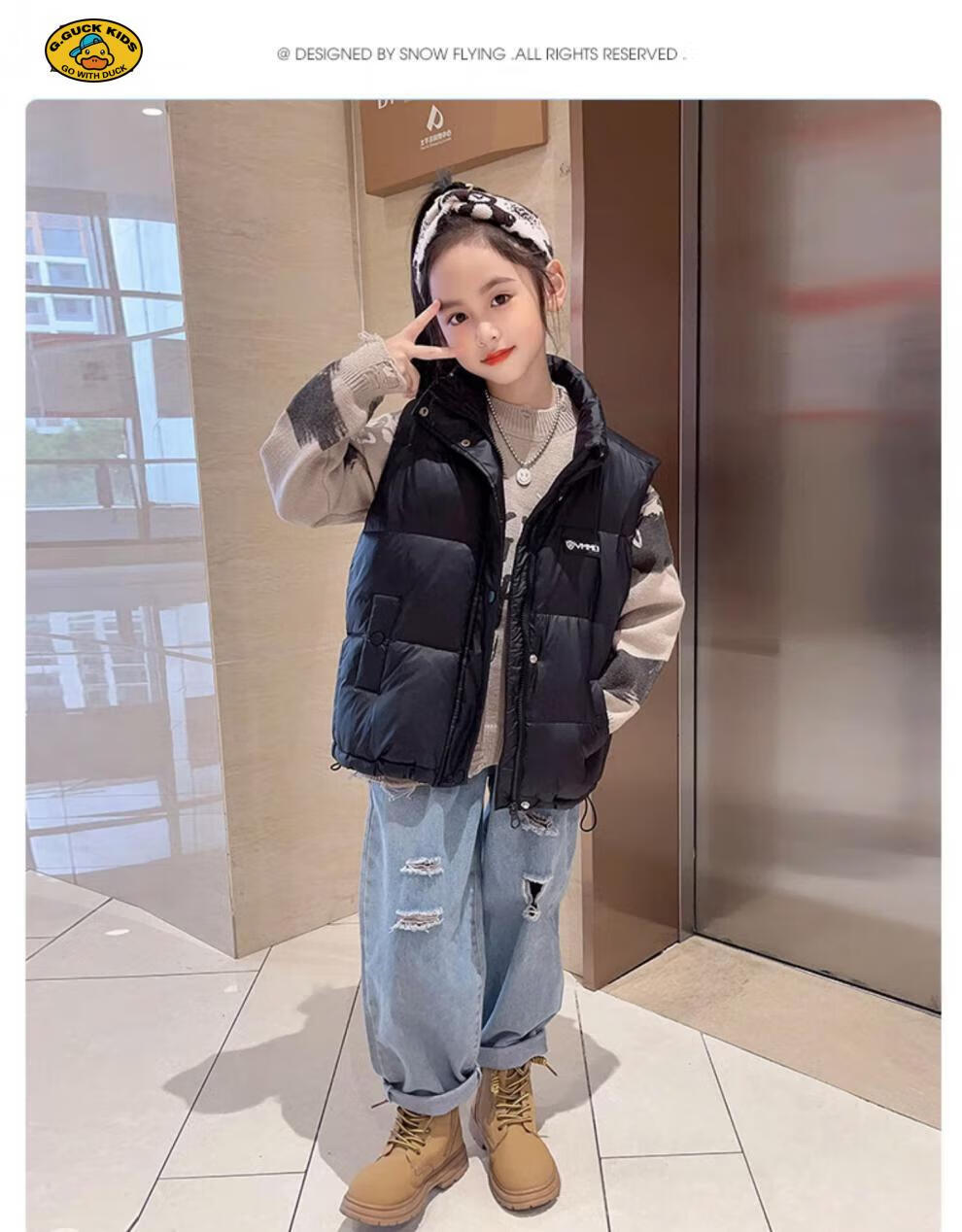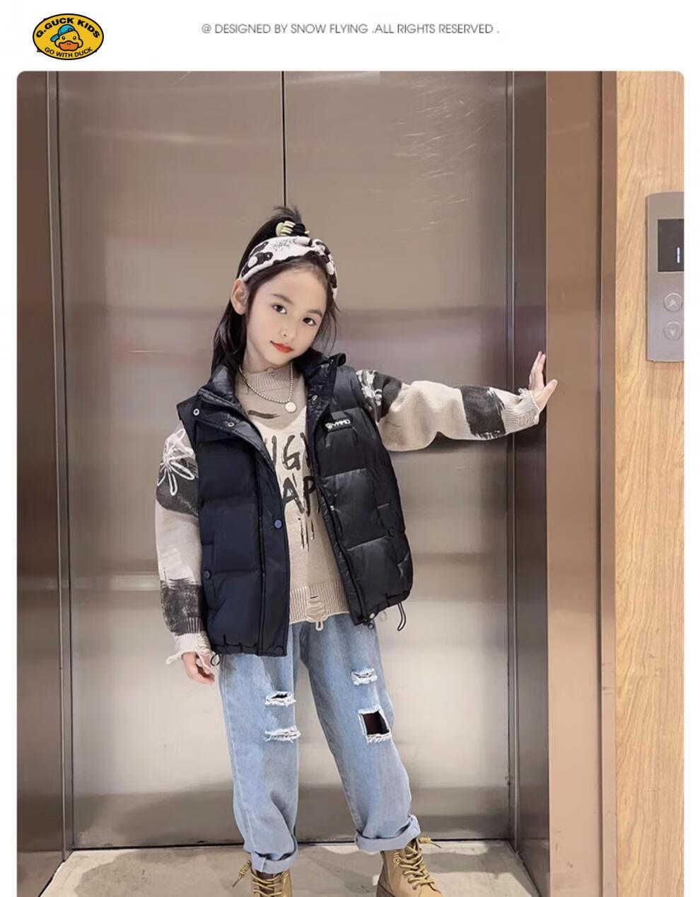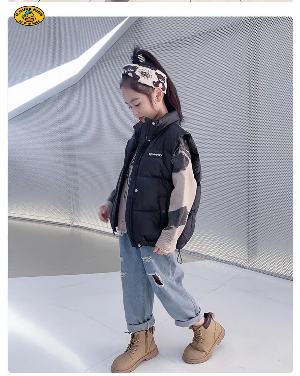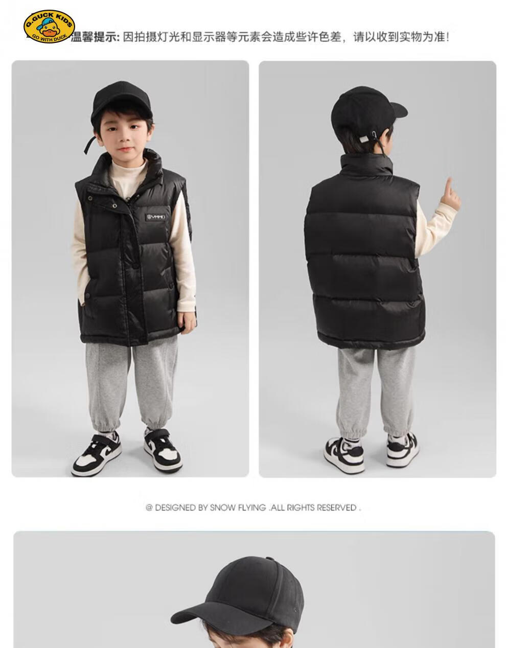 G.DUCKKIDS parent-child Korean style down vest for boys and girls in autumn and winter outer wear waistcoat white duck down jacket children's vest black upgraded thickened 400 three-proof fabric 170cm
