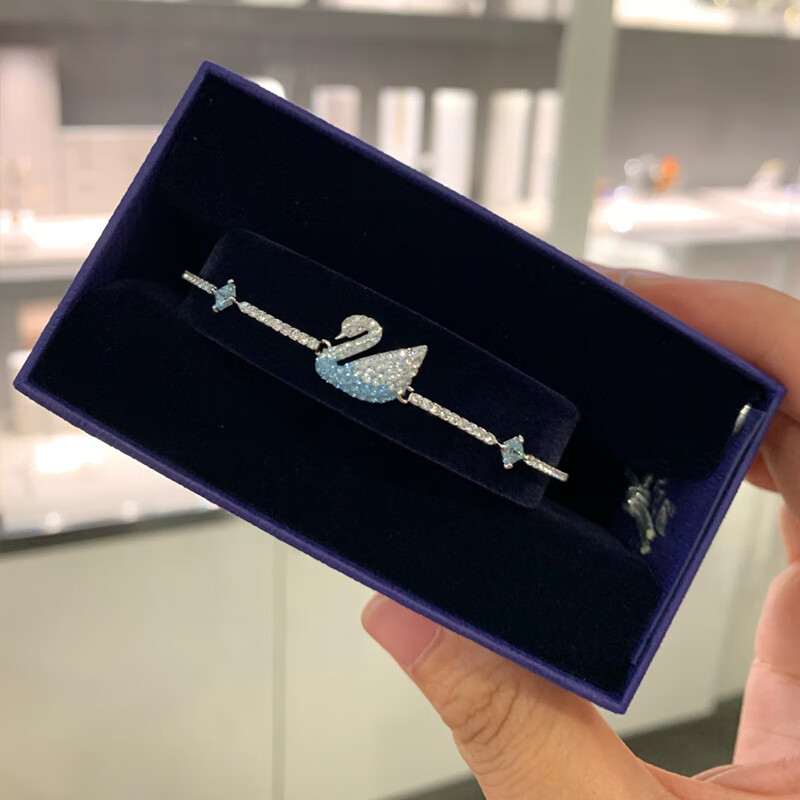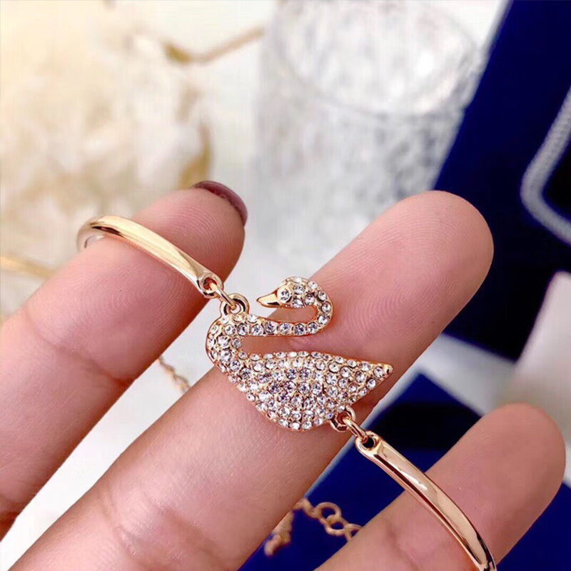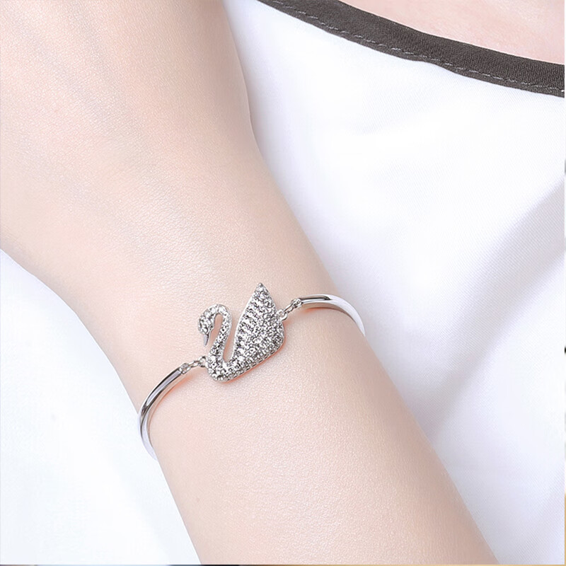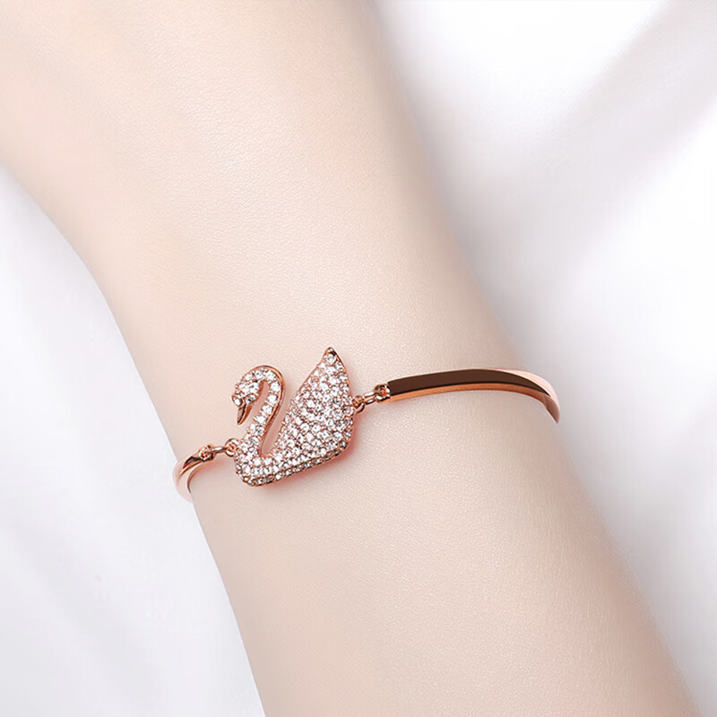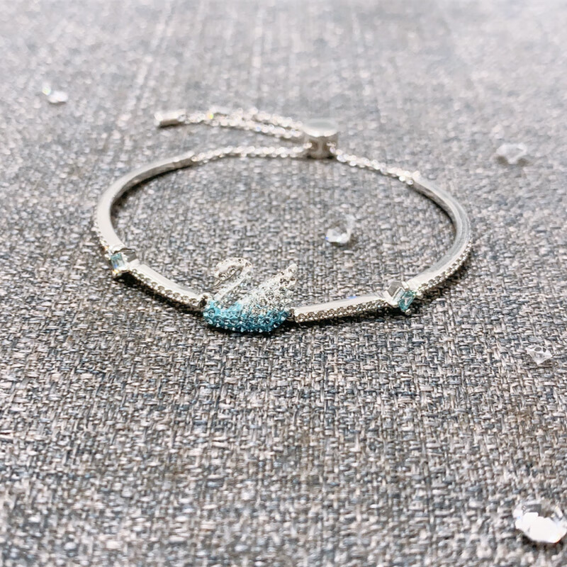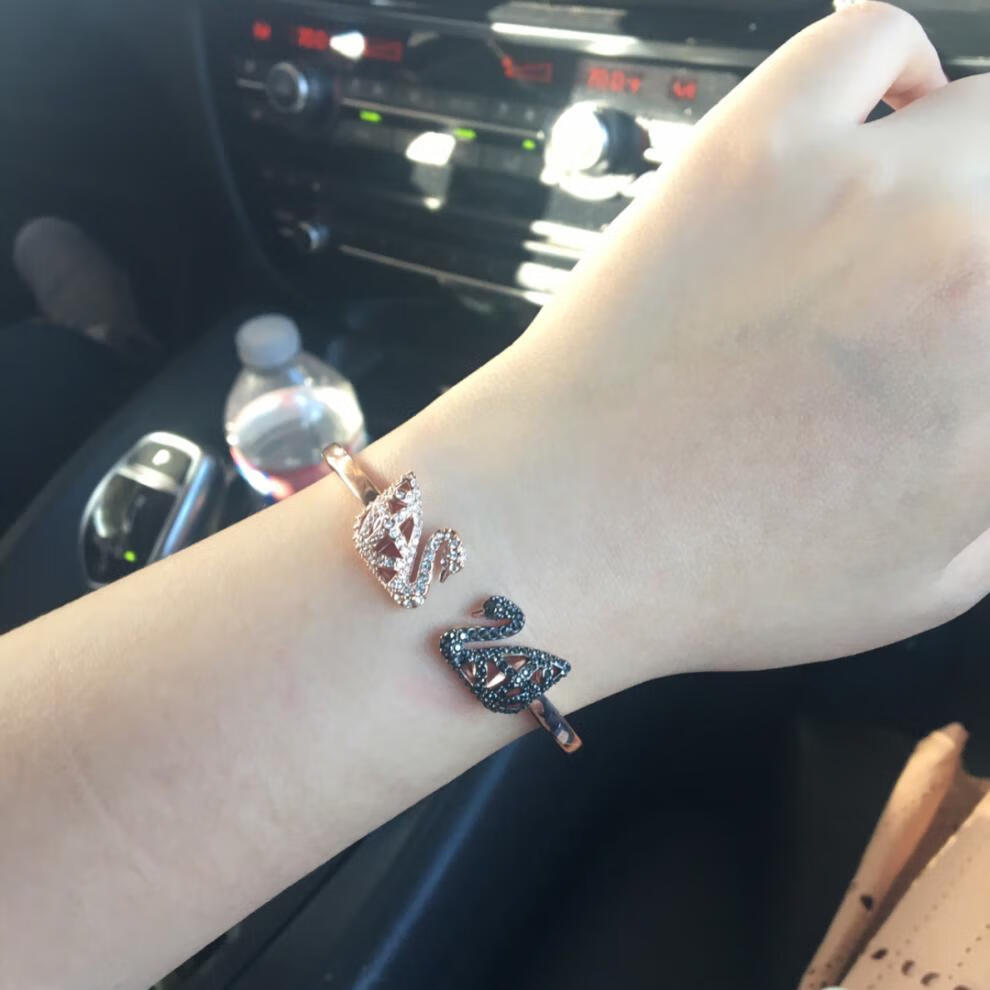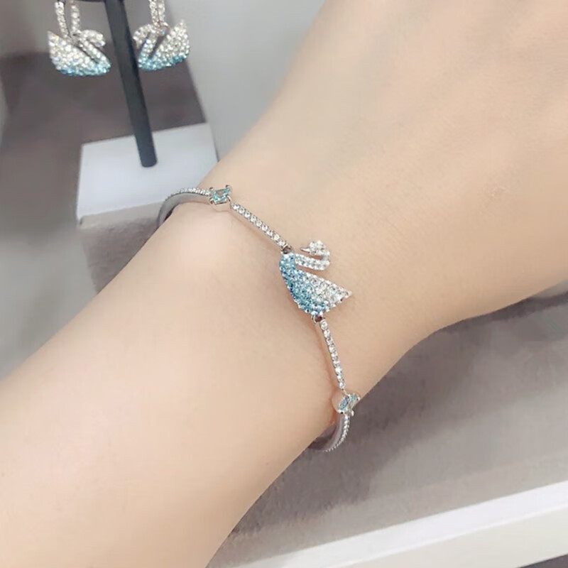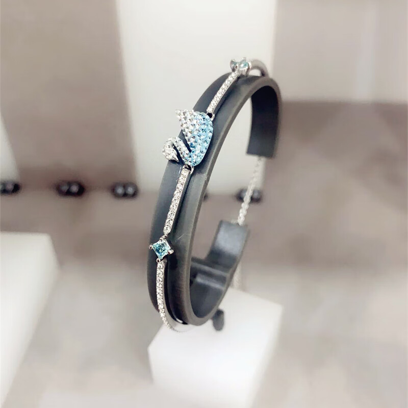 QUAMER light luxury brand gradient blue swan bracelet bracelet rose gold double swan silver bracelet for women black gold double swan hollow bracelet (M size)