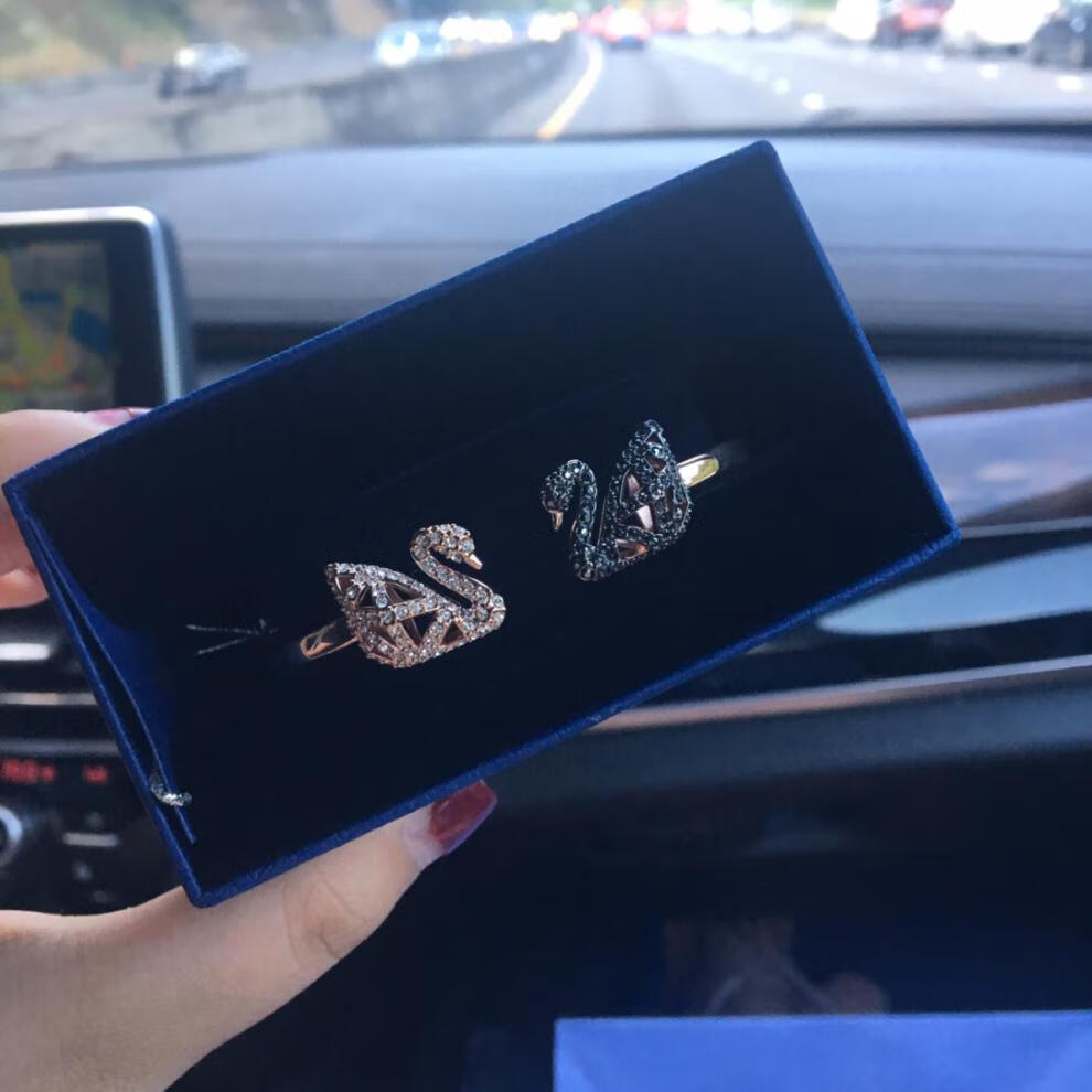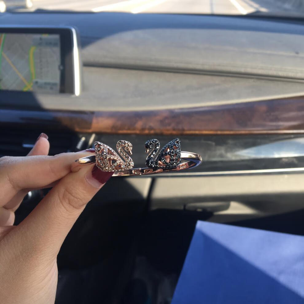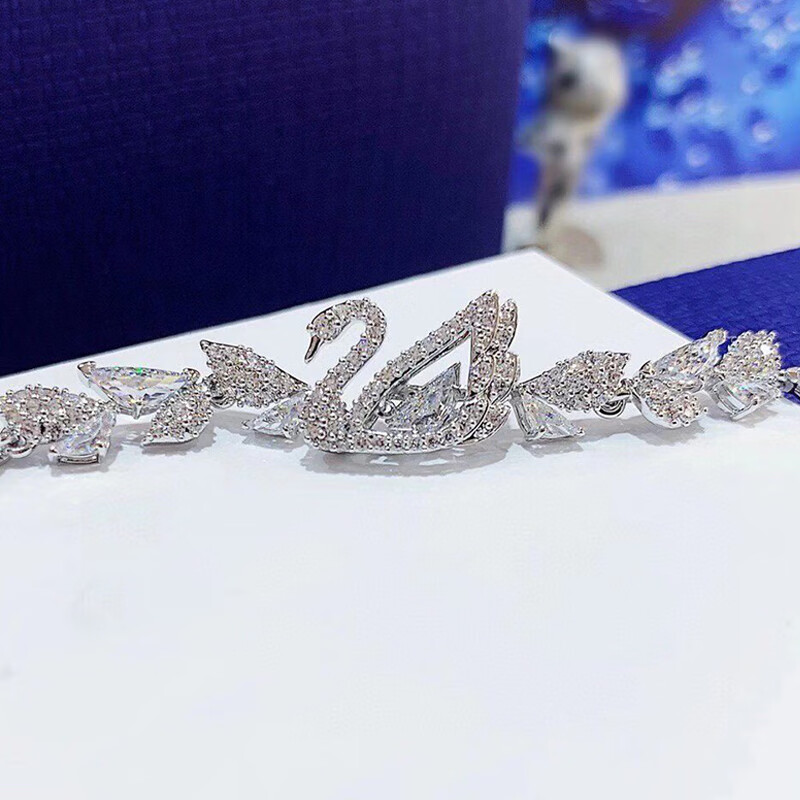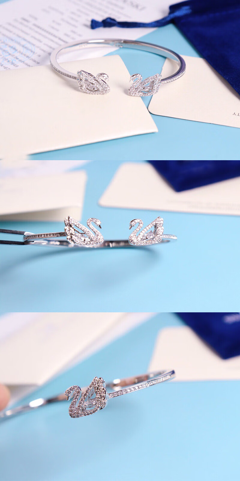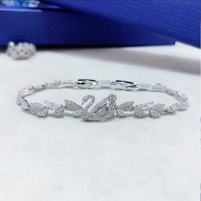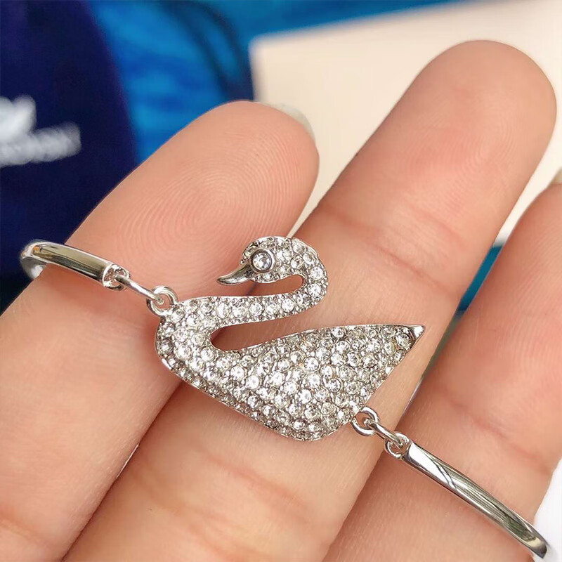QUAMER light luxury brand gradient blue swan bracelet bracelet rose gold double swan silver bracelet for women black gold double swan hollow bracelet (M size)