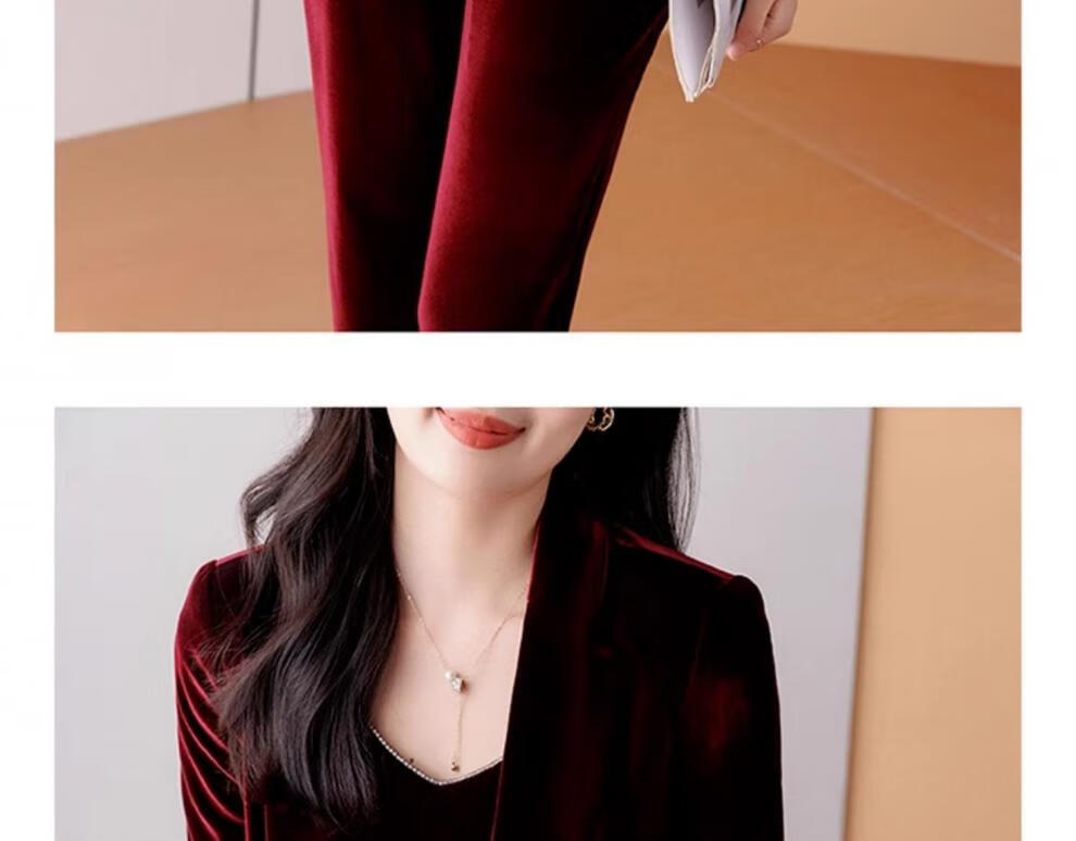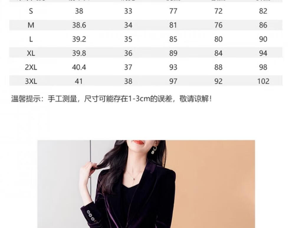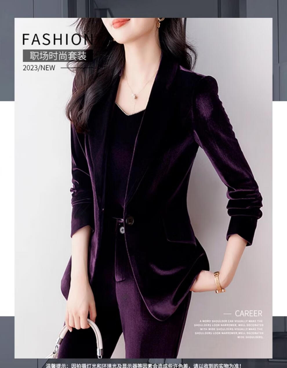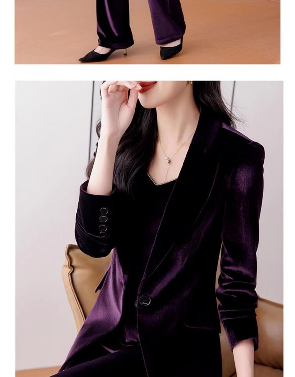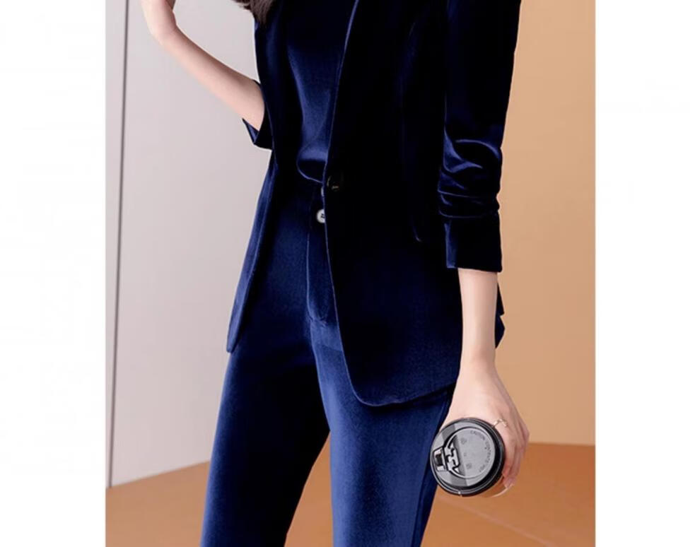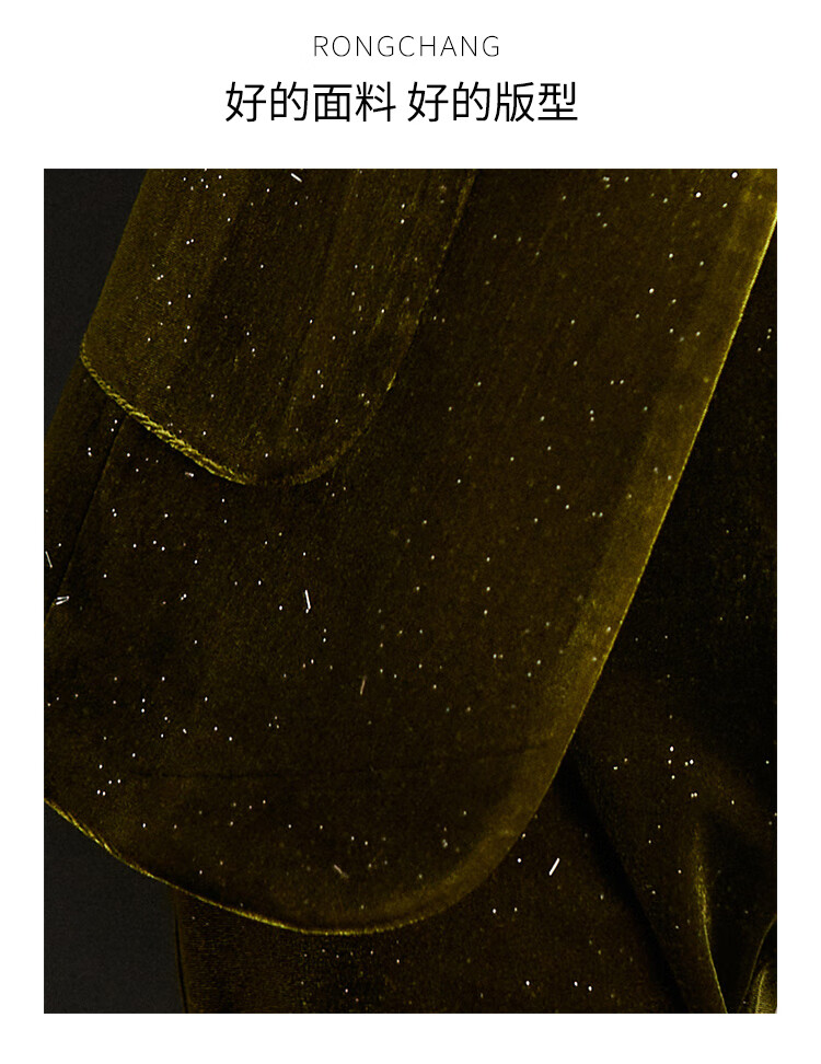 Pierre Cardin high-end gold velvet blazer new style 2025 spring and autumn temperament feminine fashion suit bell-bottom suit blue suit + blue suspenders + pants S
