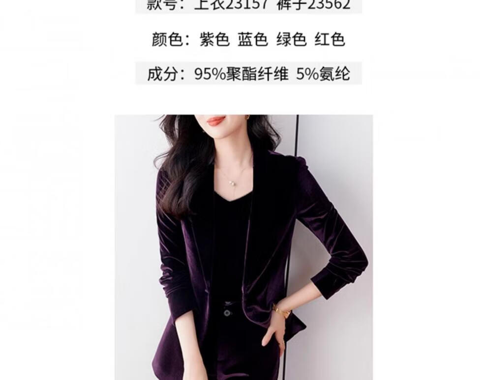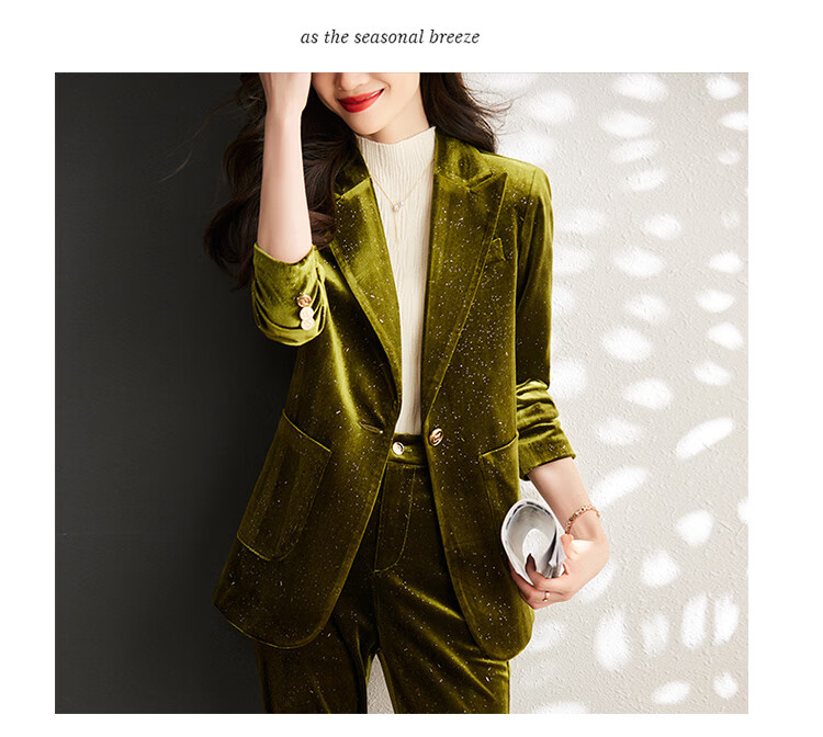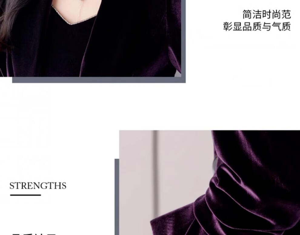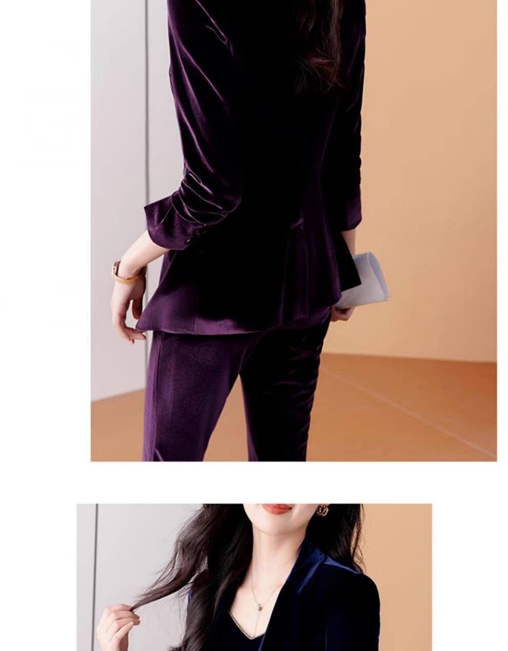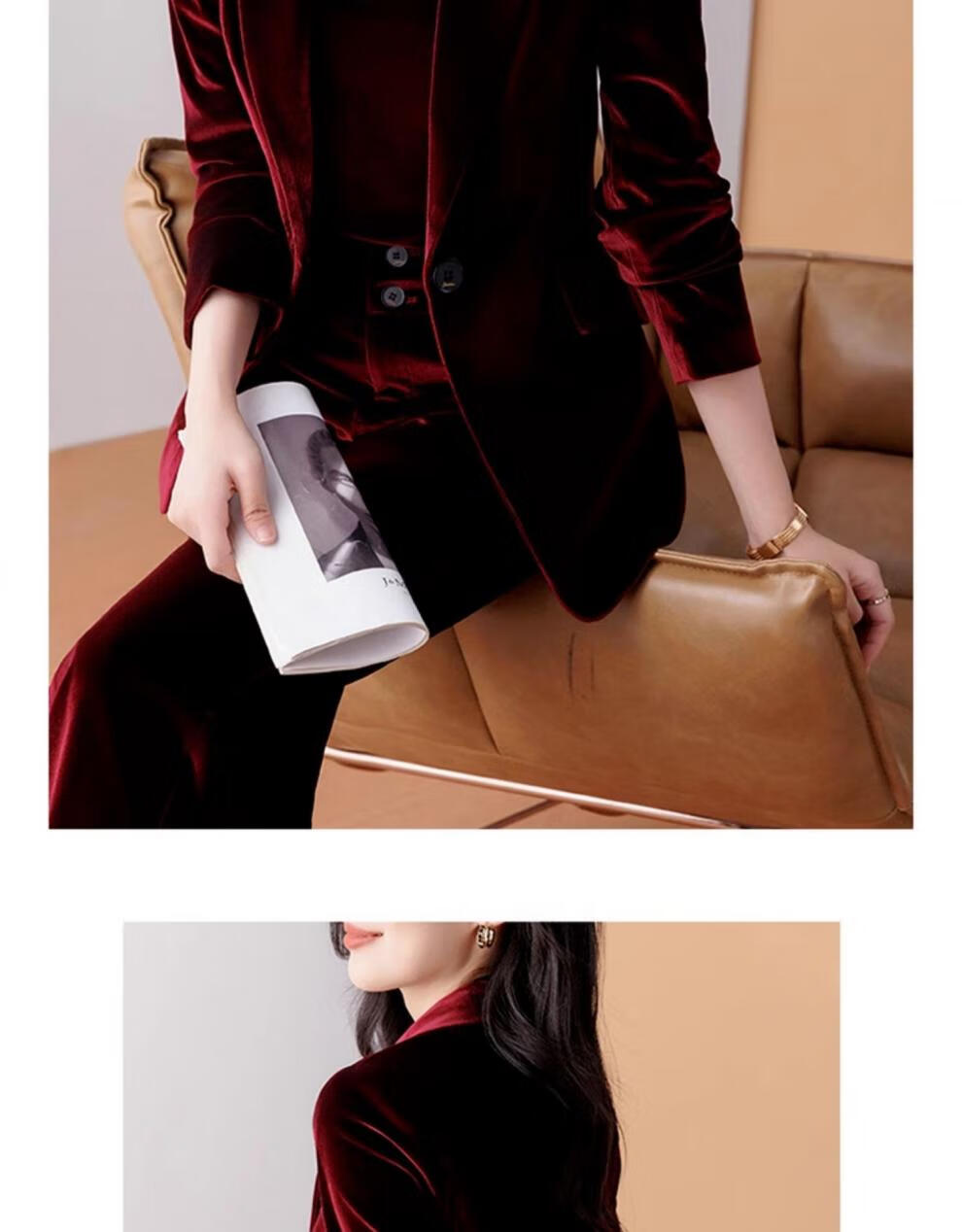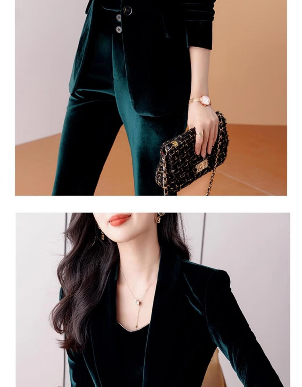 Pierre Cardin high-end gold velvet blazer new style 2025 spring and autumn temperament feminine fashion suit bell-bottom suit blue suit + blue suspenders + pants S