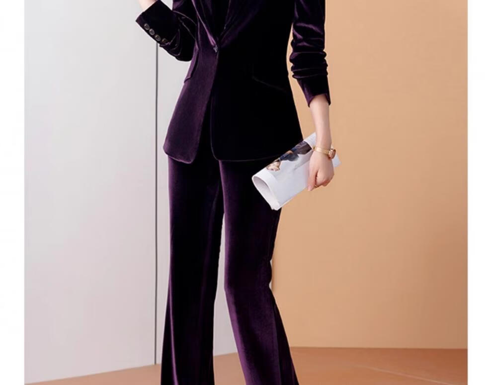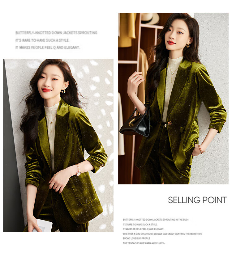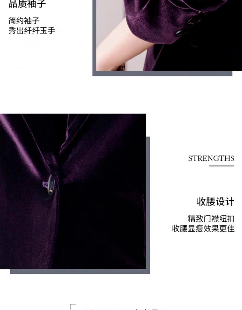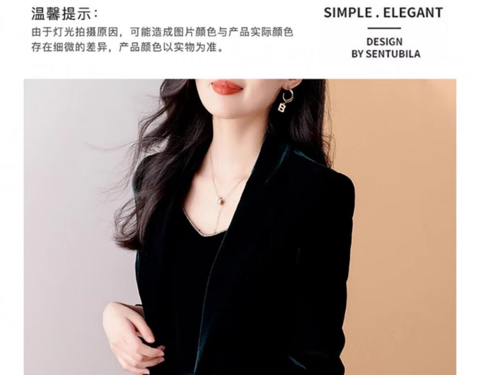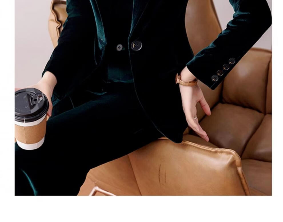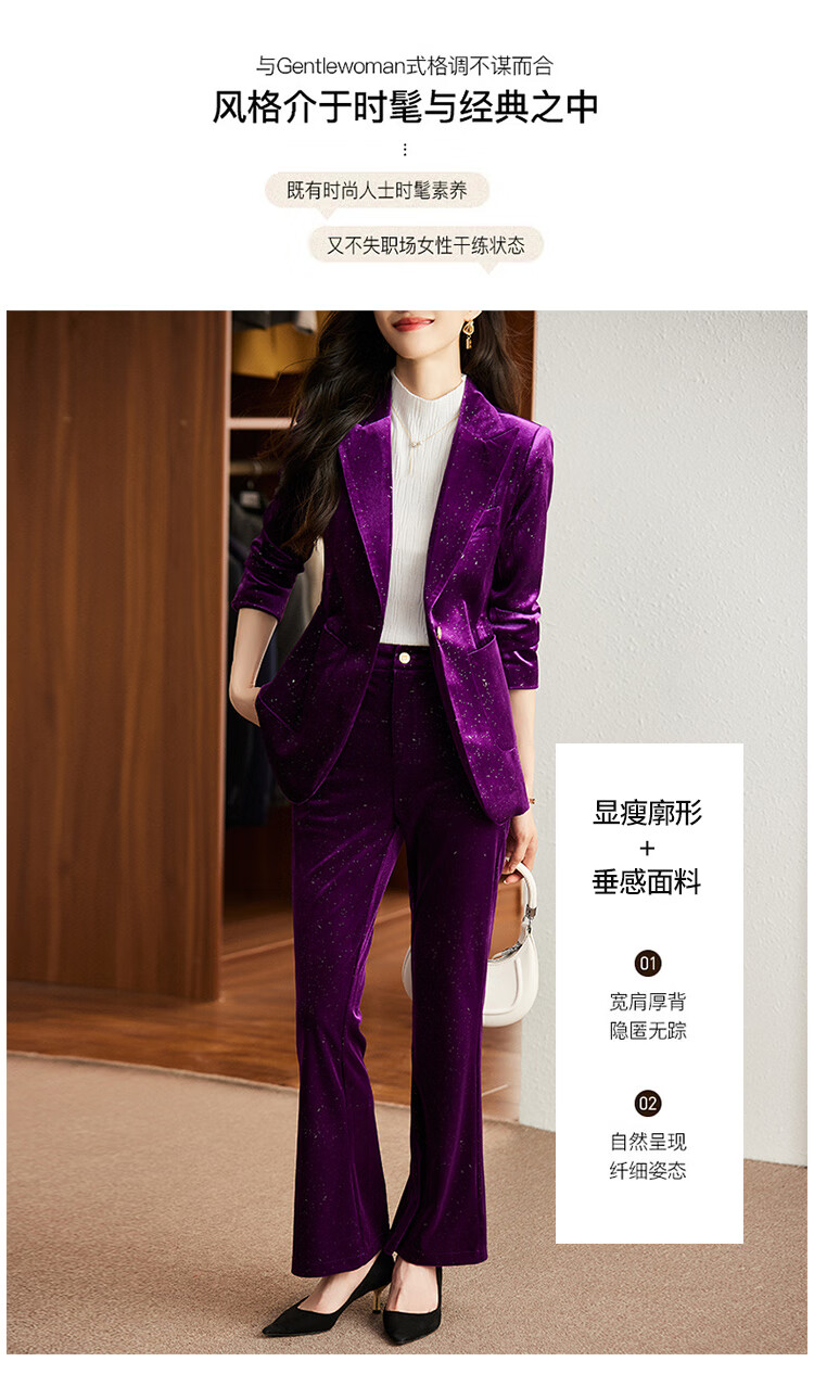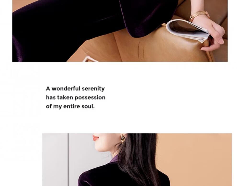 Pierre Cardin high-end gold velvet blazer new style 2025 spring and autumn temperament feminine fashion suit bell-bottom suit blue suit + blue suspenders + pants S