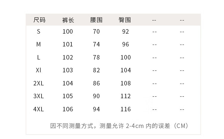 Outseam (cm) 99 cm 101.5 cm 104 cm 106.5 cm 109 cm