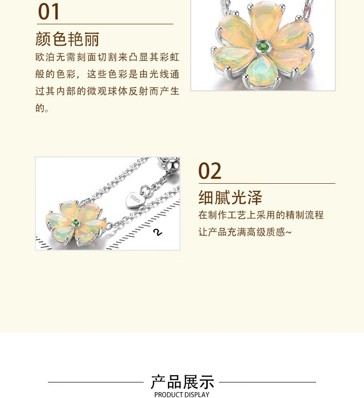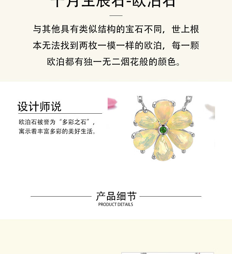 CAJJ Francois 1.4 carat opal stone necklace for women, natural colored gems, jewelry gemstones, 925 silver inlay, opal stone necklace