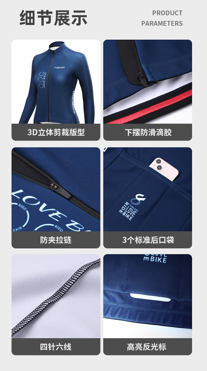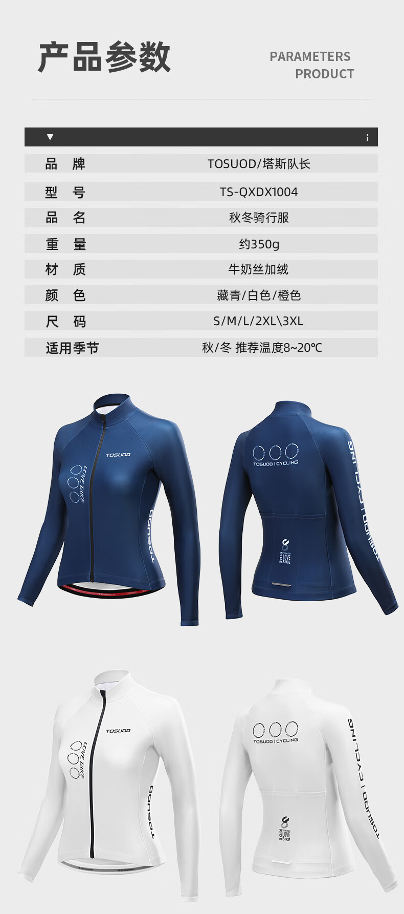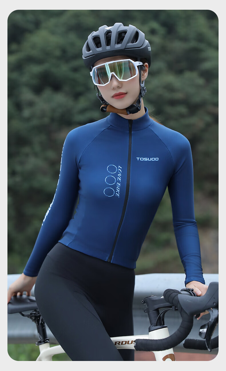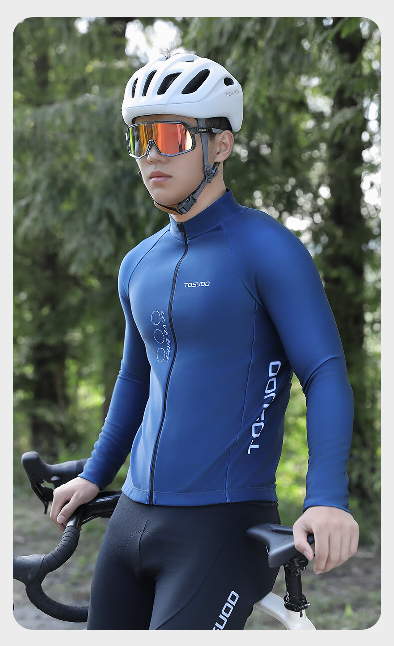 Captain Tas Road Bike Autumn and Winter Velvet Cycling Suit for Men and Women Professional Windproof Warm Long Top Mountain Bike Cycling Equipment Men's Dark Blue Chiteng Velvet Suit XL