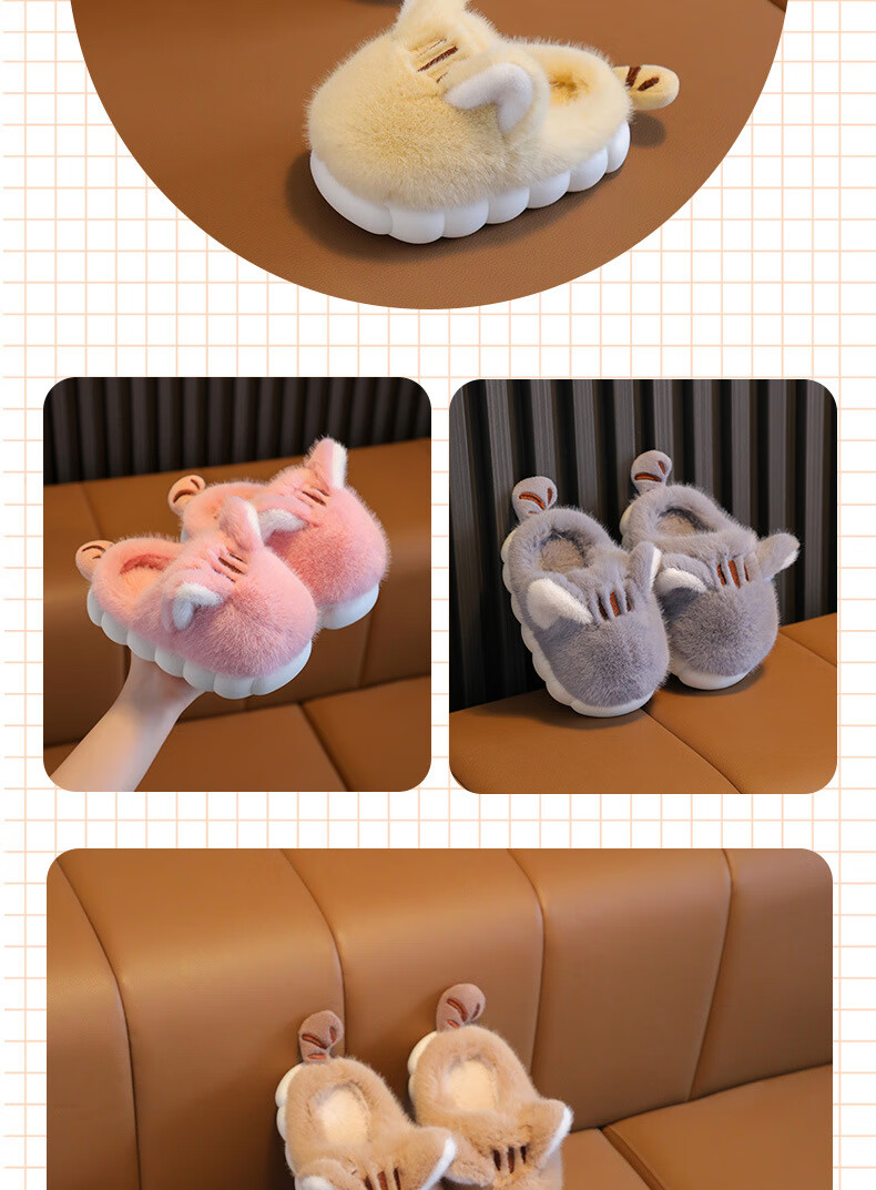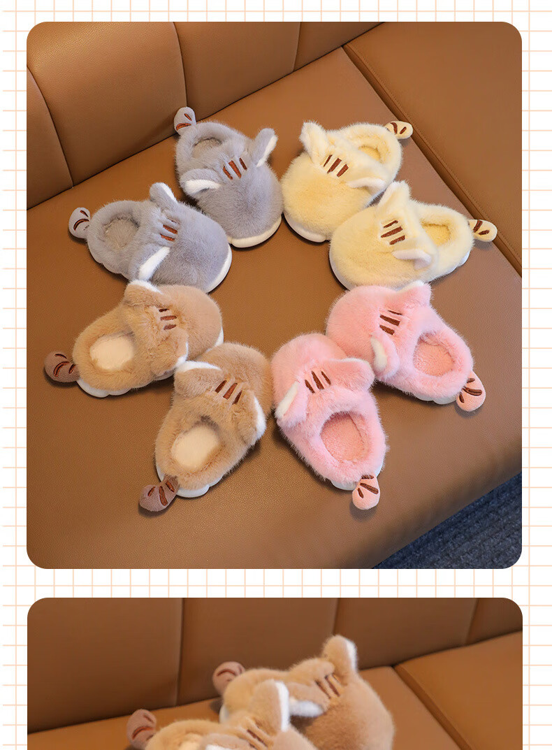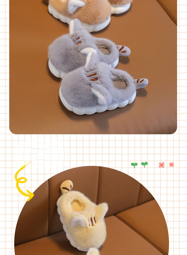 Muni Children's Cotton Slippers Autumn and Winter Cartoon Cute Kitten Claw Slippers Baby Home Indoor Thick Soled Girls Slippers Winter Lemon Yellow 34/35 Size Inner Length 21.5cm
