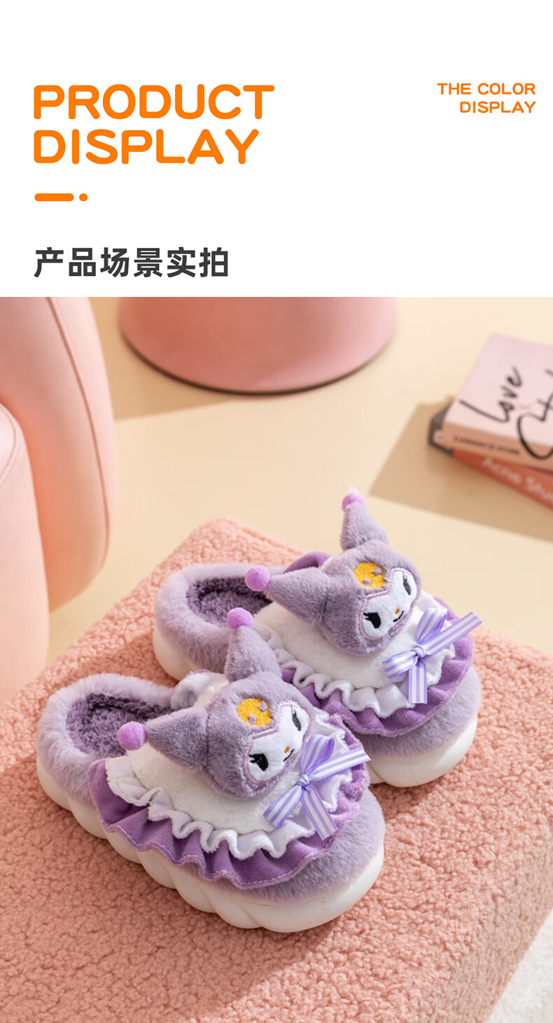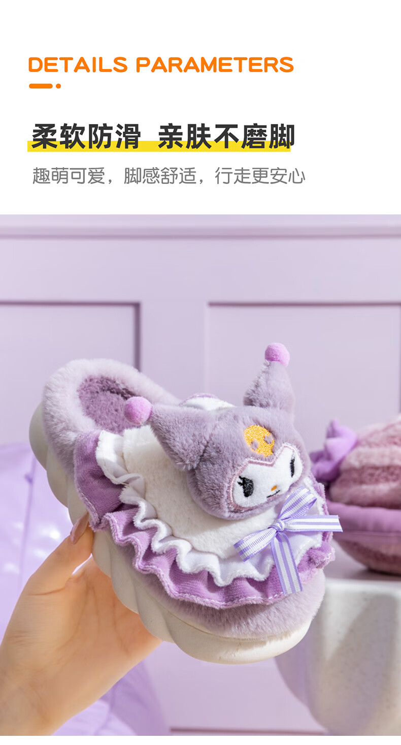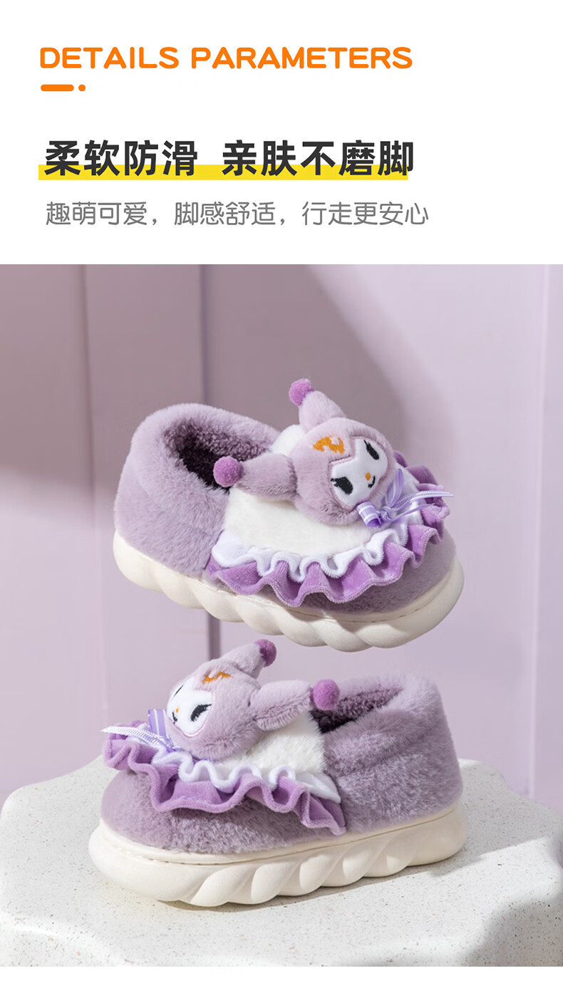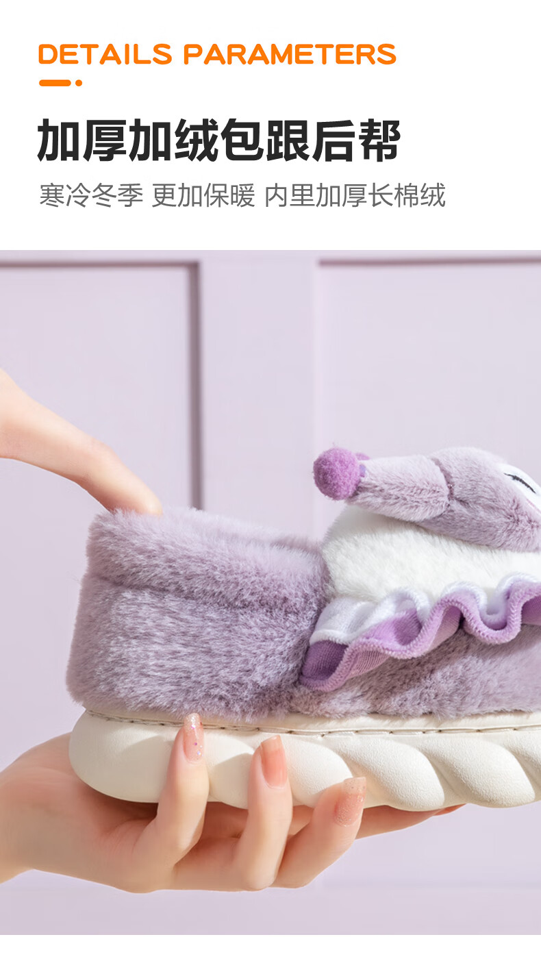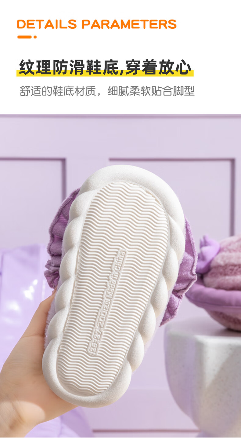 G.duck2024 New Children's Cotton Slippers Winter Cartoon Girl Princess Cute Warm Indoor Parent-child Girl Furry Slippers Purple (Culomi) 26/27 Inner Length 17.5cm About 4-4.5 Years Old