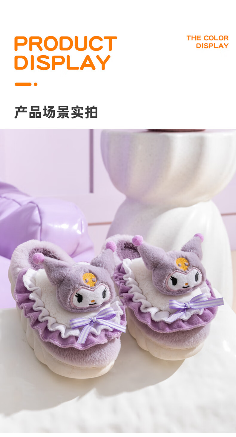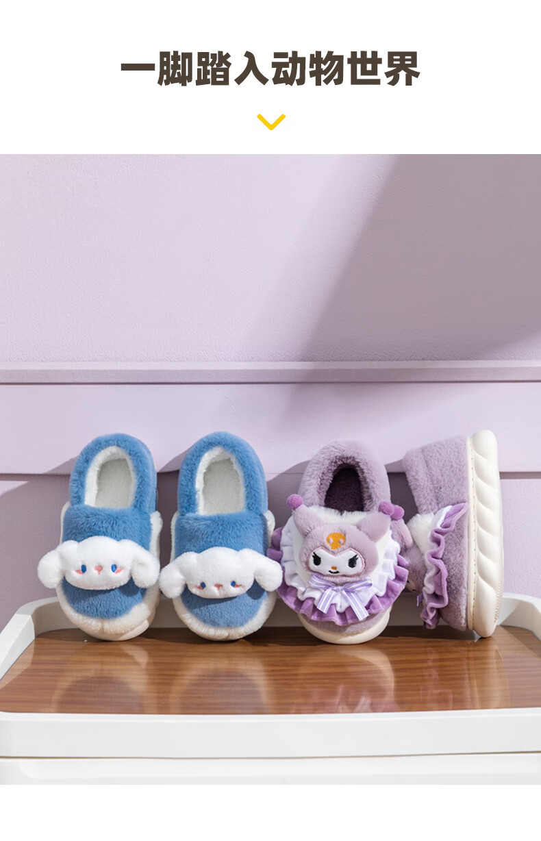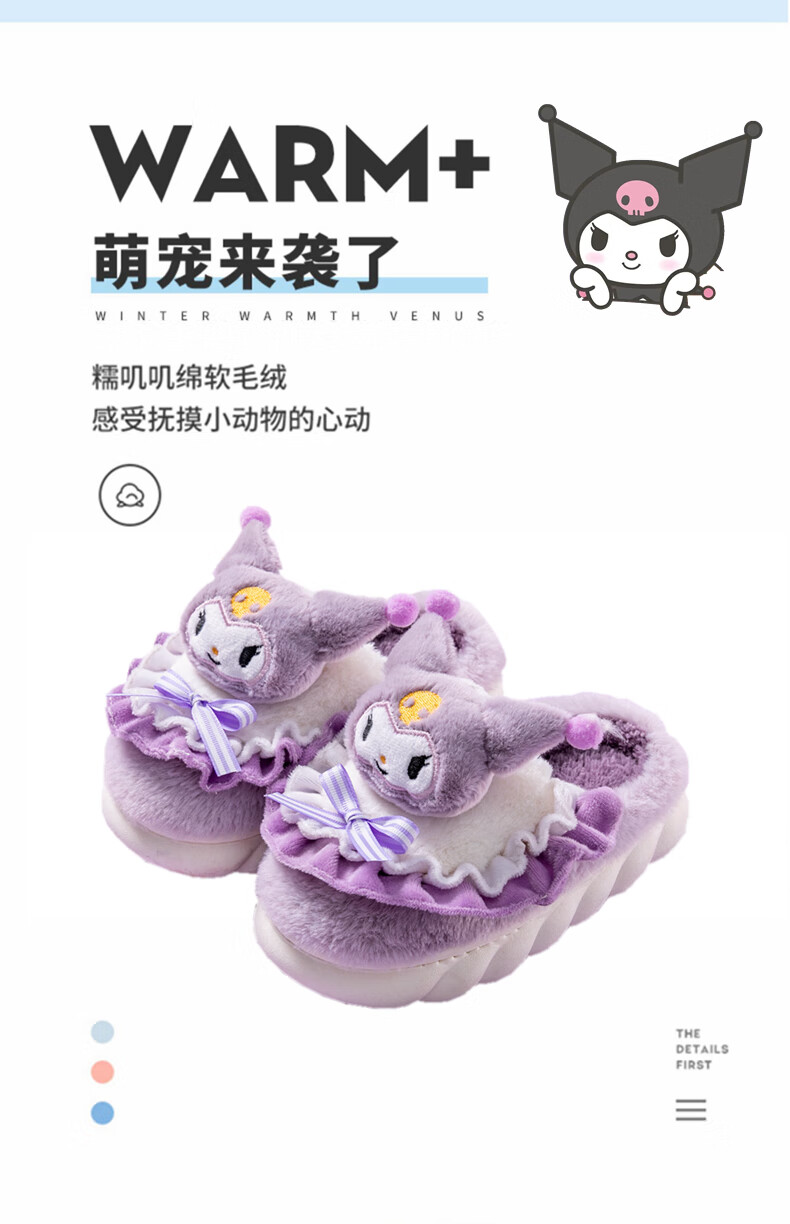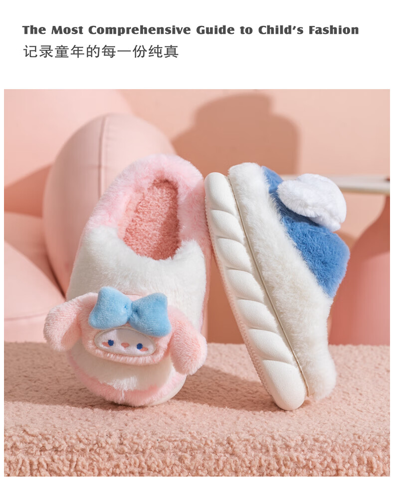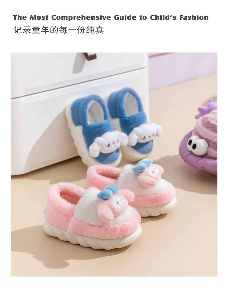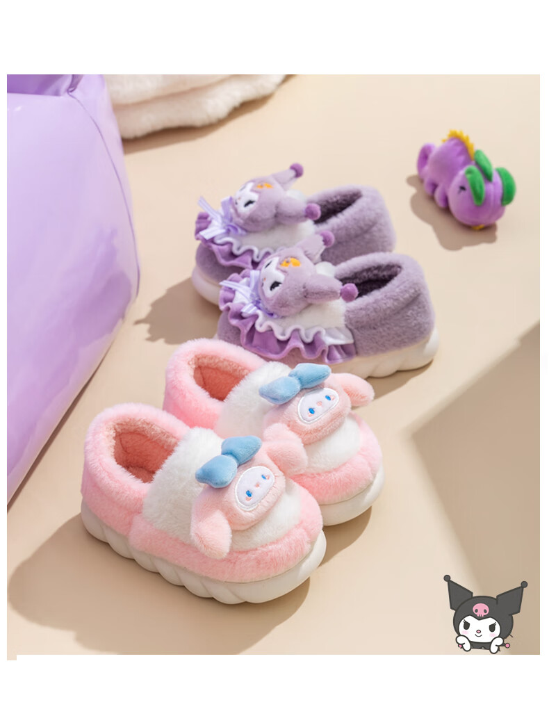 G.duck2024 New Children's Cotton Slippers Winter Cartoon Girl Princess Cute Warm Indoor Parent-child Girl Furry Slippers Purple (Culomi) 26/27 Inner Length 17.5cm About 4-4.5 Years Old