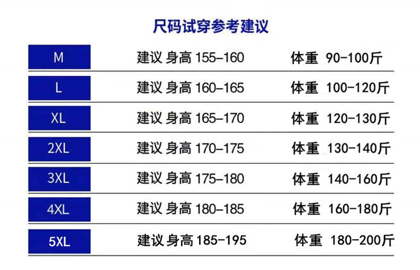 China (cm) 165 / 88-90 170 / 96-98 175 / 108-110 180 / 118-122 185 / 126-130