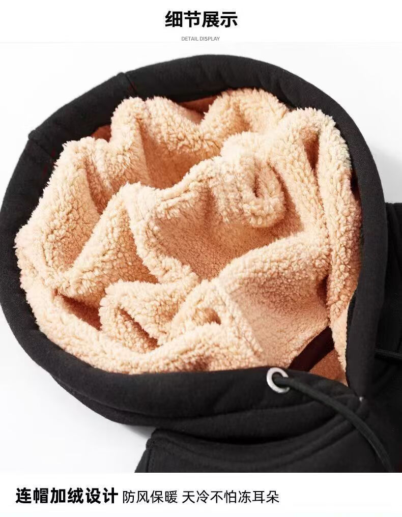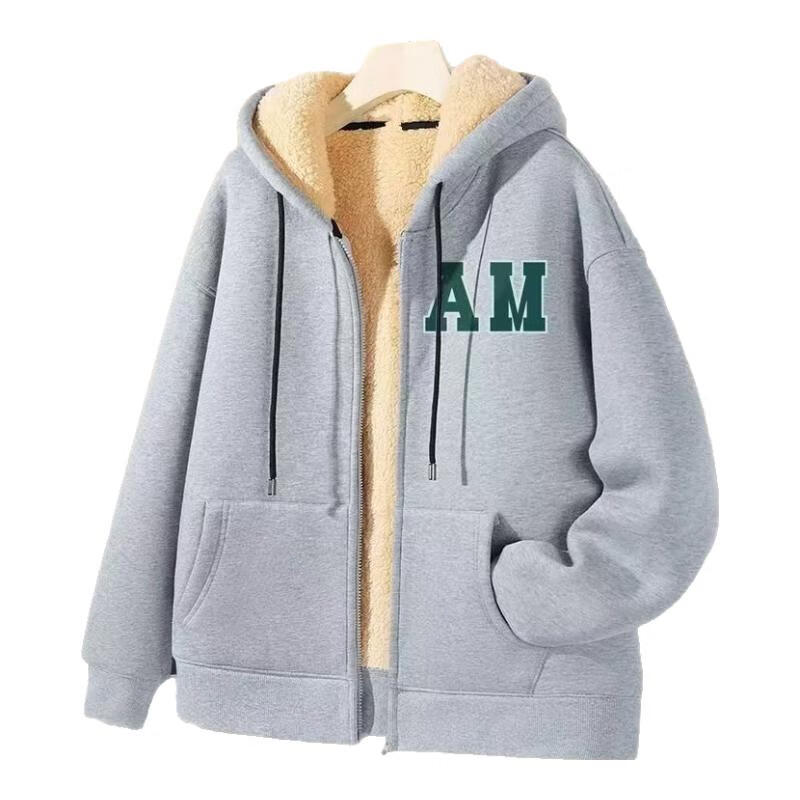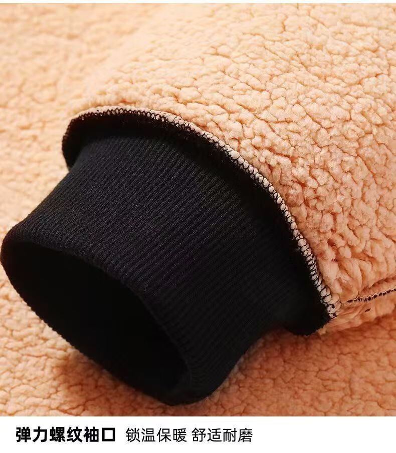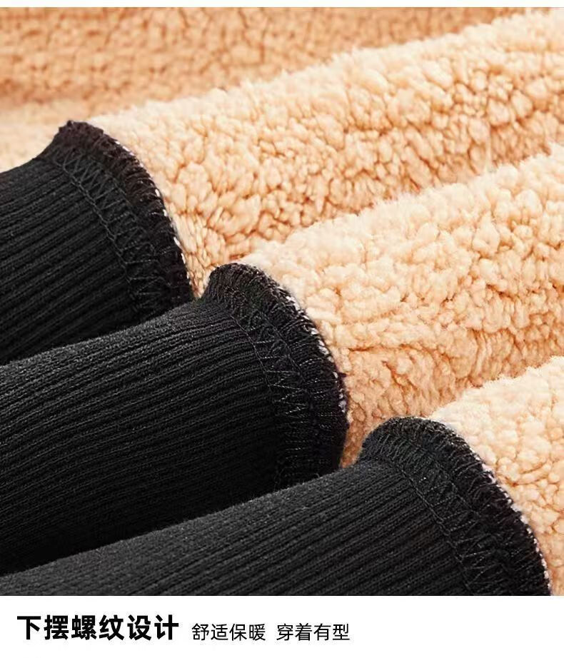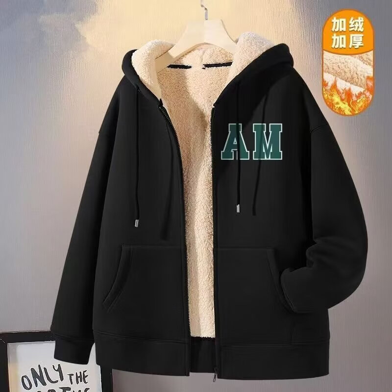 Lamb wool sweatshirt for women in autumn and winter new style plus velvet thickened warm cardigan hooded jacket lazy style loose Jiexiu A18 black L