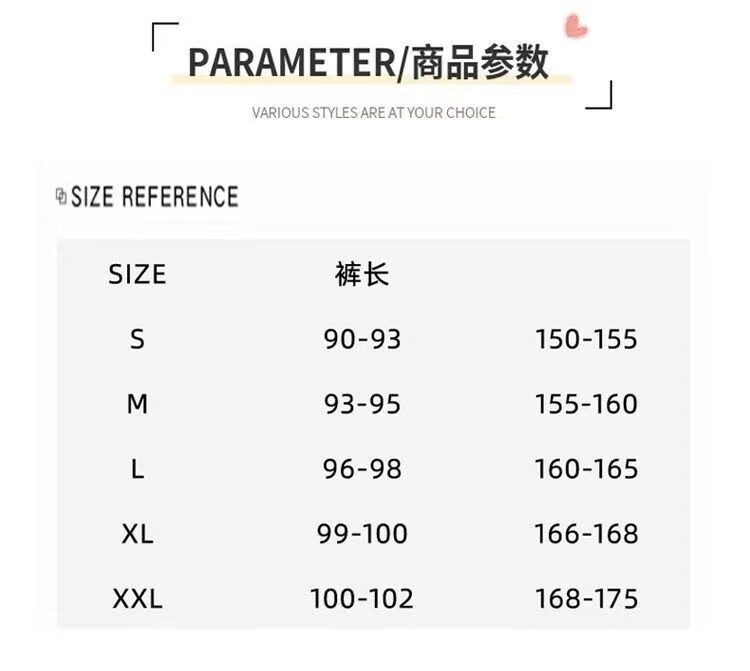 China (cm) 160-165/84-86 165-170 / 88-90 167-172 / 92-96 168-173 / 98-102 170-176 / 106-110