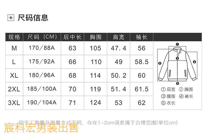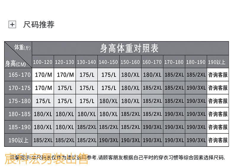 China (cm) 165 / 88-90 170 / 96-98 175 / 108-110 180 / 118-122 185 / 126-130