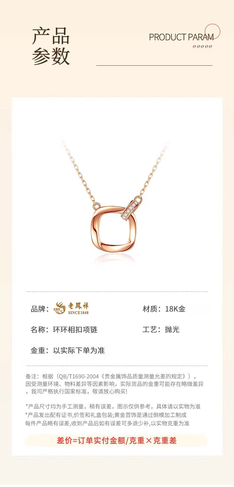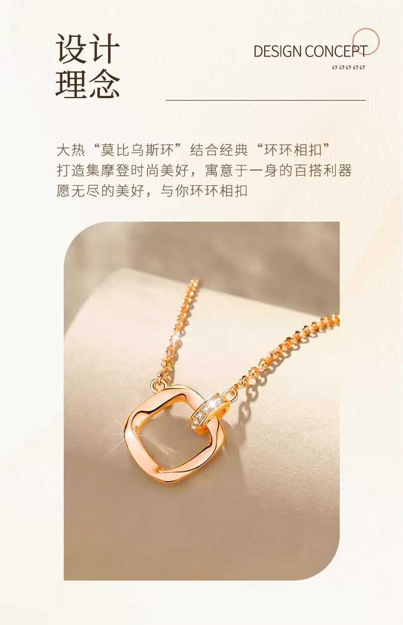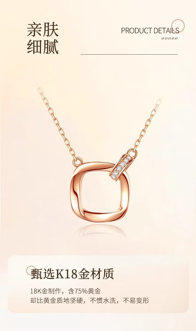 Lao Fengxiang 18k rose gold Möbius ring necklace, colorful gold ring, Valentine's Day birthday gift for girlfriend and wife 18K gold Möbius ring necklace, about 1.7g, brand gift box