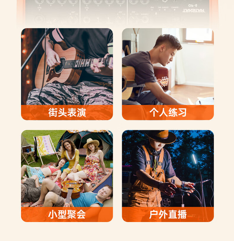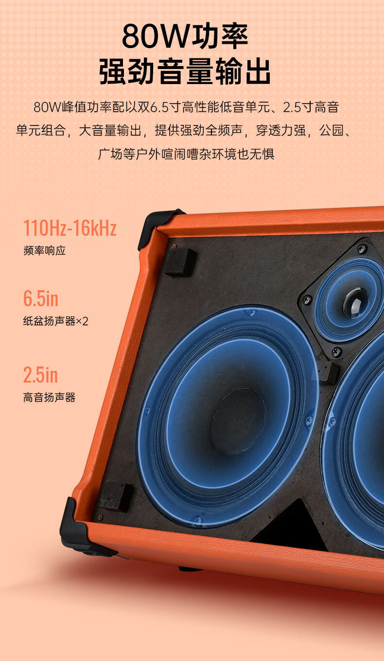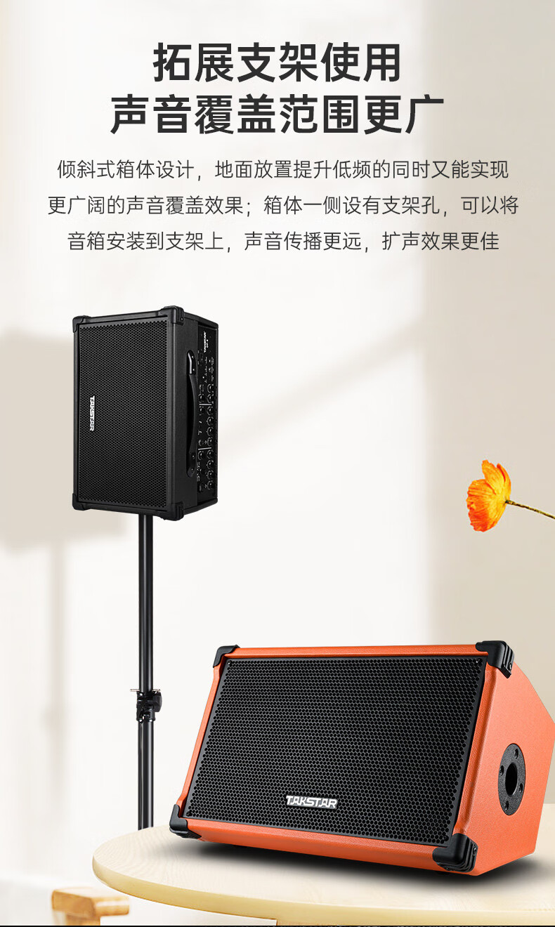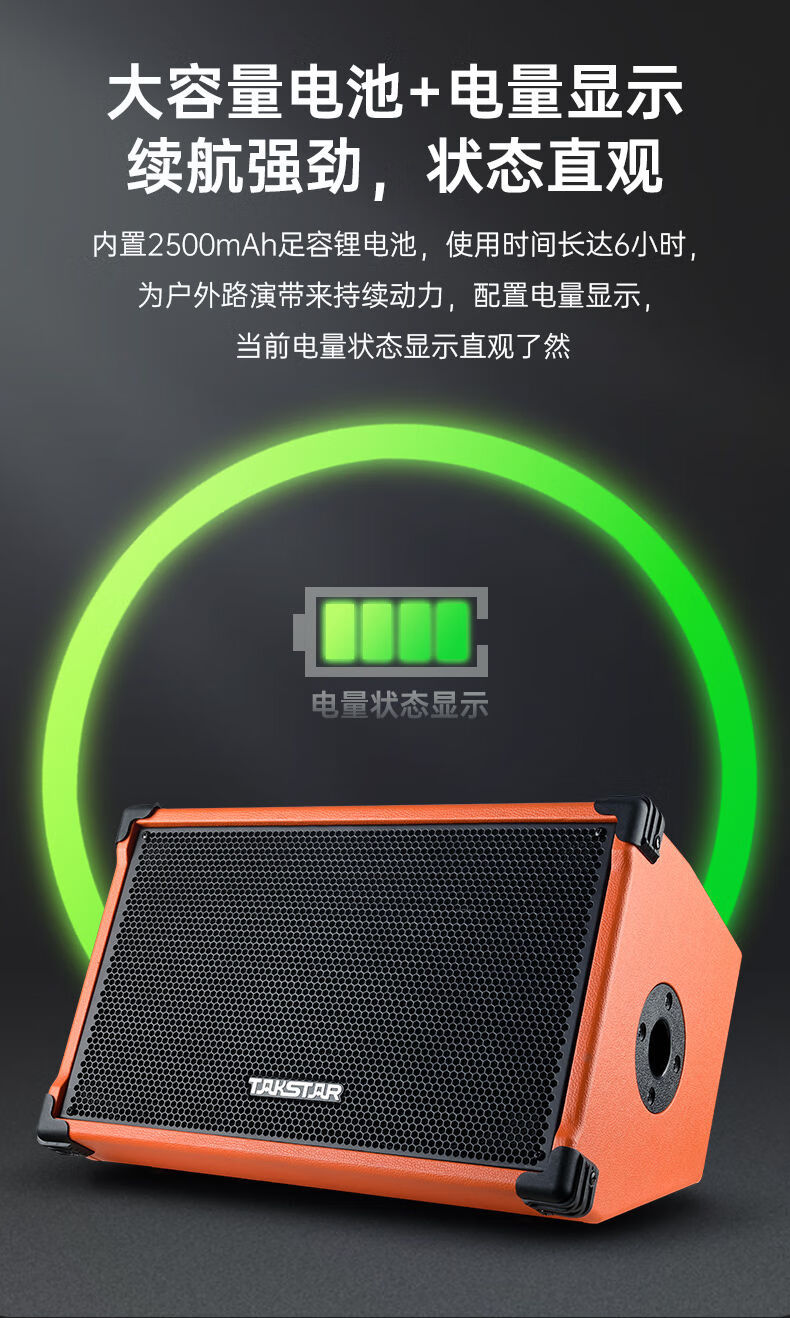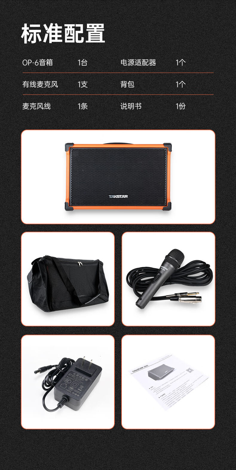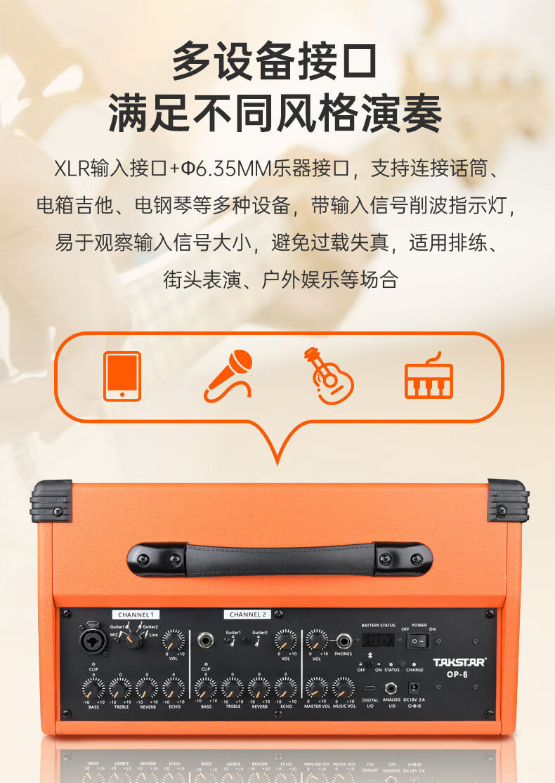 Xian Huaida OP-6 audio outdoor karaoke road show portable internet celebrity live singing special electric guitar playing and singing speaker OP-7 orange + Desheng TS-K302 wireless microphone one for two