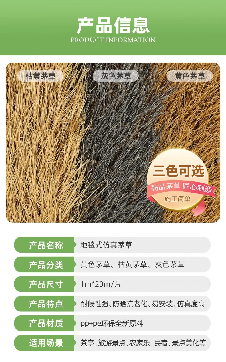 Elegant artificial thatch plastic straw insulated artificial roof fake grass pavilion outdoor courtyard yellow lawn decorative turf gray thatch (1 meter wide * 1 meter long)