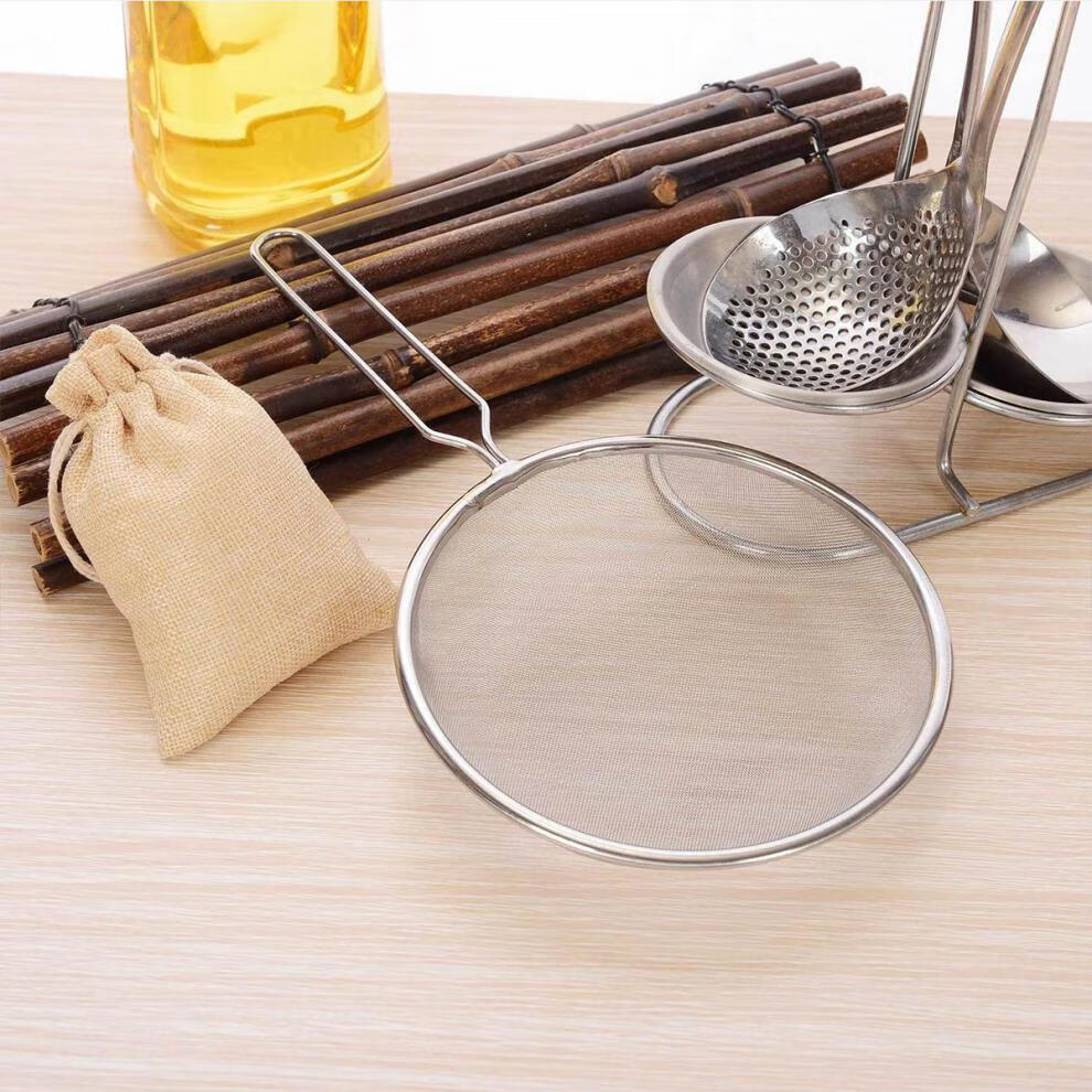 Qinkai stainless steel colander filter household traditional Chinese medicine baking net kitchen fish soup fish bone filter sieve handheld flour sieve 15cm colander - simple style
