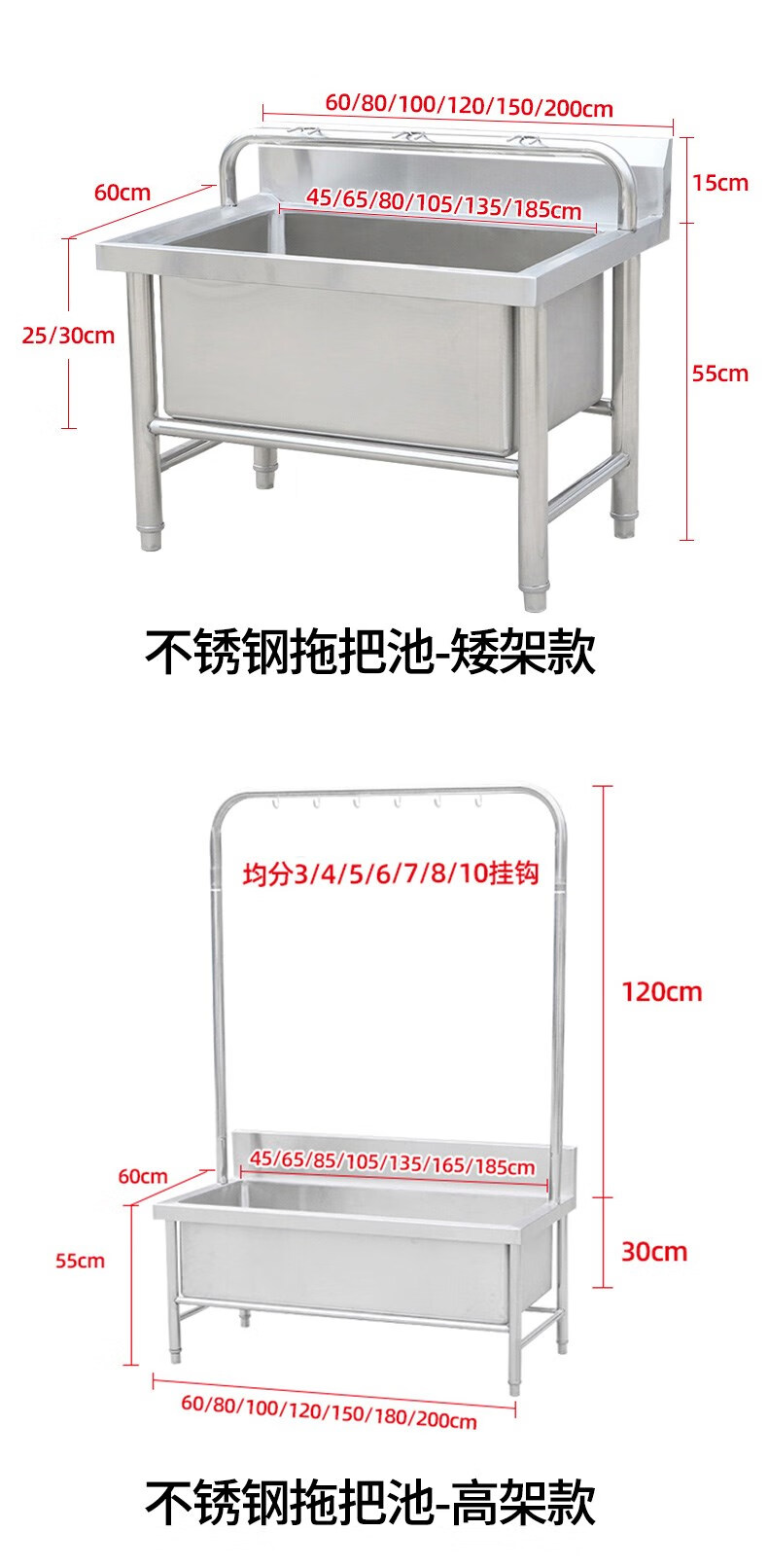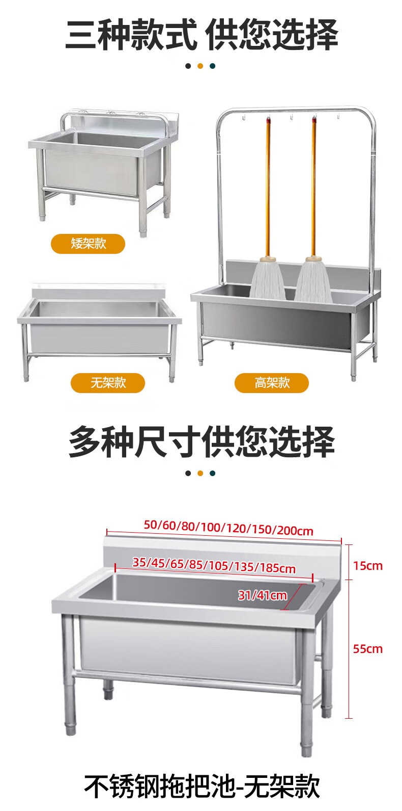 Stainless steel mop pool commercial with shelf integrated wash mop pool sink household balcony outdoor long mop pool without shelf length 50cm wide 50cm high 55cm