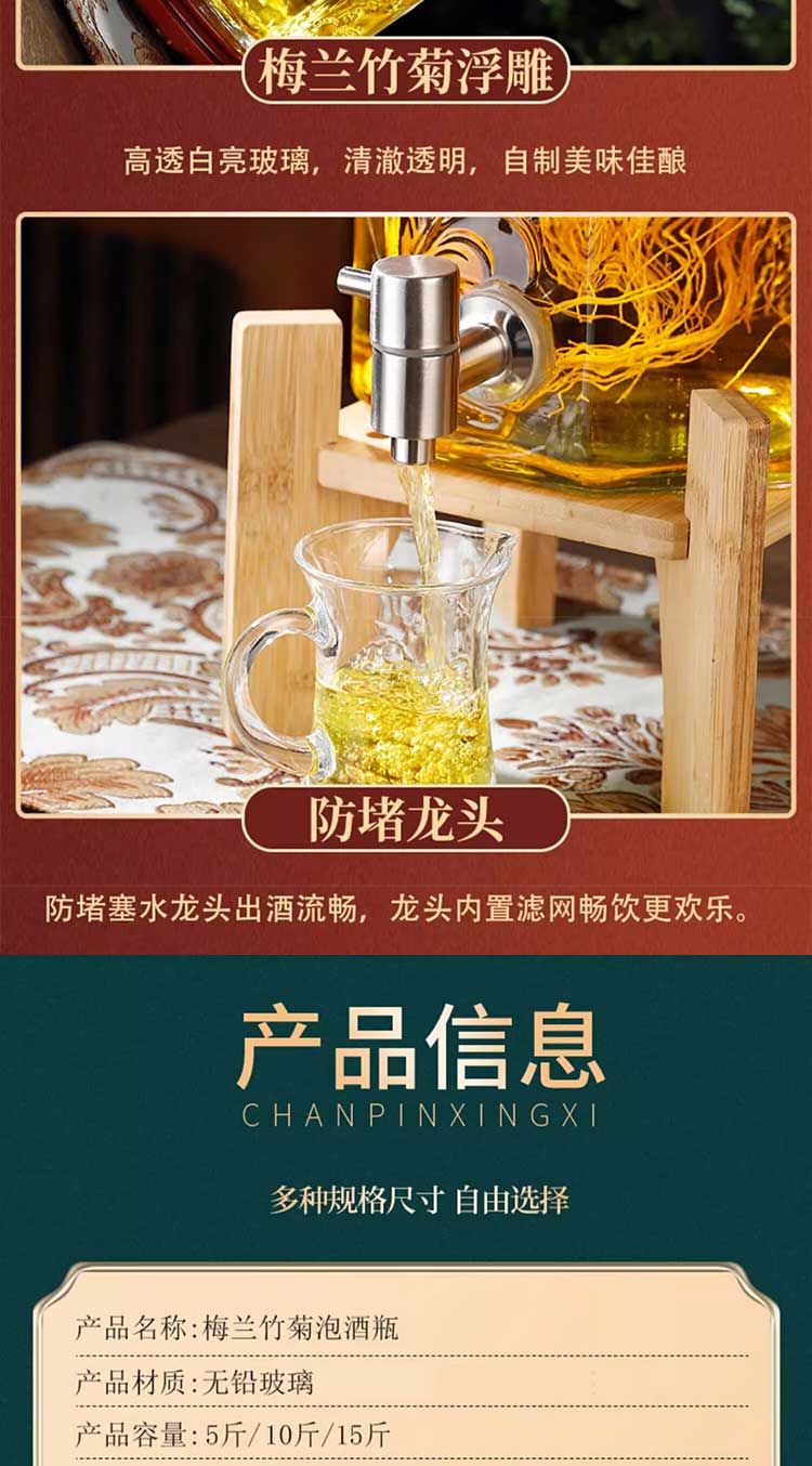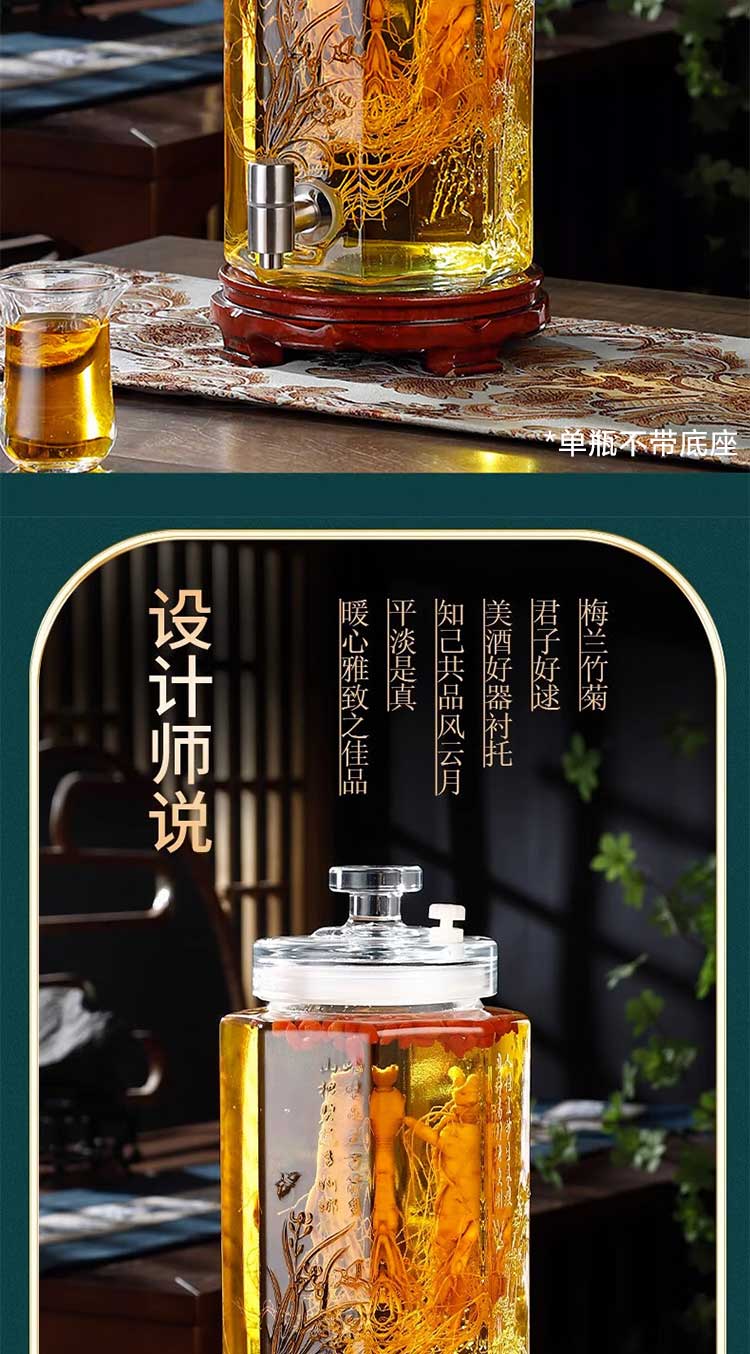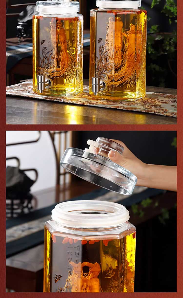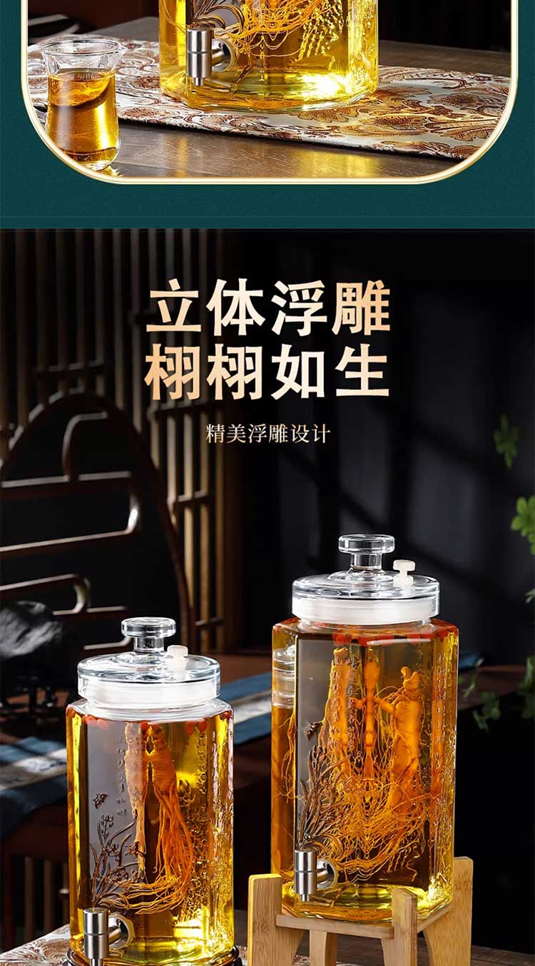 Carrot bubble wine glass bottle with faucet special wine bottle thickened sealed wine tank large capacity lead-free wine storage container thickened bubble wine bottle + stainless steel faucet 5Jin Jin equals 0.5 kg