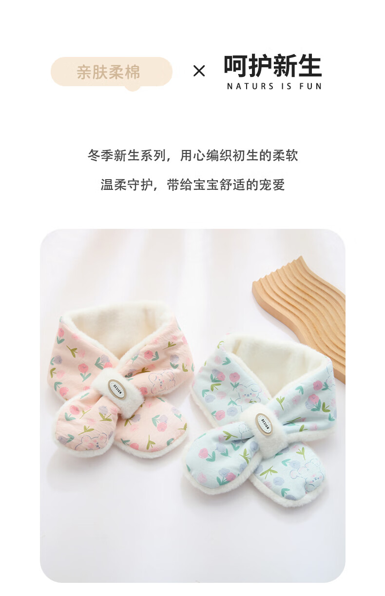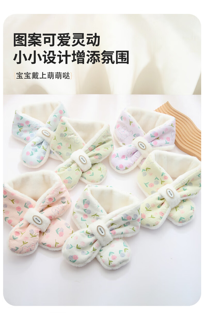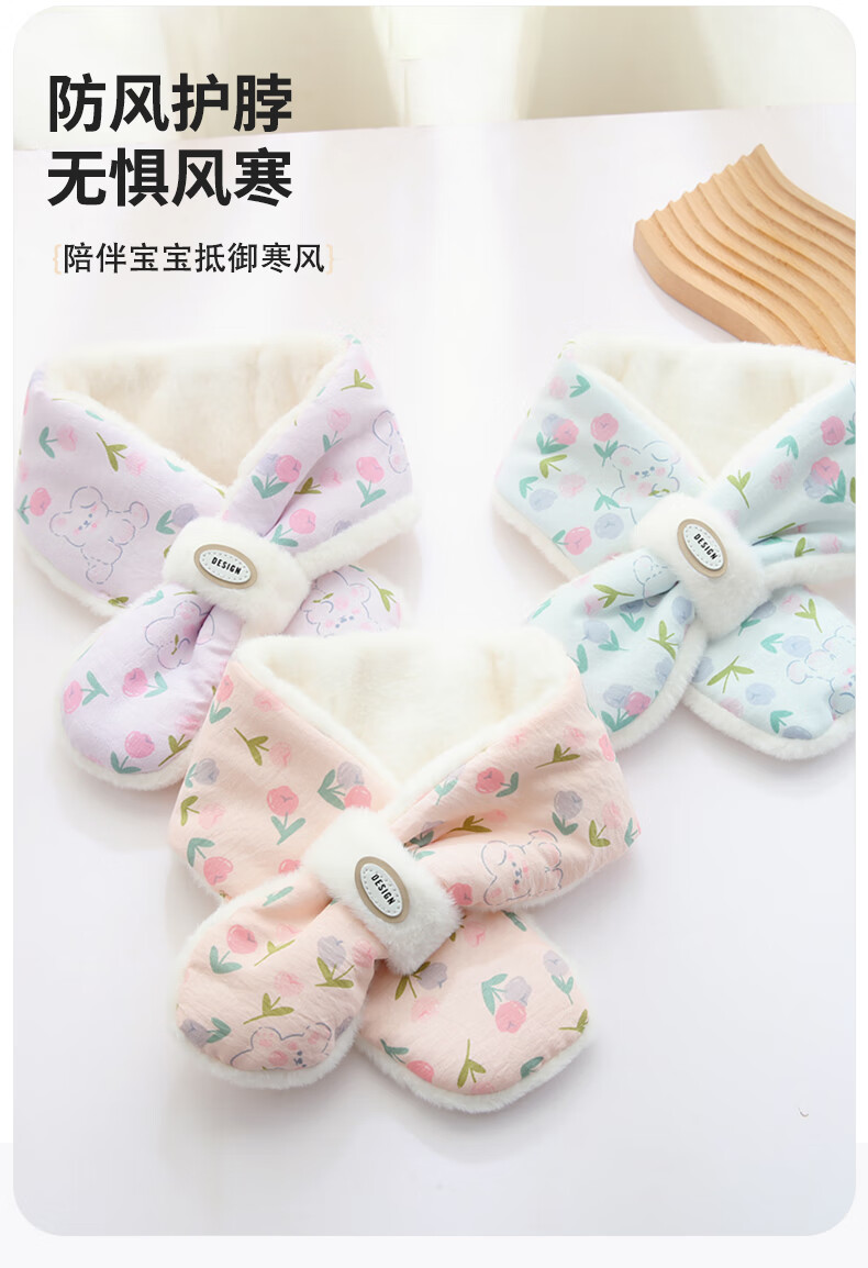 Benasi children's scarf autumn and winter baby girls kindergarten infants and toddlers winter warm windproof scarf thickened cute little flower - pink 1-8 years old 73CM
