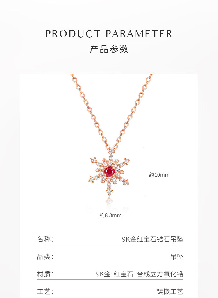 Chiba Jewelry 9K gold ruby and zircon pendant Hongxia Yingxue charming sparkling neck jewelry gift 9K gold ruby and zircon pendant/gold weight about 0.2g