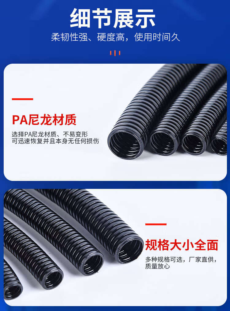 Huili PA nylon corrugated plastic flame retardant threading hose automotive waterproof electrician protection threaded casing opening. The default is closed and needs to be opened. Please note.