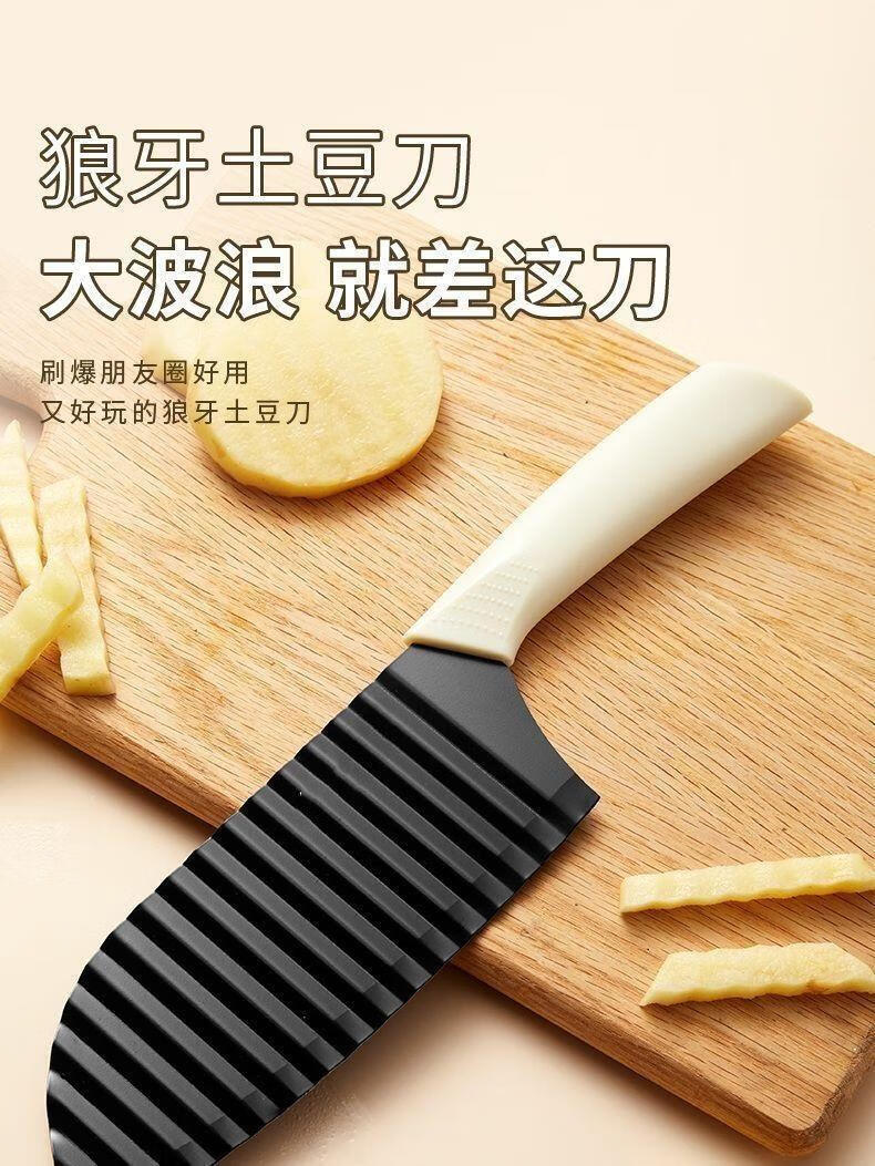 Potato Knife Wave Knife Commercial Multi-Function Wolf Tooth Household Multi-Function Fancy Potato Chip Cutting Tool Potato Cutting Artifact Black Blade White Handle Model (Ordinary Model)