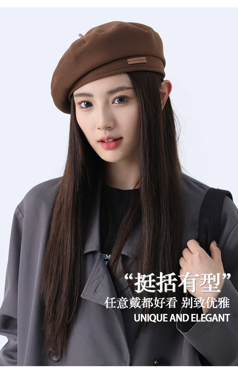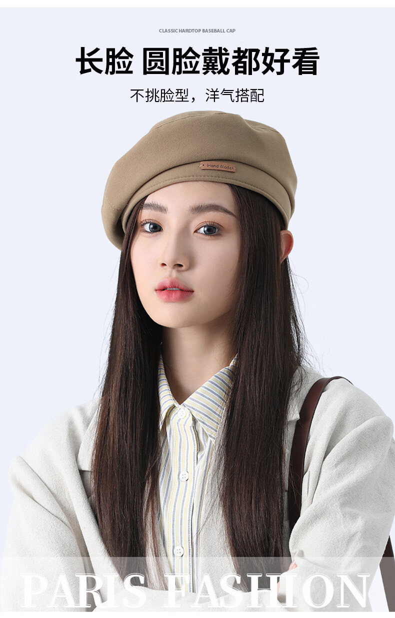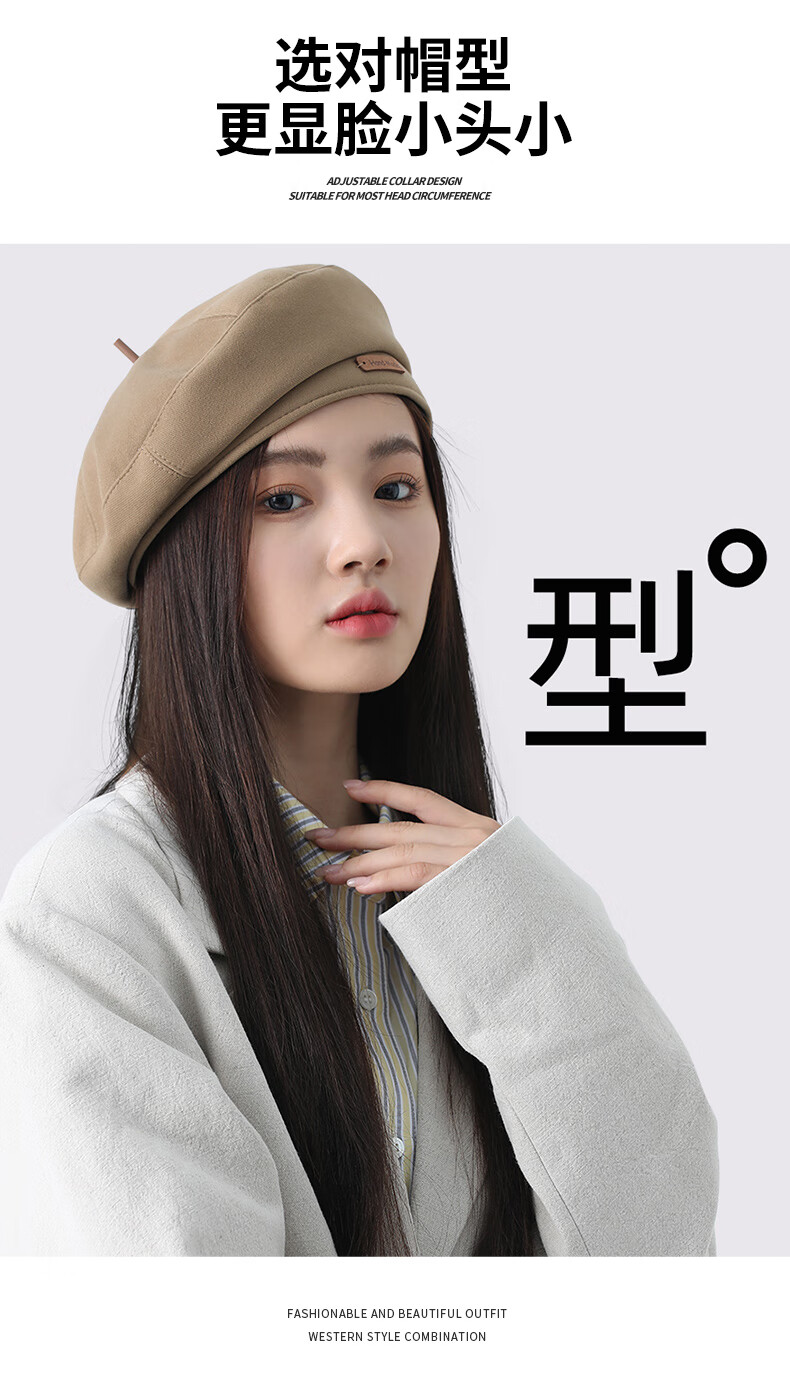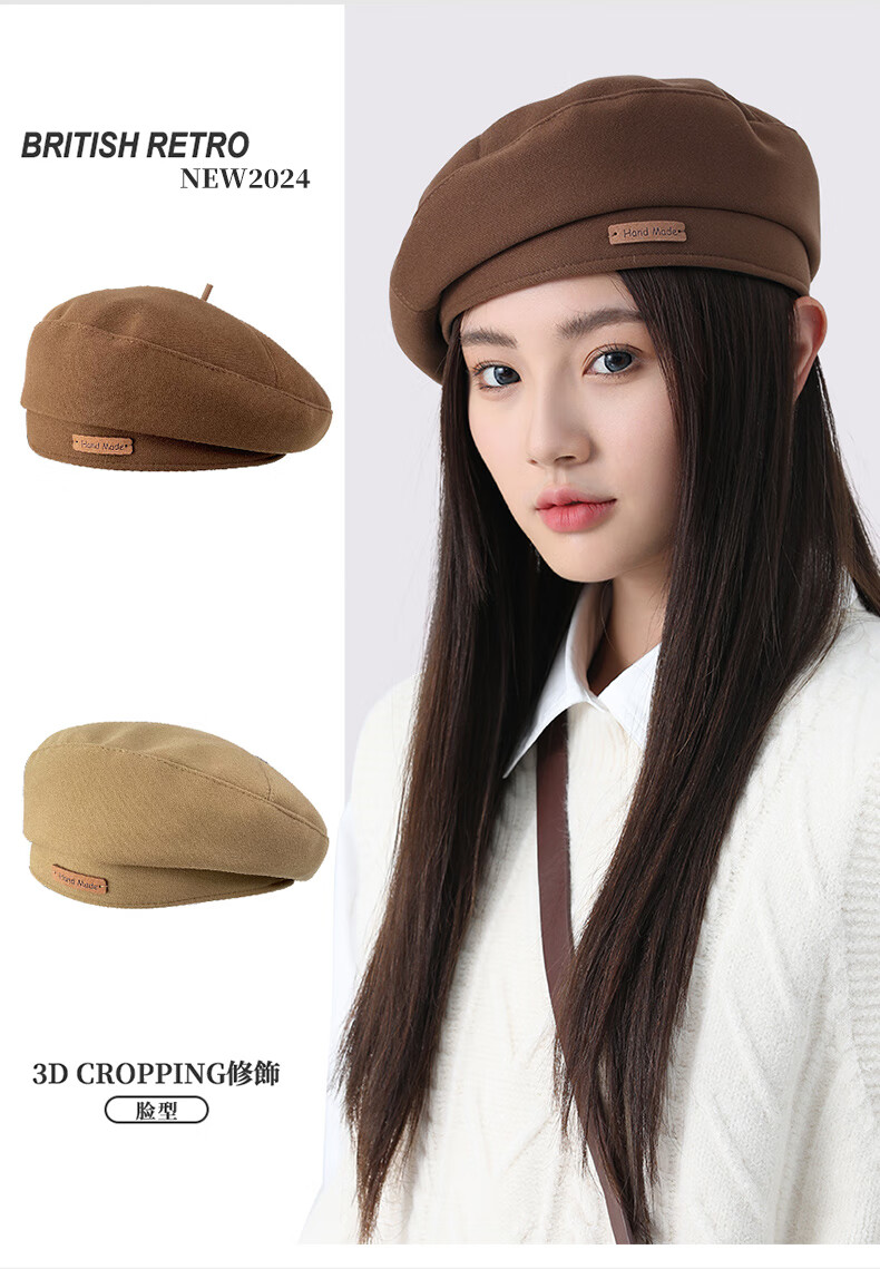 Antarctic Hat Winter Women's Large Head Circumference Beret Showing Face Small Fashionable Retro Versatile Painter Newsboy Hat Women Brown