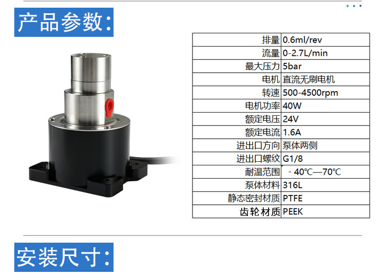 WSF Weishengfeng magnetic gear pump food-grade high-precision filling metering pump stainless steel small organic solvent pump methanol hydrogen production pump 0.6ml/r-WSFSGE0.6+40W brushless motor