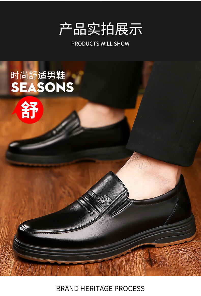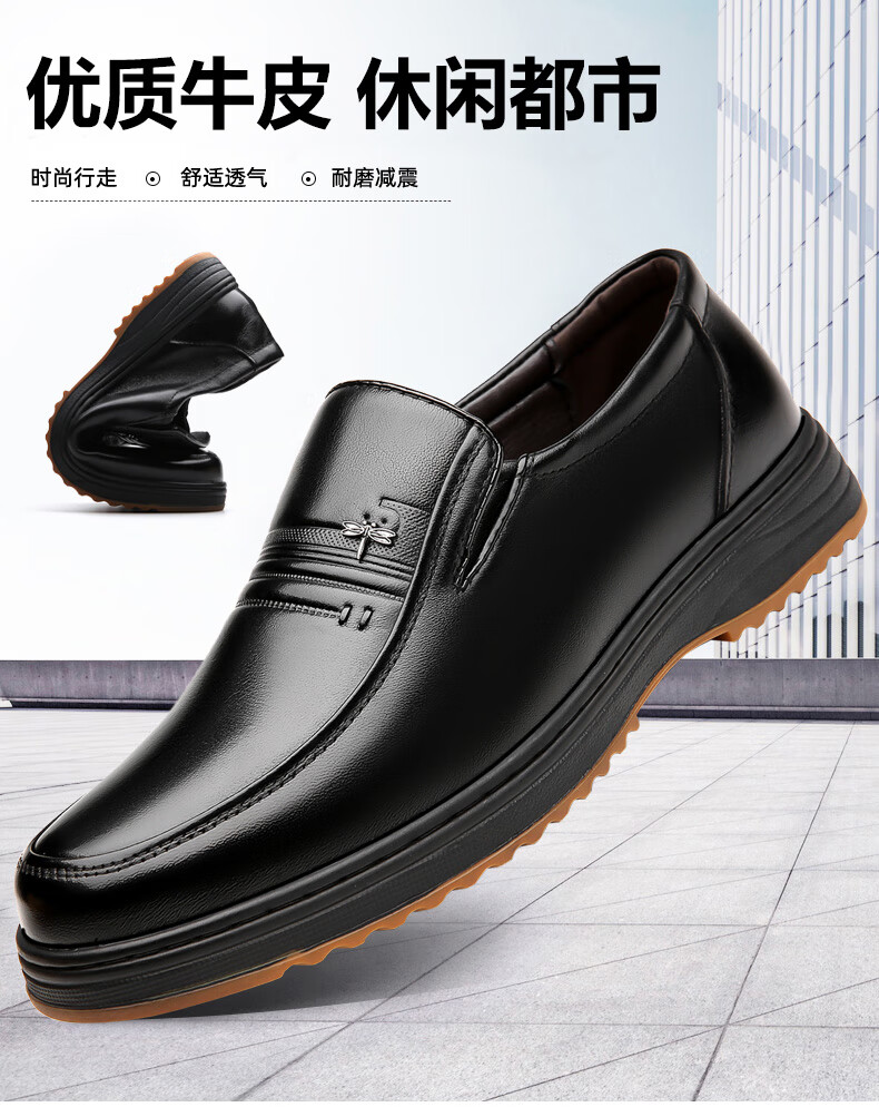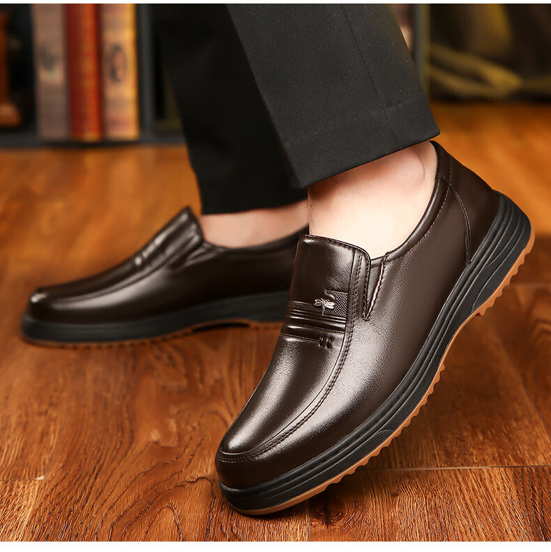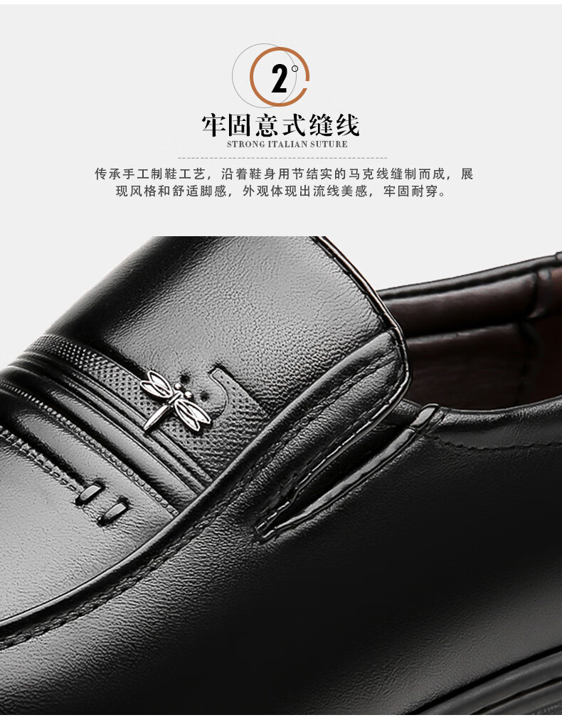 Dragonfly brand leather shoes men's toe-layer cowhide business casual shoes men's tendon sole genuine leather soft sole non-slip middle-aged and elderly dad shoes black 43