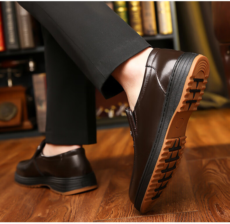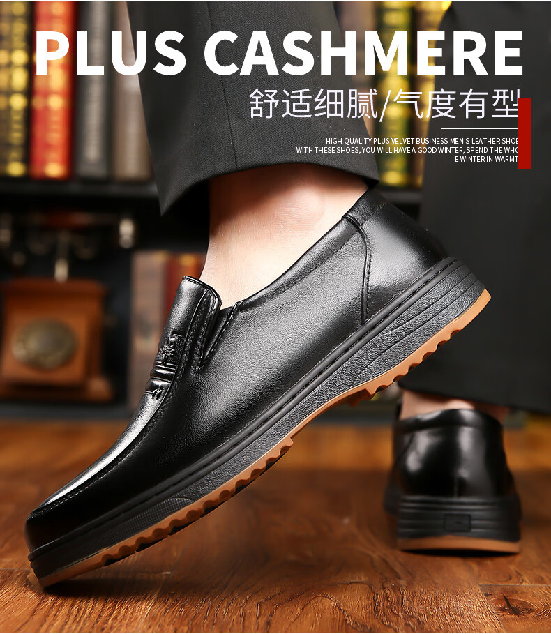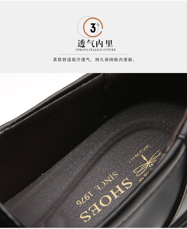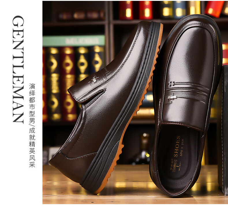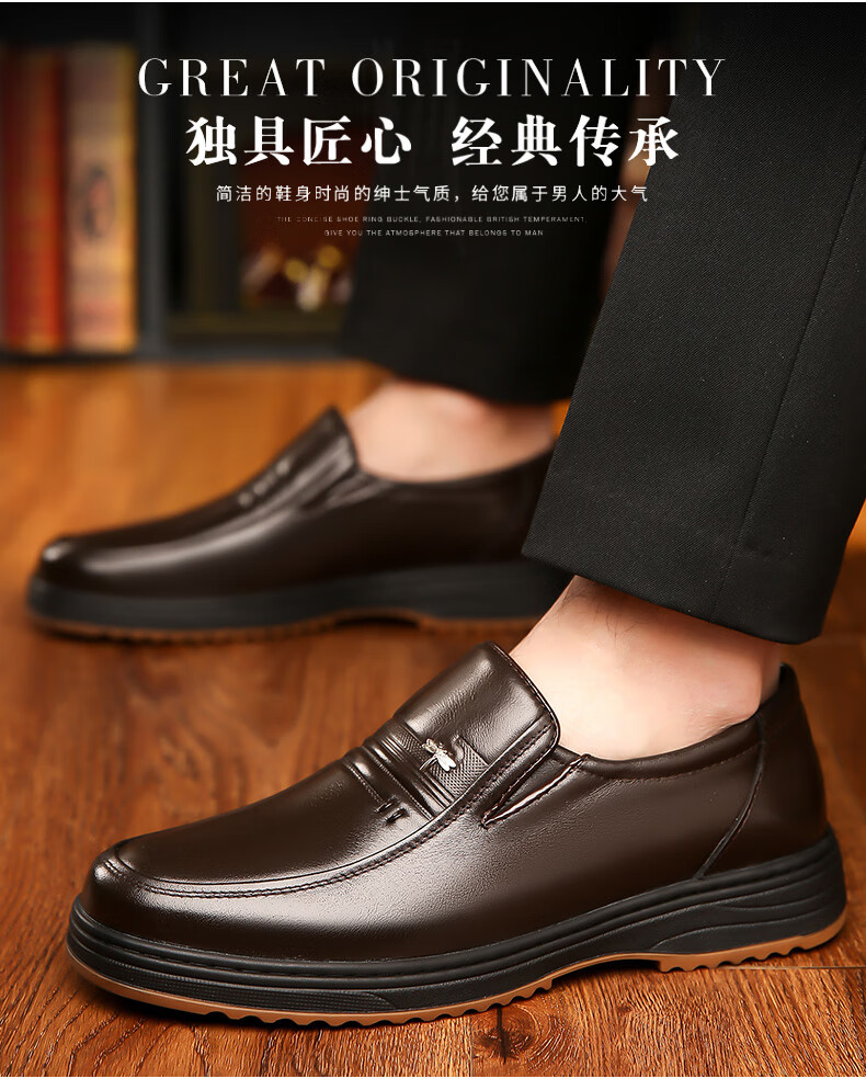 Dragonfly brand leather shoes men's toe-layer cowhide business casual shoes men's tendon sole genuine leather soft sole non-slip middle-aged and elderly dad shoes black 43