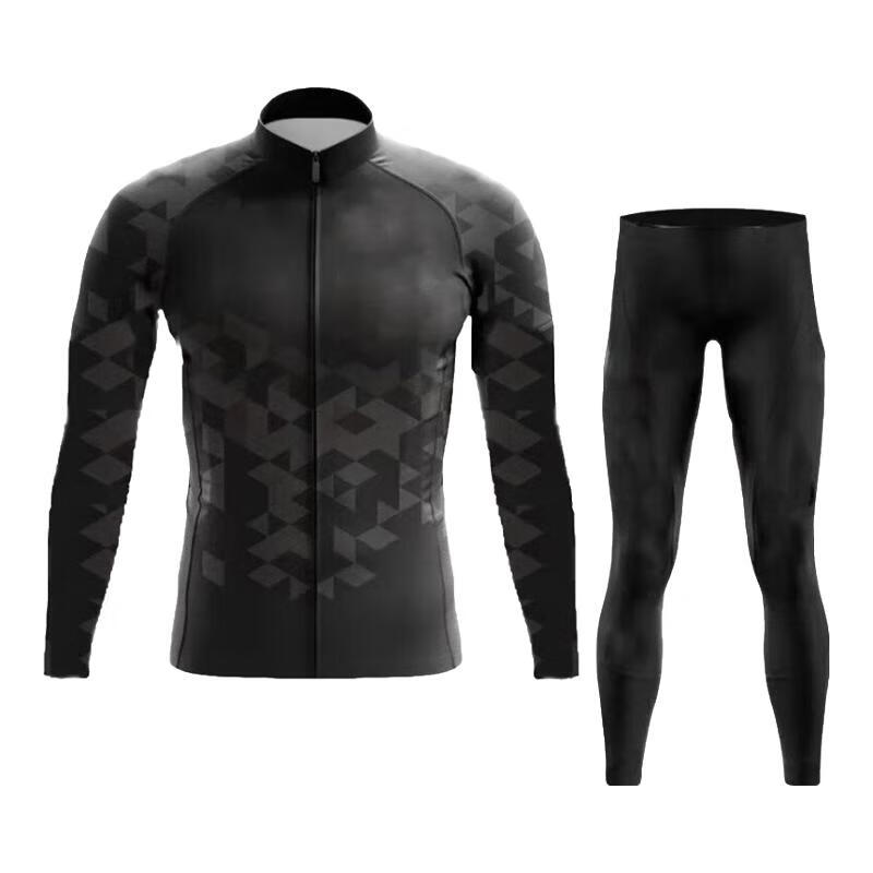 Qingbilin Cycling Suit Fleece Long Sleeve Cycling Suit Winter Long Sleeve Road Cycling Warm Top Jacket F3 Pure Black Plus Velvet丨Set XL Size丨60-65kg