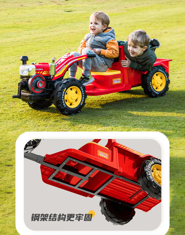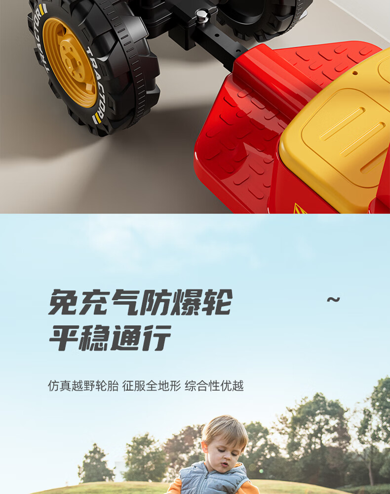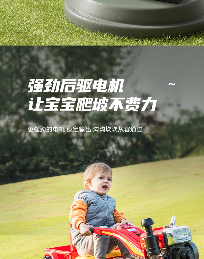 WORK BABY children's walking tractor electric toy car with seat and bucket dual drive baby car New Year's gift remote control version blue dual drive/lithium battery electric drive