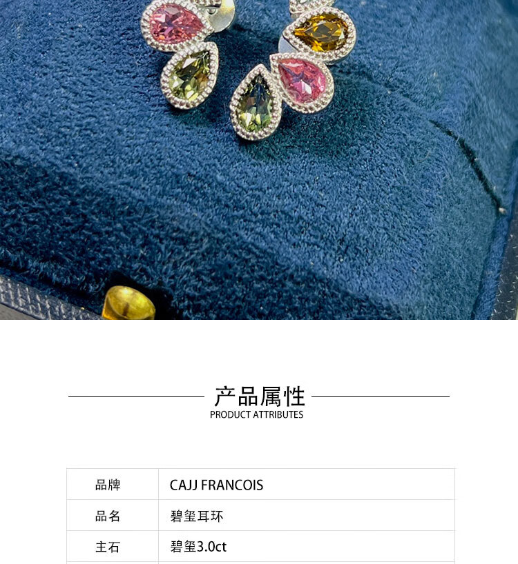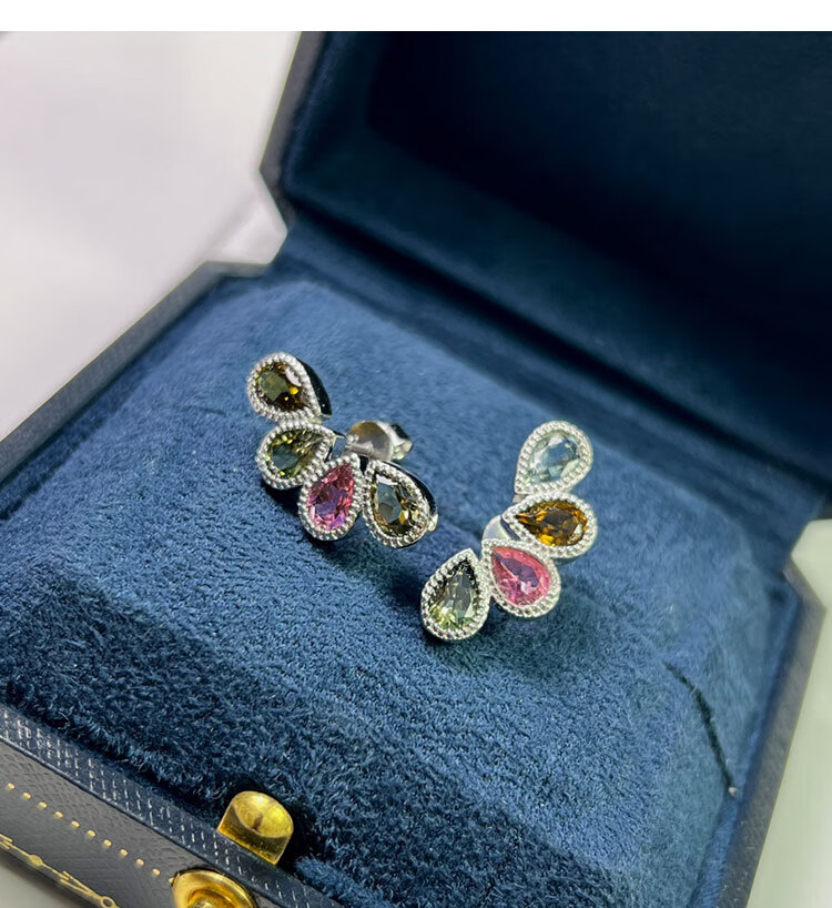CAJJ Francois 3.0 carat tourmaline stud earrings for women, natural colored gems, jewelry gemstones, 925 silver inlay, tourmaline stud earrings