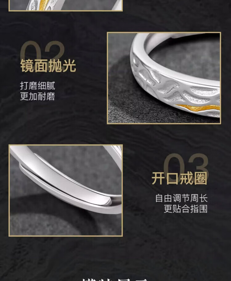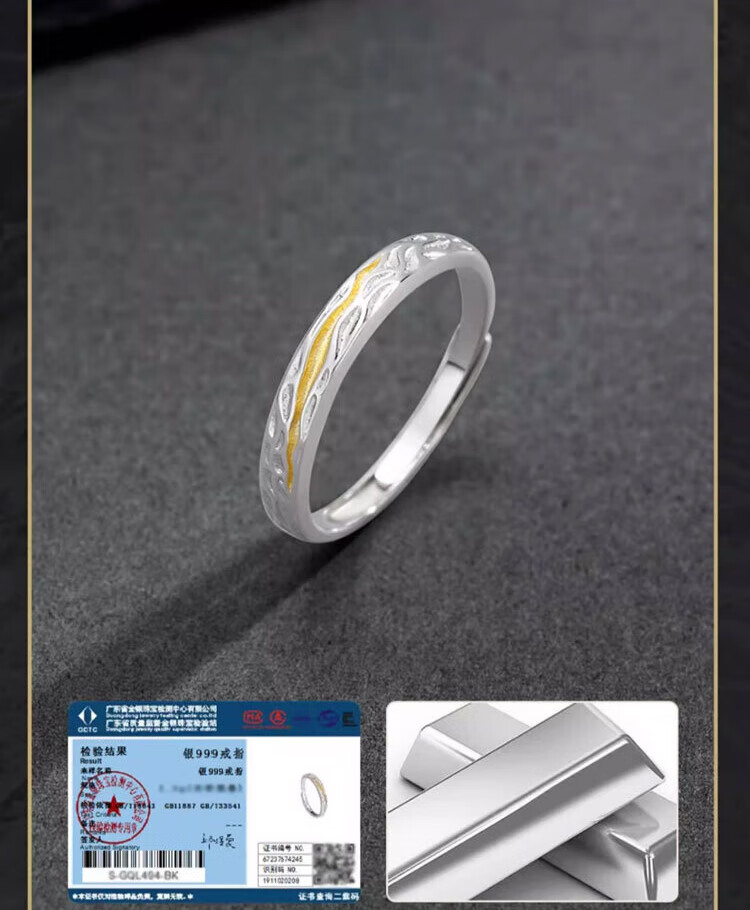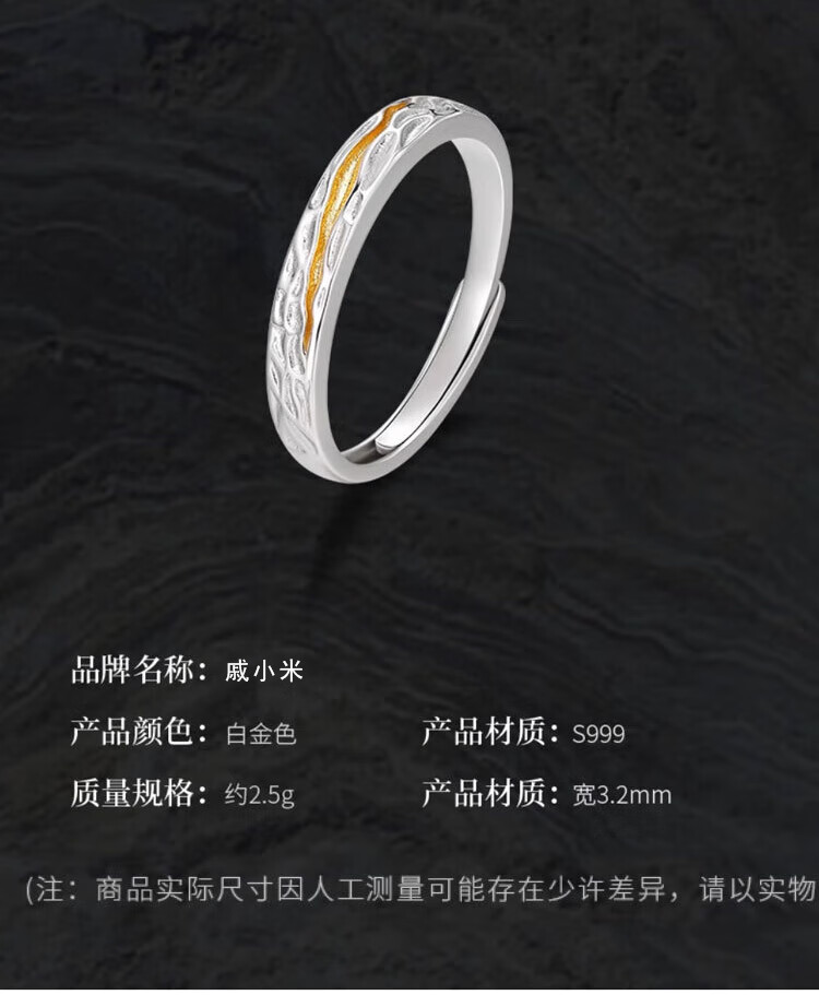 Qi Xiaomi pure S999 pure silver ring boys index finger ring open ring 2025 new high-end birthday gift for boyfriend 999 pure silver chasing light ring with adjustable opening