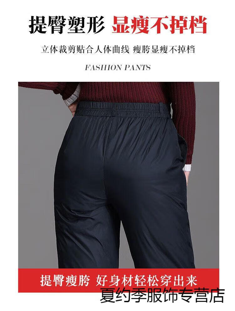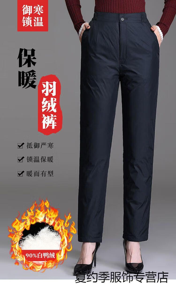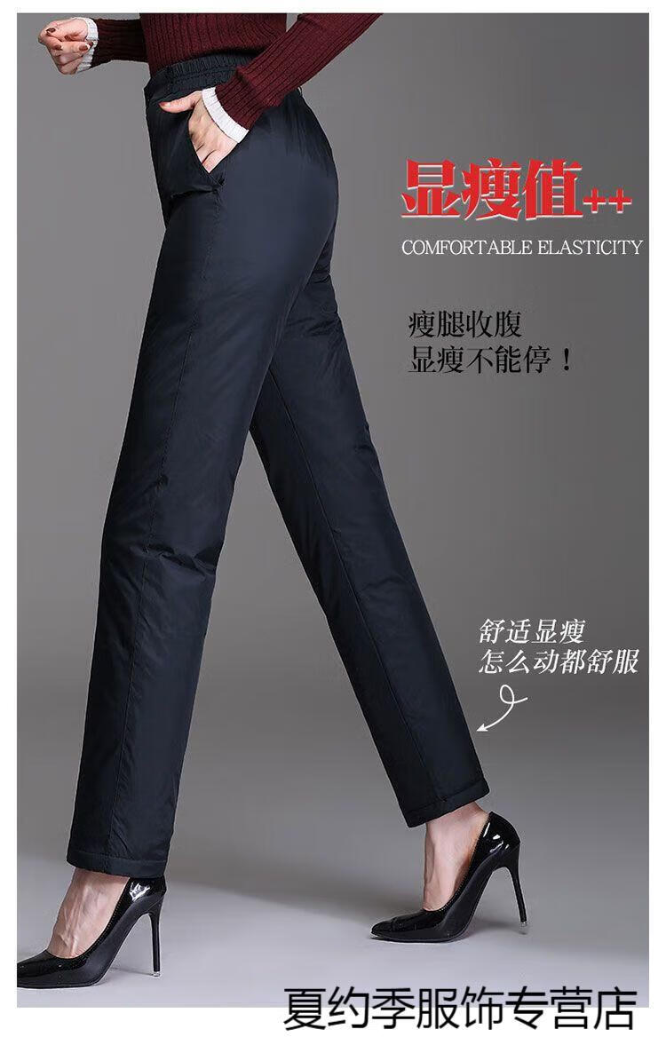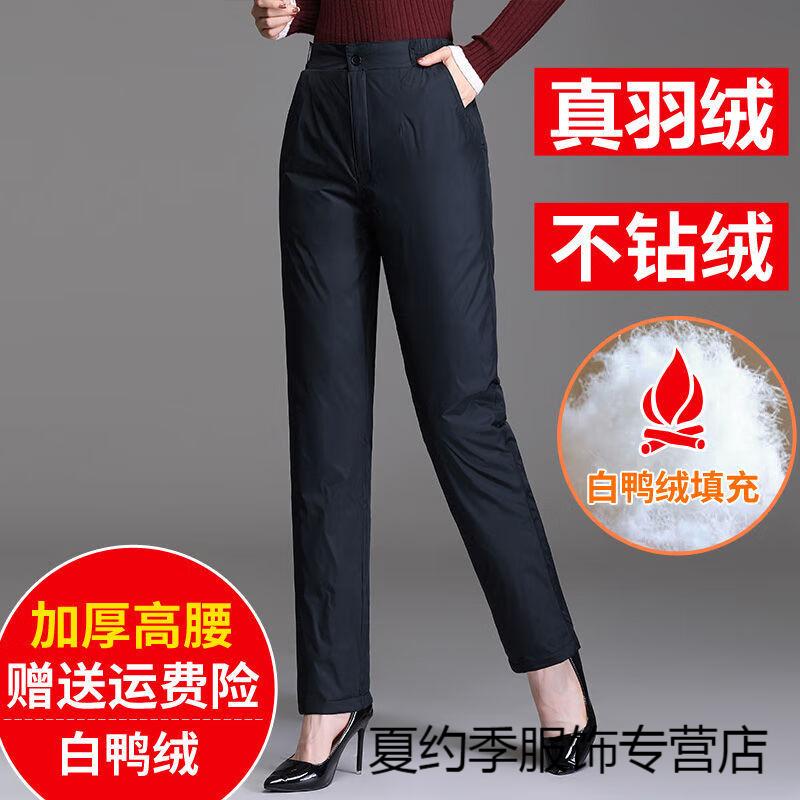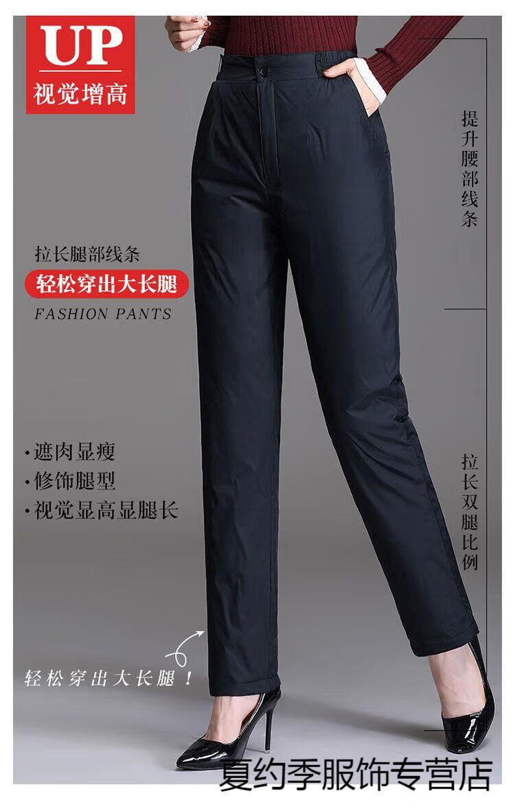 Duck Down Pants Women's Outerwear High Waist Thickened Large Size Women's Cotton Pants Winter Warmth and Slimming Middle-aged and Elderly Outdoor Duck Down Pants Elegant Black High Quality Women's Model M Recommended Weight 90-105 Jin Jin is equal to 0.5 kg