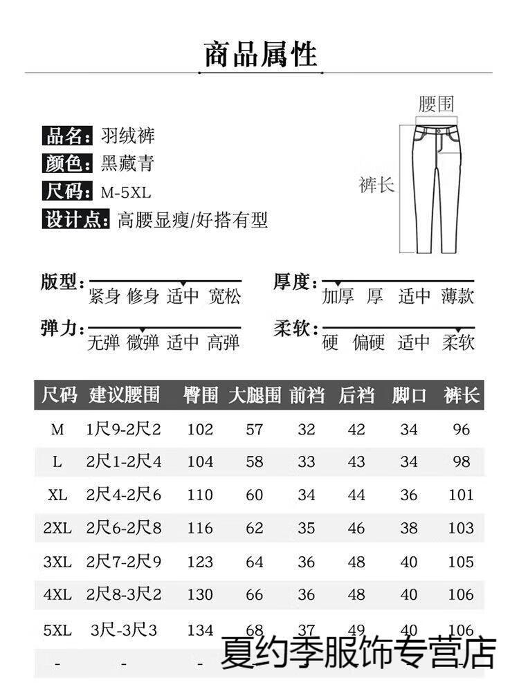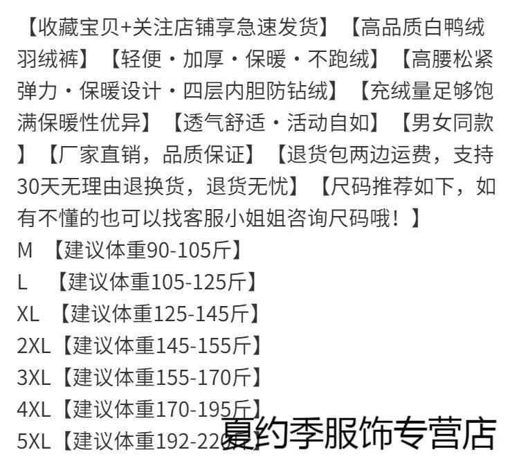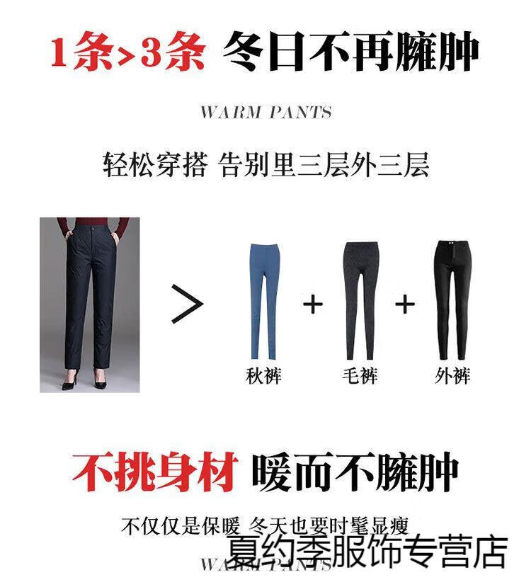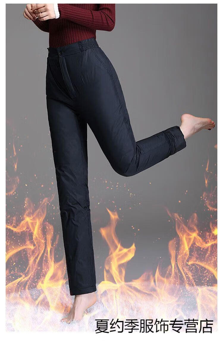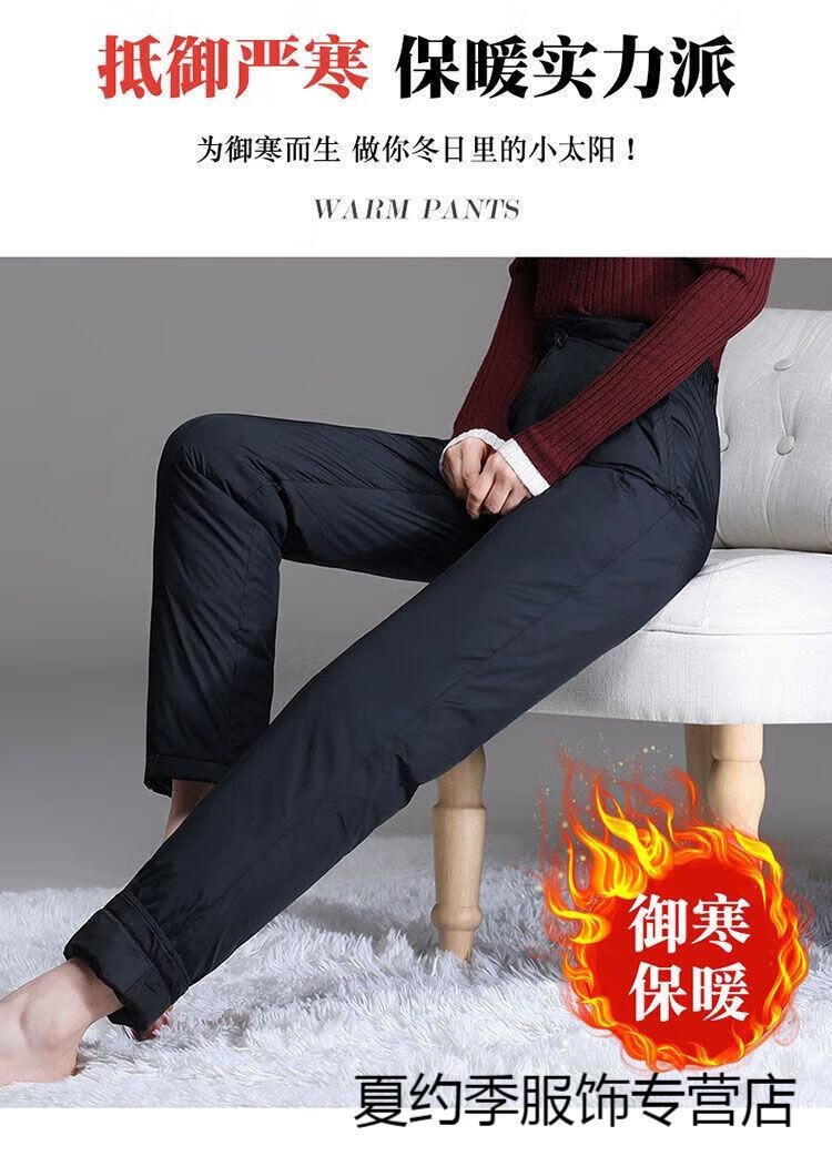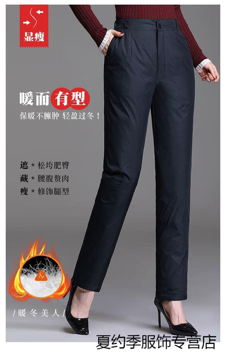 Duck Down Pants Women's Outerwear High Waist Thickened Large Size Women's Cotton Pants Winter Warmth and Slimming Middle-aged and Elderly Outdoor Duck Down Pants Elegant Black High Quality Women's Model M Recommended Weight 90-105 Jin Jin is equal to 0.5 kg