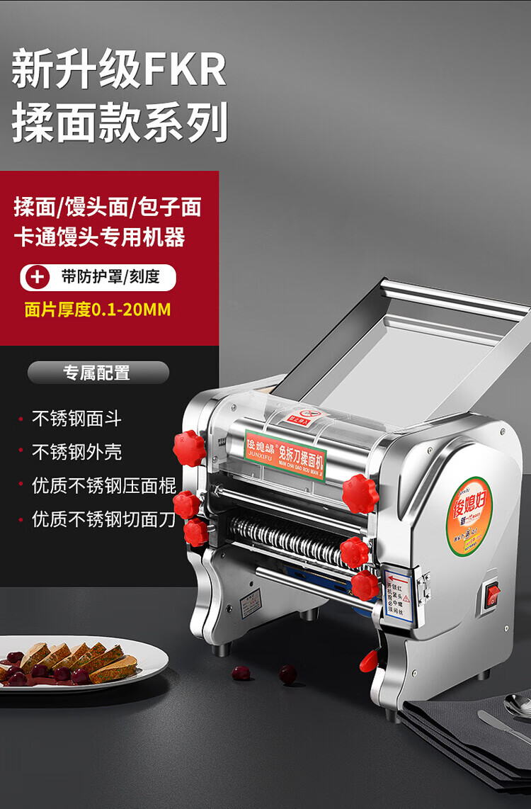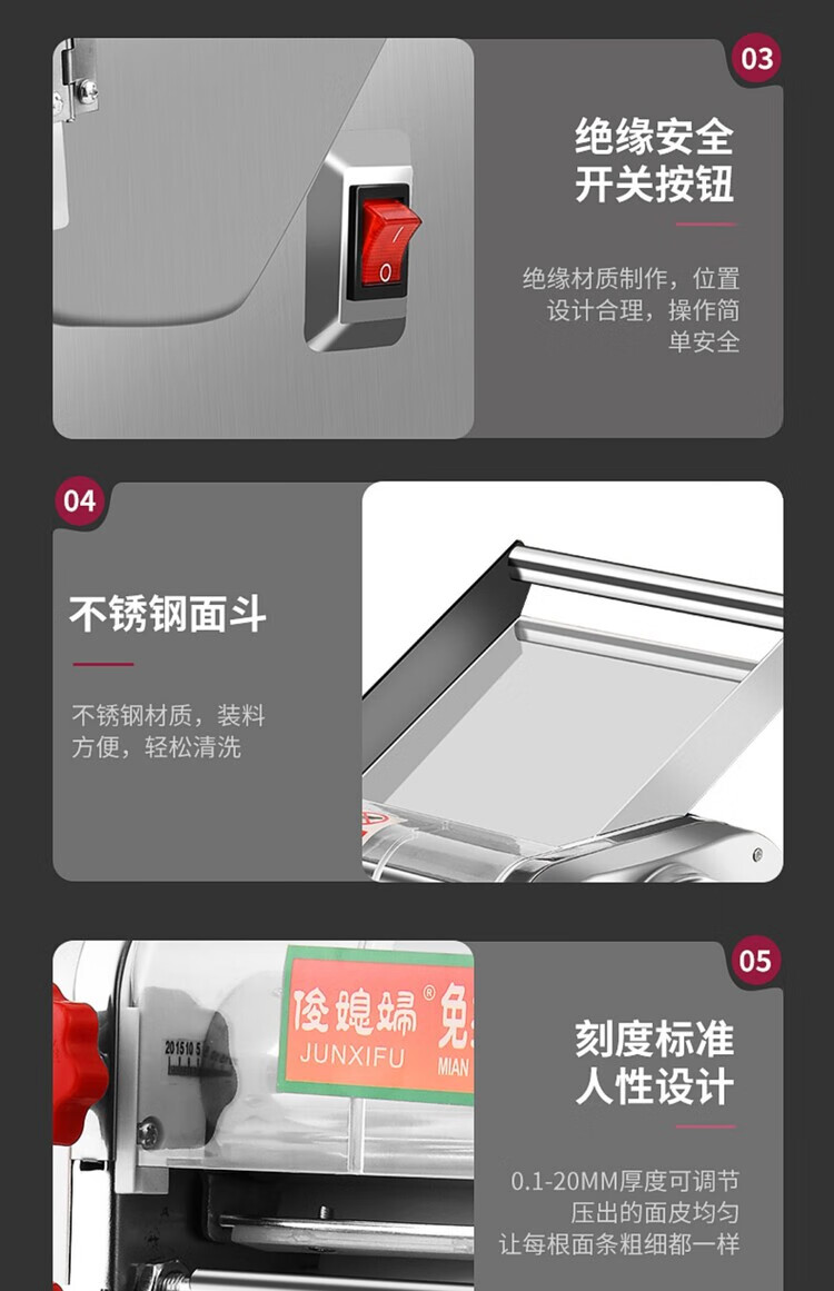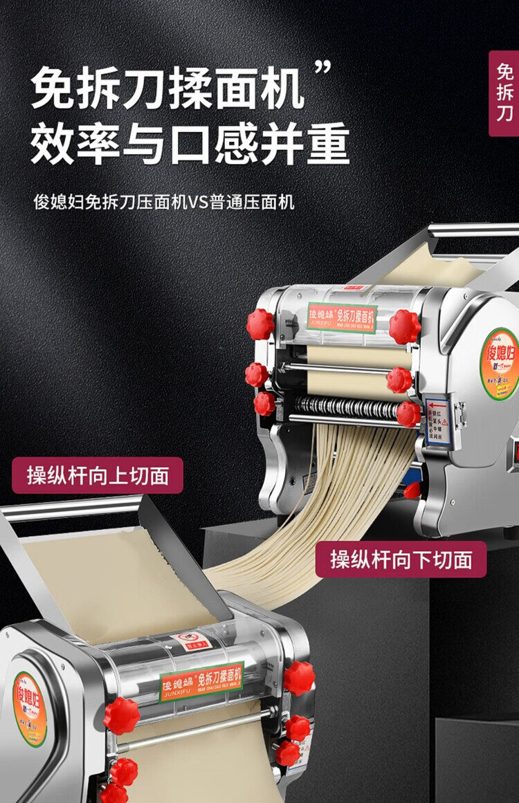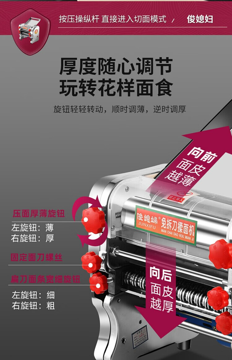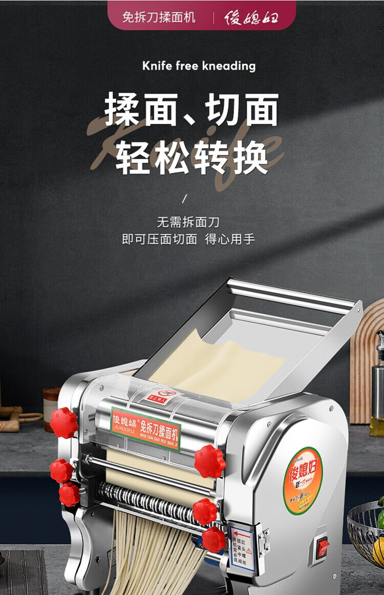 Jun's Wife's Knife-Free Electric Noodle Machine Noodle Machine Commercial Household Small Fully Automatic Stainless Steel Noodle Rolling Machine 180 Knife-Free Model (One-click Switching of Dough and Noodles)