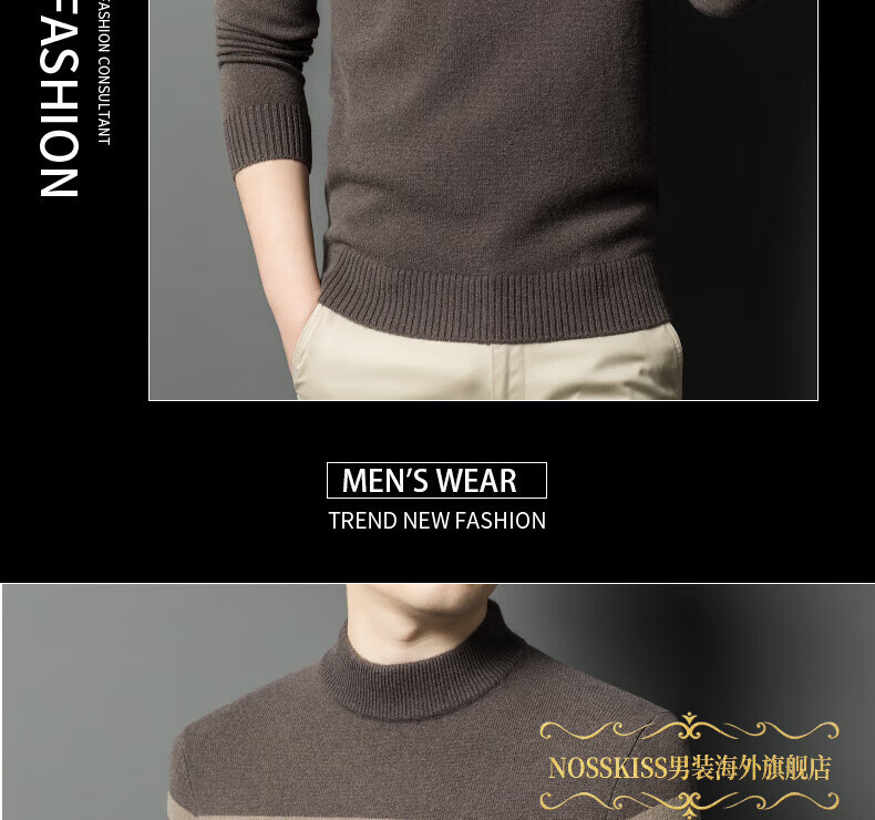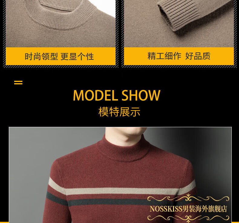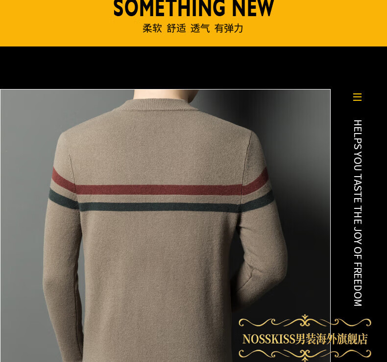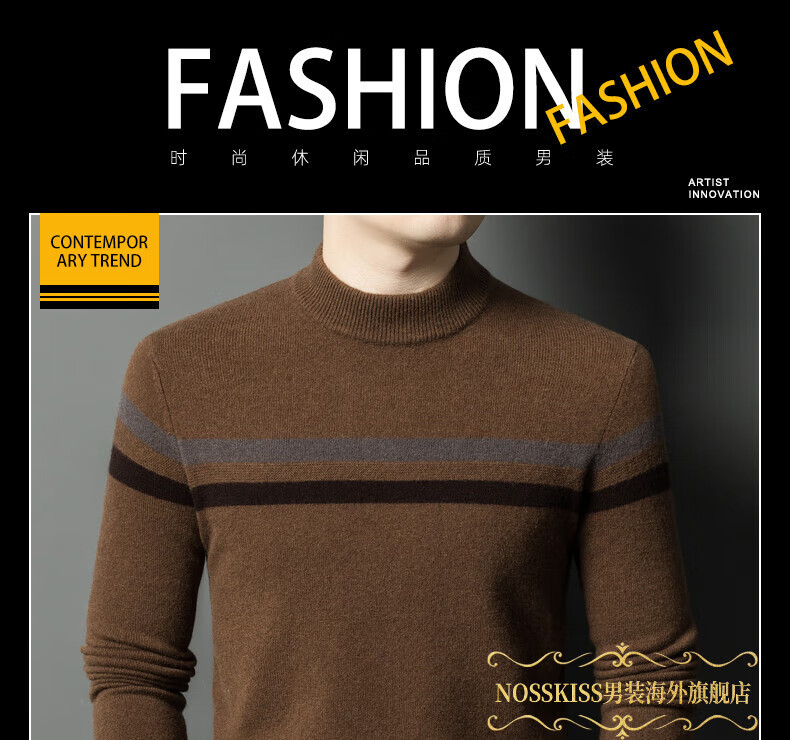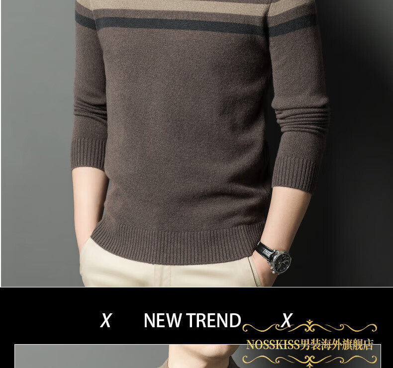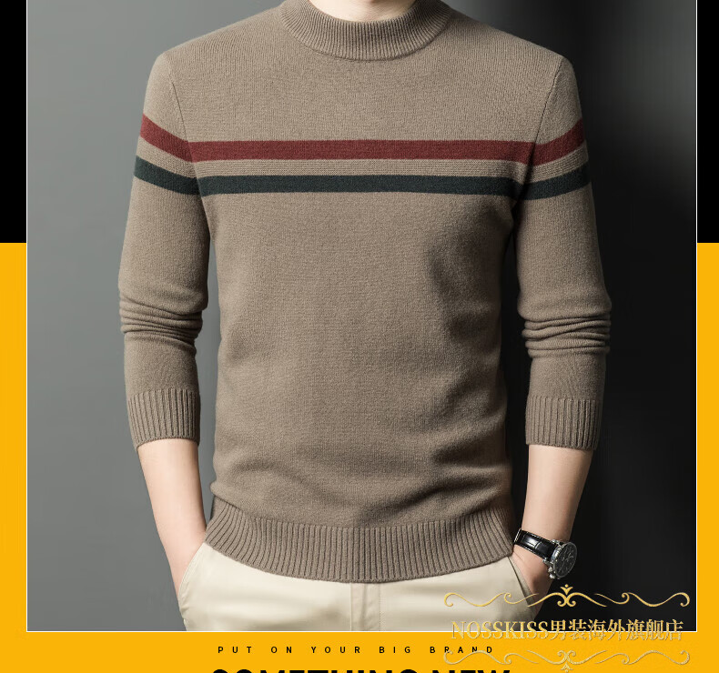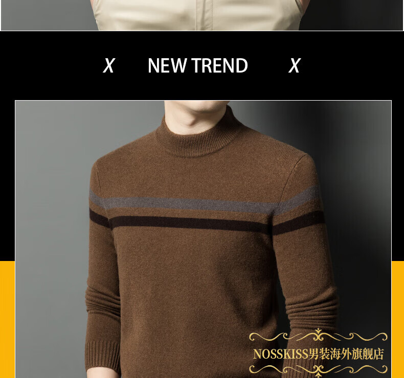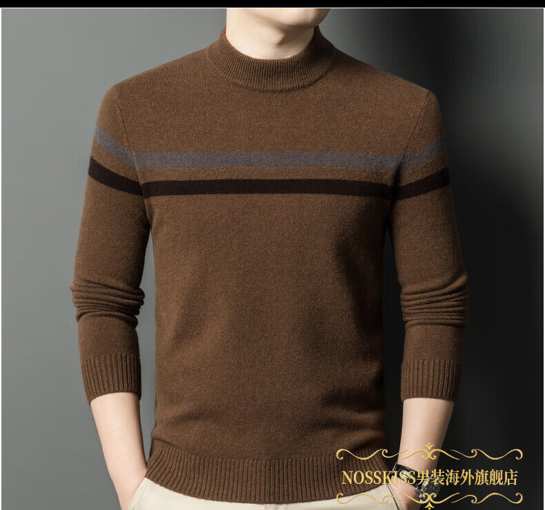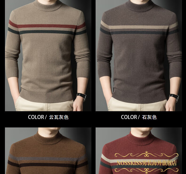 NOSSKISS luxury high-end brand men's pure wool sweater men's 2025 new half turtleneck trendy casual striped sweater Yunwa Gray M 170
