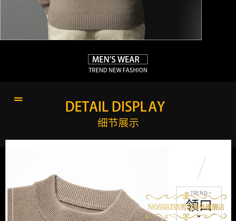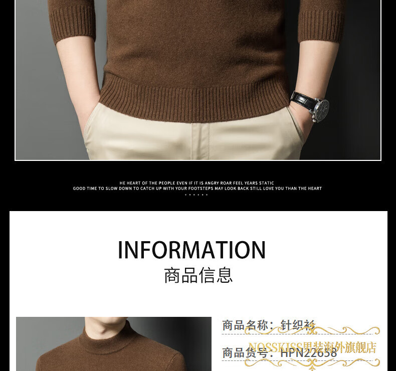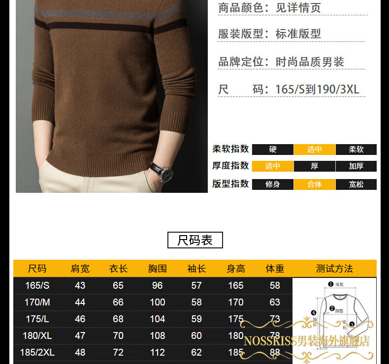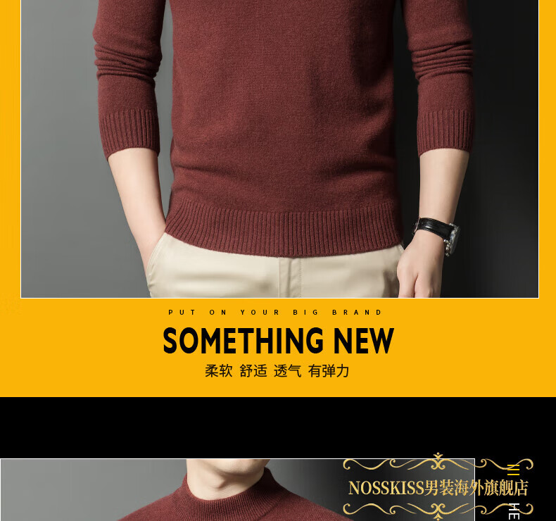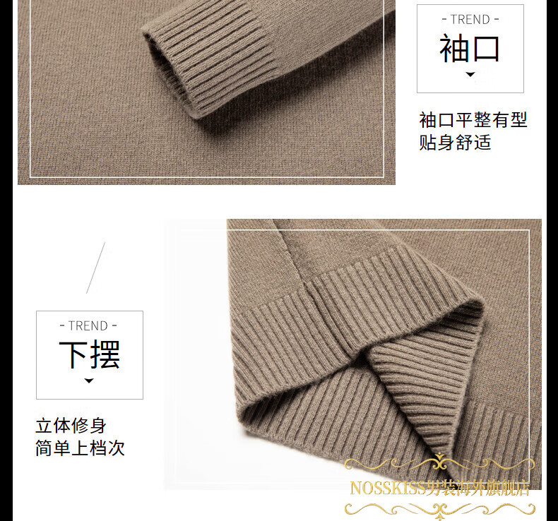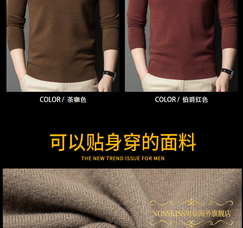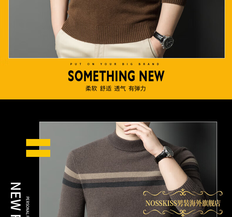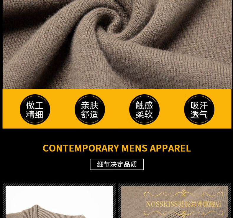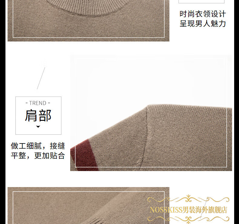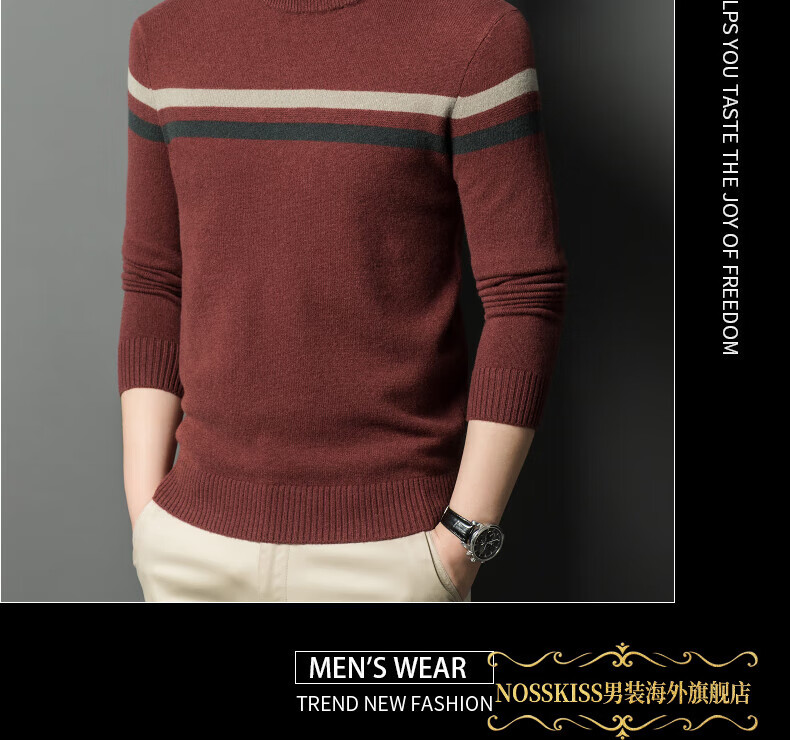 NOSSKISS luxury high-end brand men's pure wool sweater men's 2025 new half turtleneck trendy casual striped sweater Yunwa Gray M 170