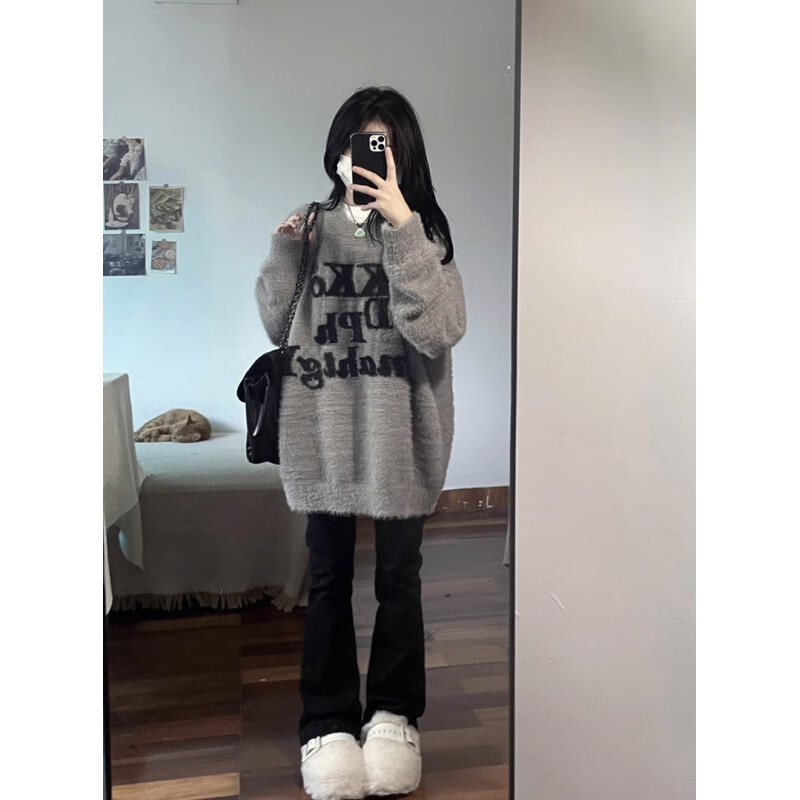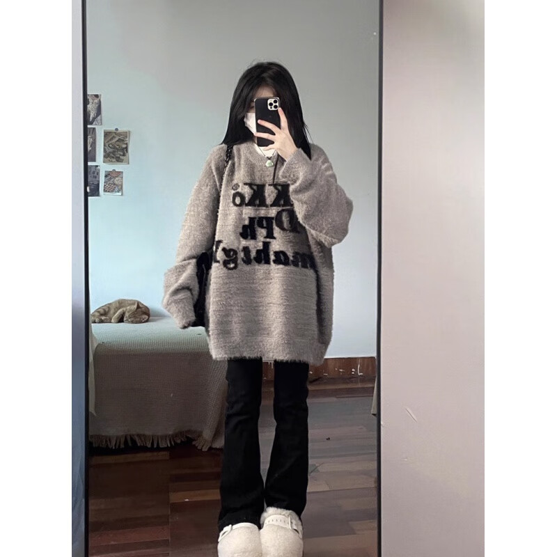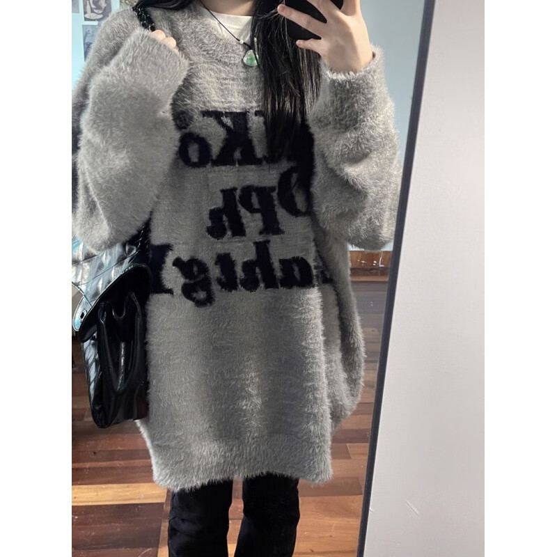 DXOT2025 new sweater for women for small people in autumn and winter, thickened, loose, lazy, soft, glutinous milk, fufu sweater trendy gray version S recommended 80-95Jin Jin equals 0.5 kg