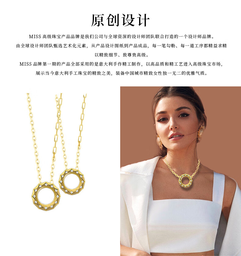 MISS high-end jewelry 18K gold diamond ring pendant original designer Italian craftsmanship simple and versatile 18K gold diamond ring pendant