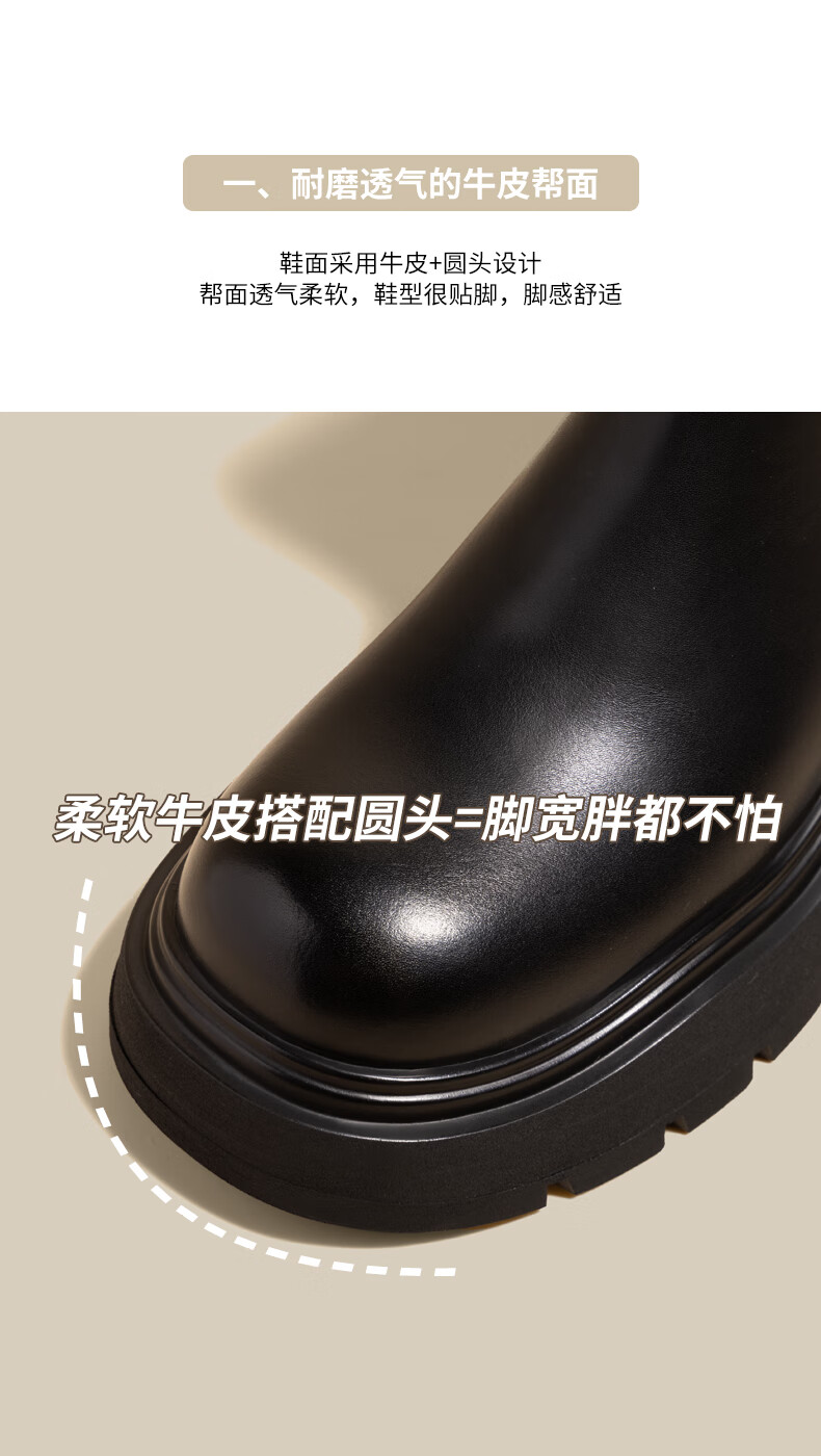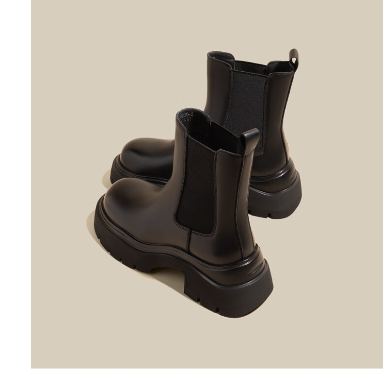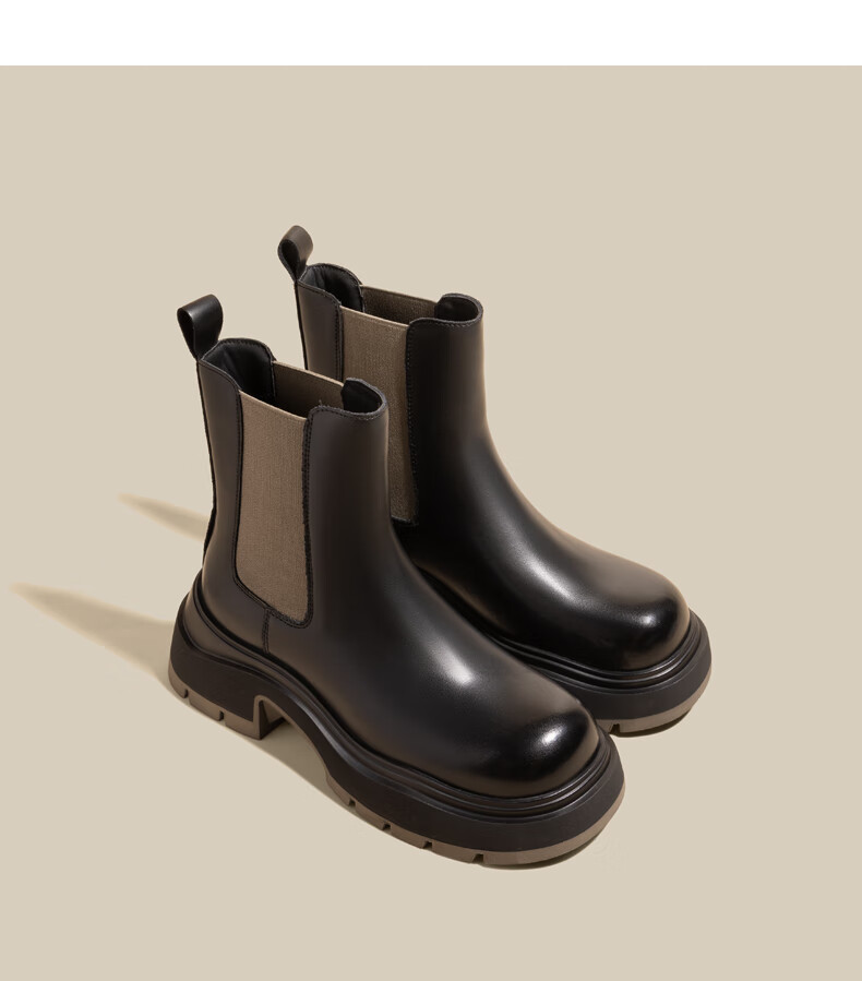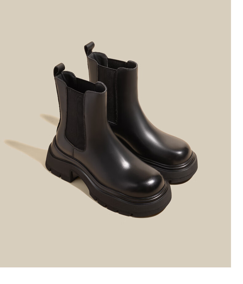 Cami height 9cm, inner height increase, Chelsea genuine leather Martin boots for small women, 2025 autumn and winter new thick-soled chimney short boots, black single lining - 9 cm inner height increase 38