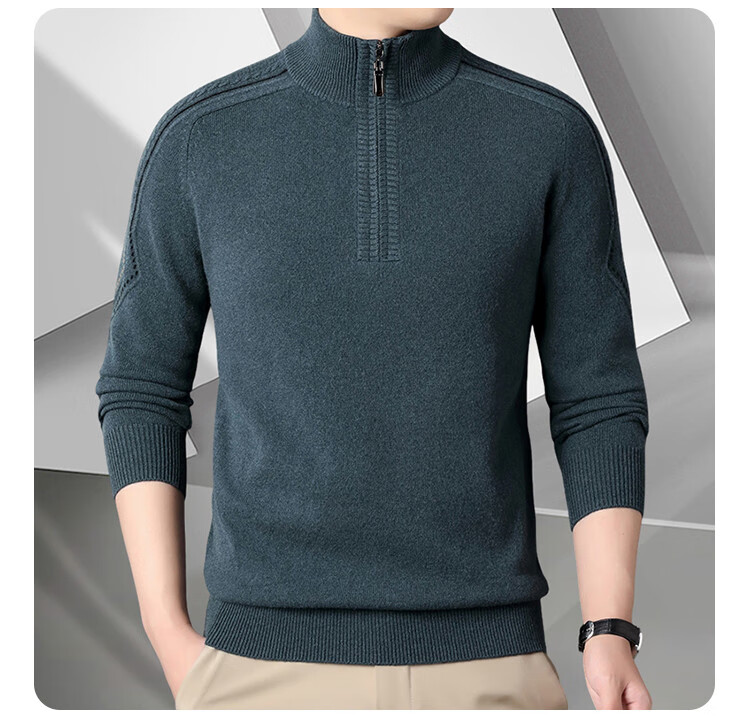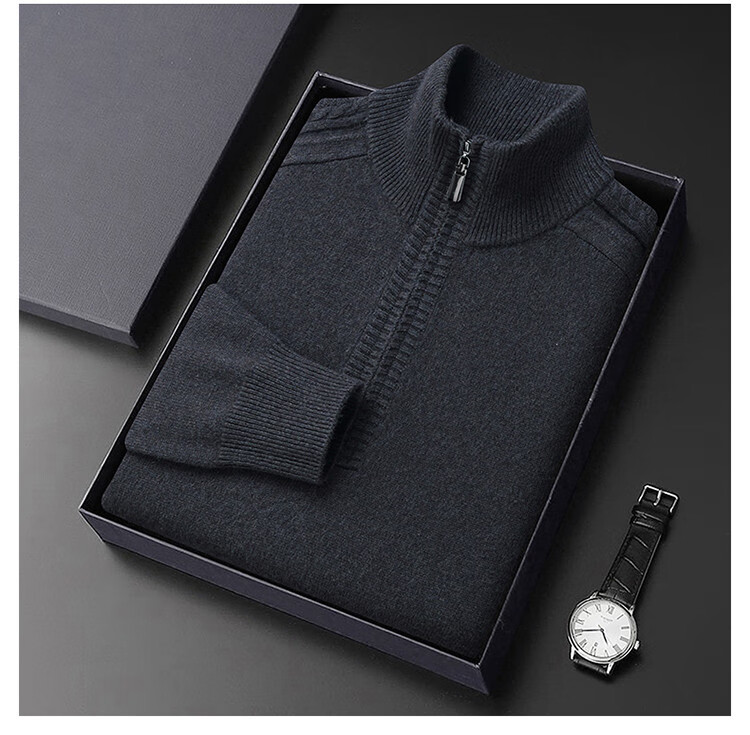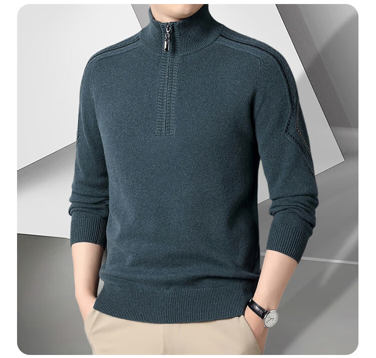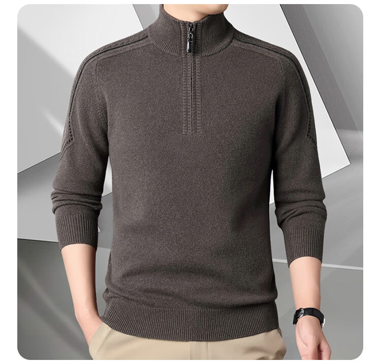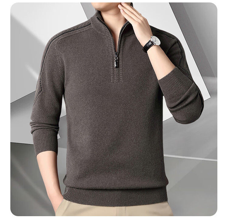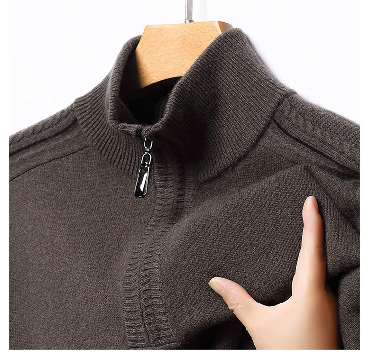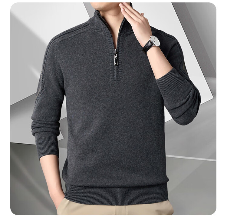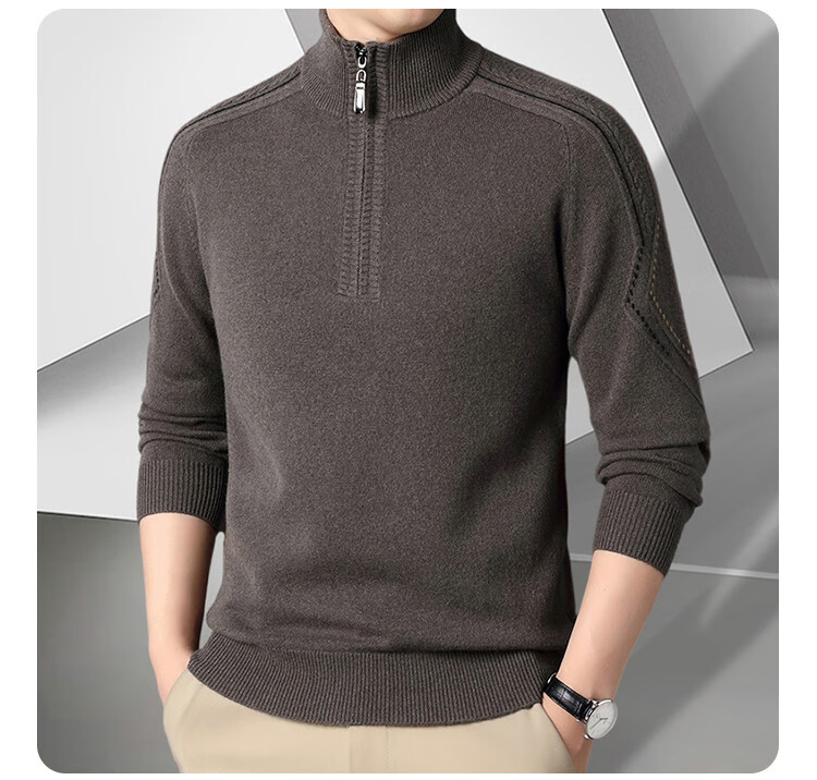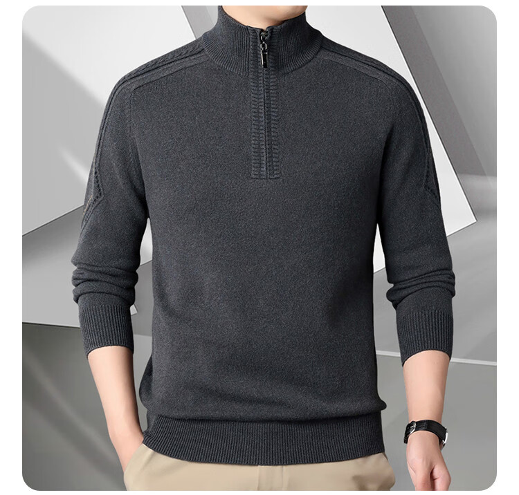 Hengyuanxiang Wool Sweater Men's Wool Half Turtle Collar Zipper Sweater Men's Autumn and Winter New Thick Knitted Bottoming Shirt Men's Pure Gray-89 Style 175/XL